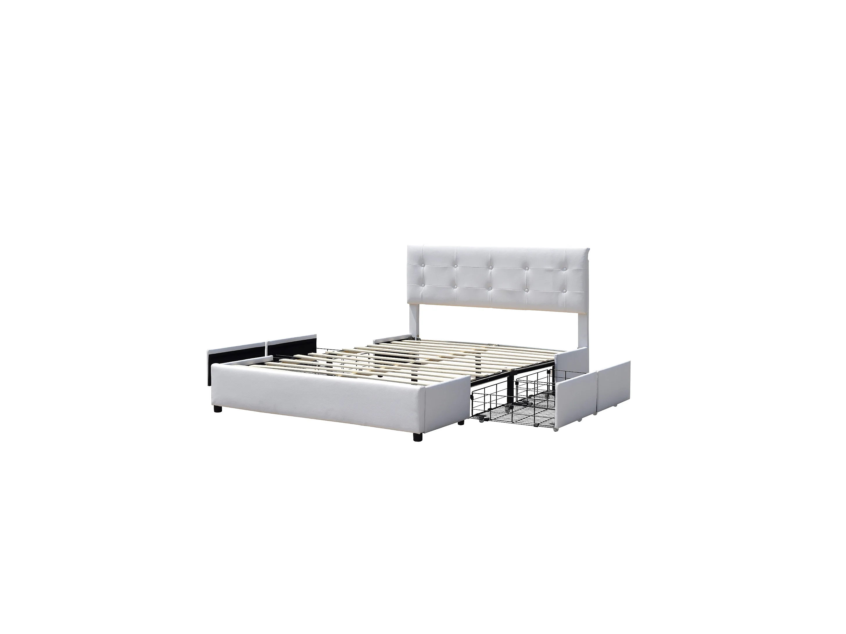 Chloe - Solide et Confortable Lit 120x190 avec Sommier avec 4 tiroirs + Tete de lit Couleur Blanc + Pieds en 4 cm - 13 L