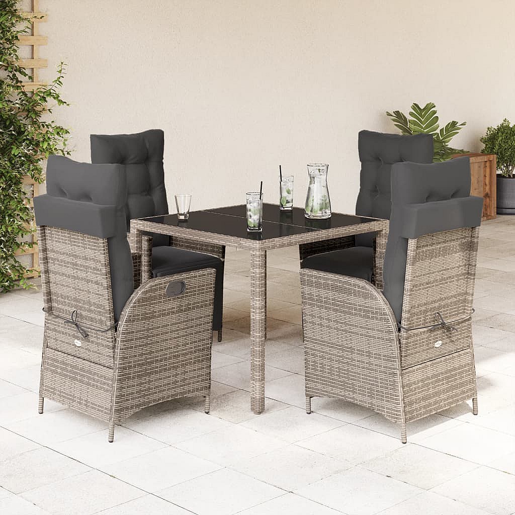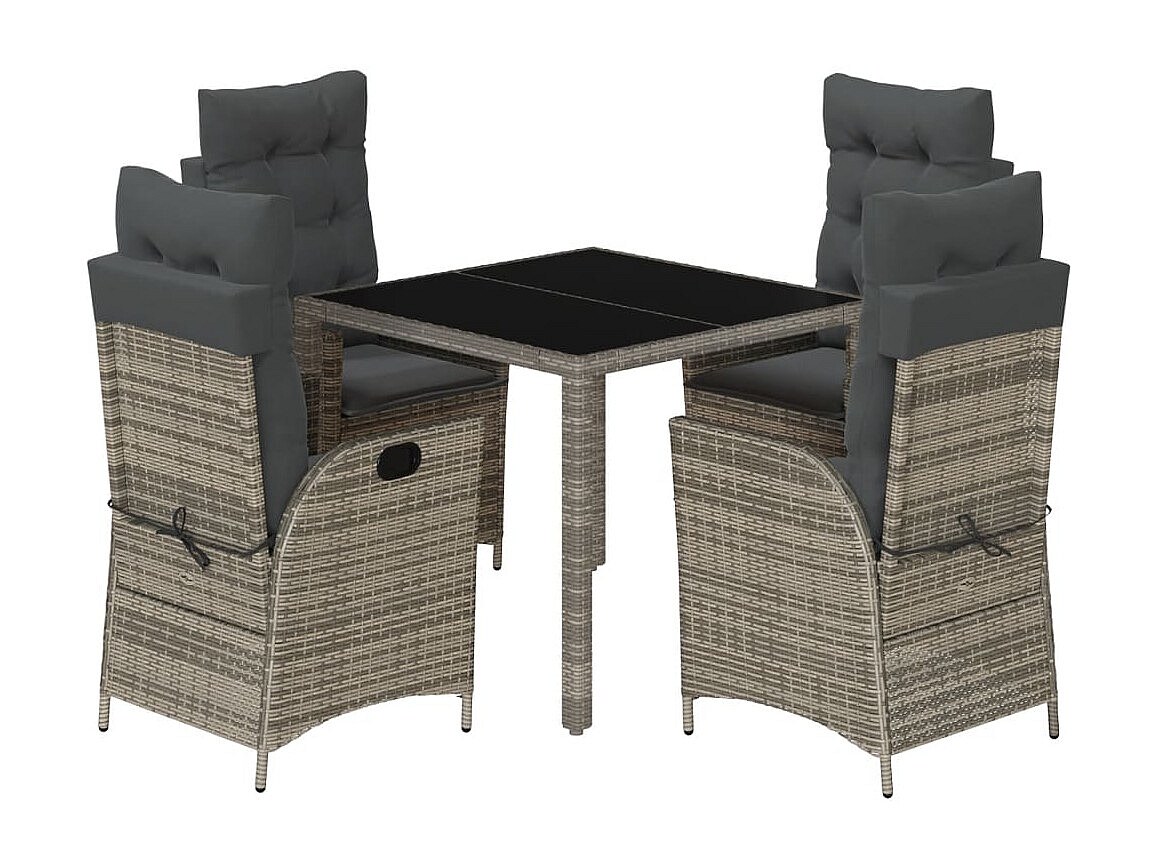 Chris David Ensemble à manger de jardin 5 pcs coussins gris résine tressée