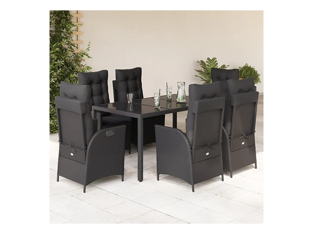 Chris David Ensemble à manger de jardin coussins 7pcs Noir Résine tressée