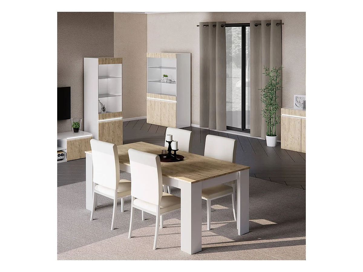 CHRIS OAK - Table Repas Laquée Blanc Brillant Aspect Bois