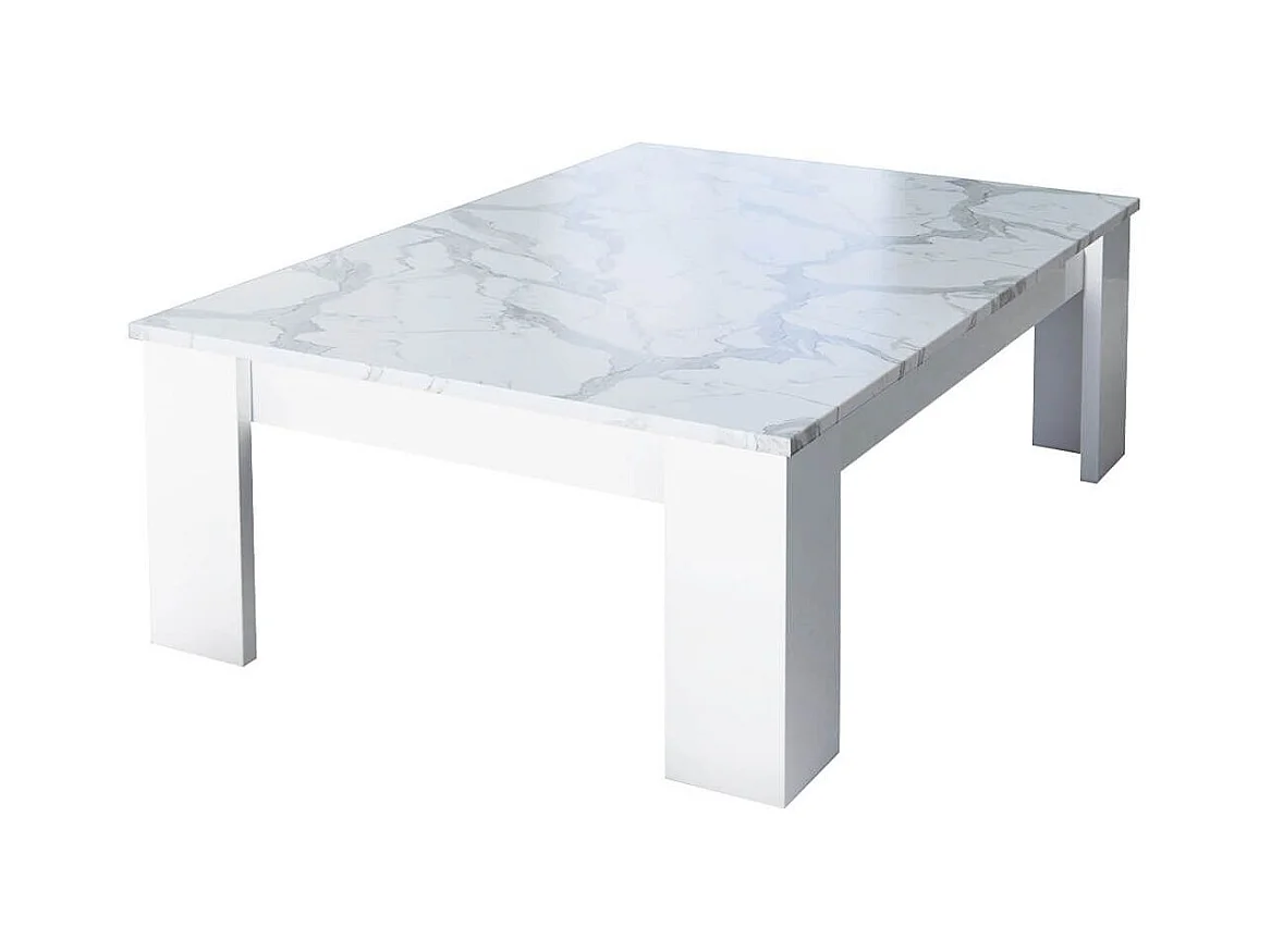 CHRIS WHITE - Salon Complet avec Vitrine 2P Laqué Blanc Brillant et Imitation Marbre