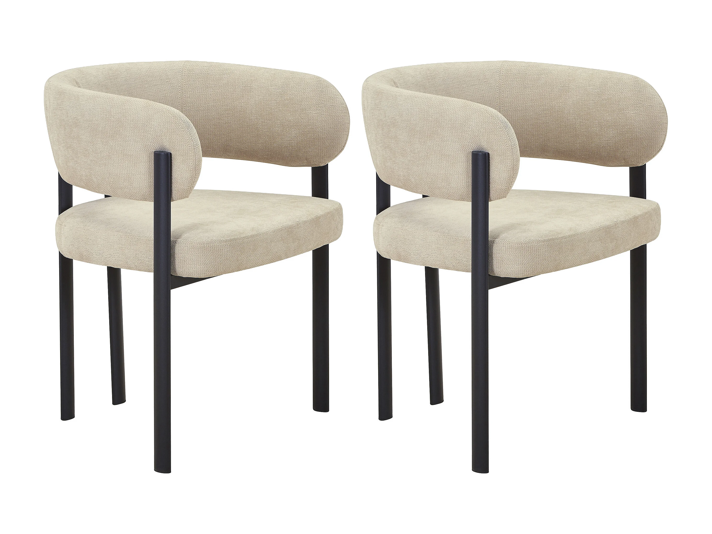 Lot de 2 chaises en tissu et métal noir - Beige - CIBARO