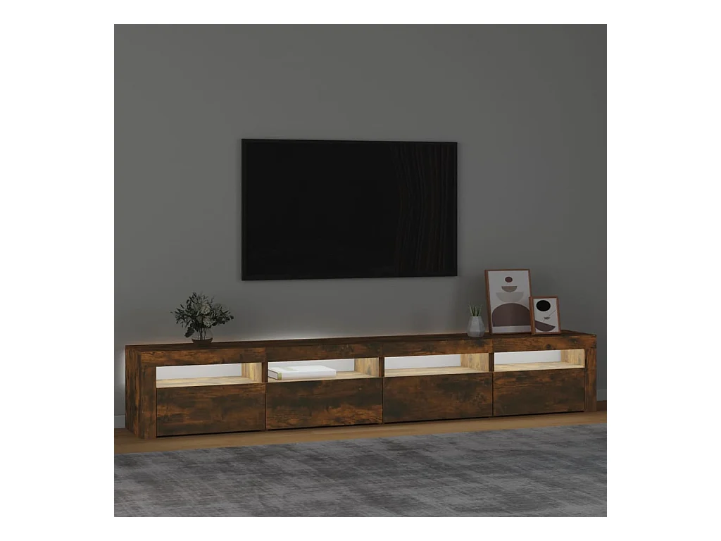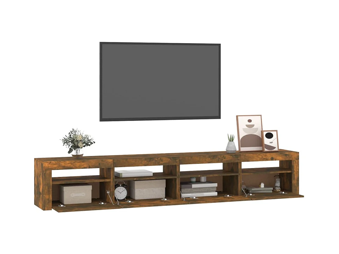 Cincinnatus Meuble TV avec lumières LED Chêne fumé 240x35x40 cm