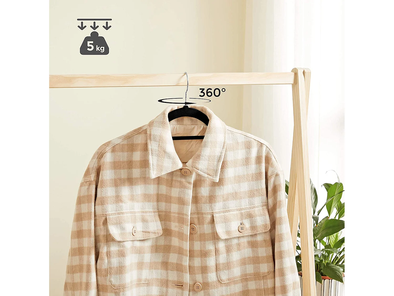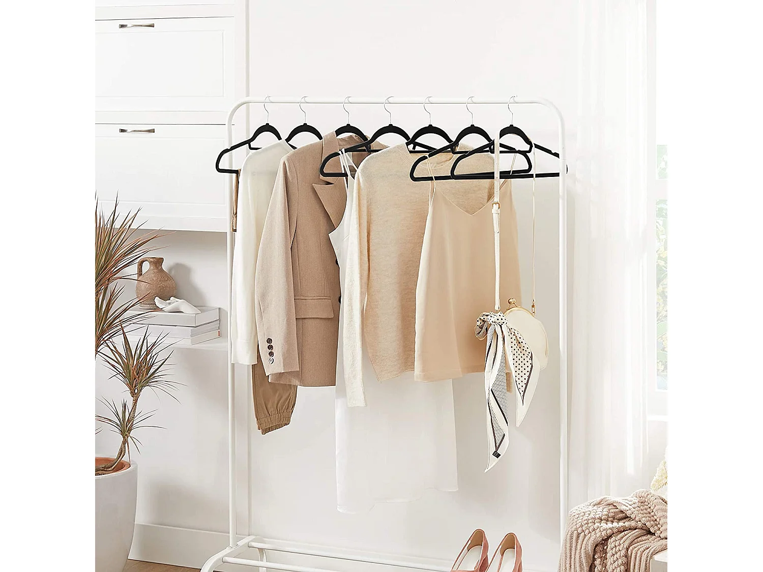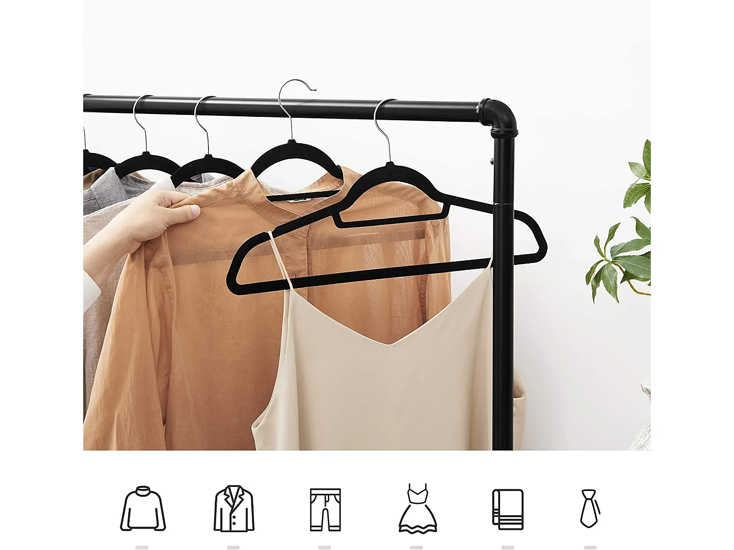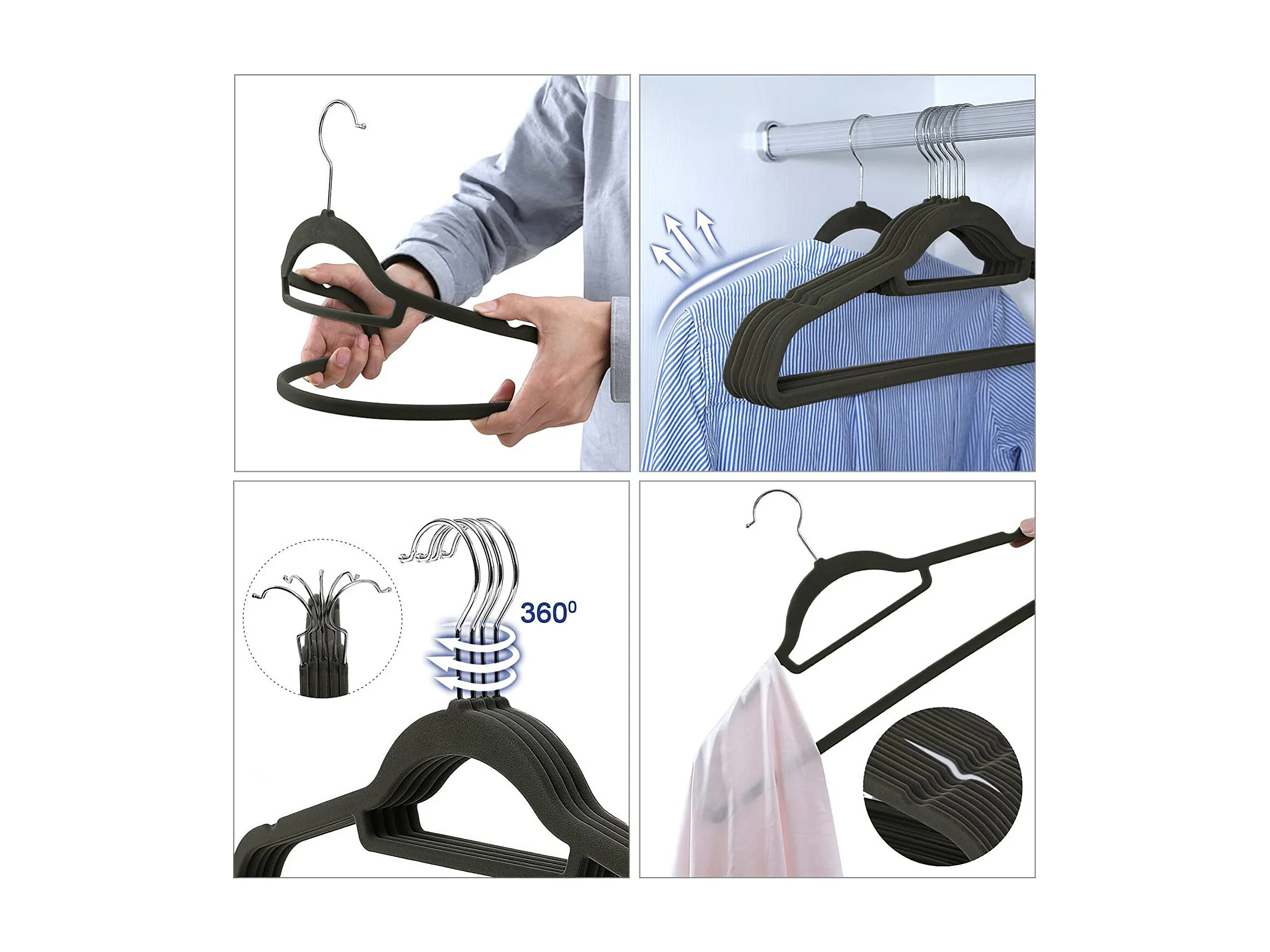 Cintres en velours noir Valora 50 pièces avec crochets rotatifs