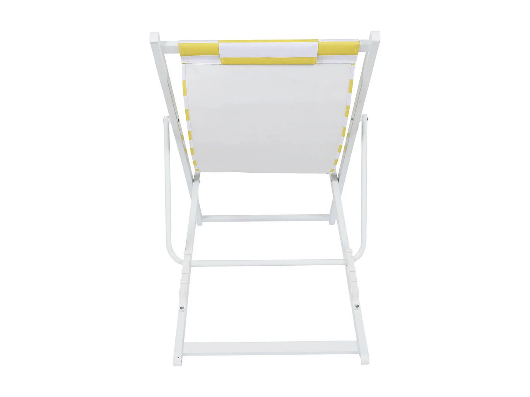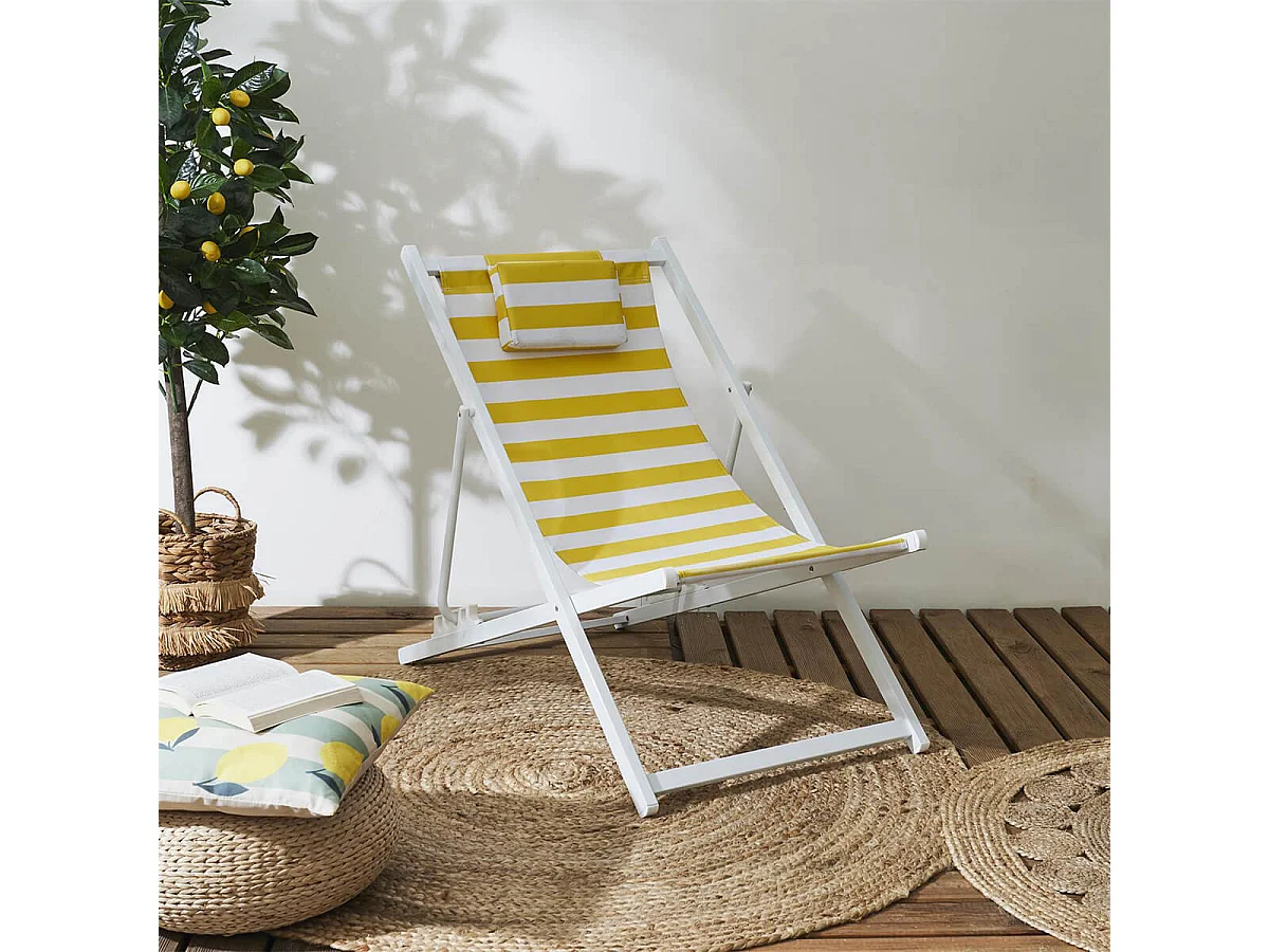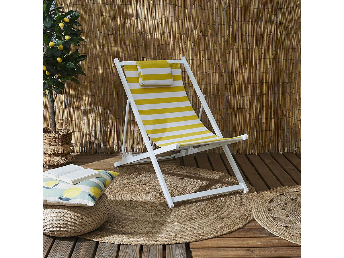 CISCO - Lot de 4 Chiliennes en Bois Teinté Blanc Toile Rayures Jaunes et Blanches
