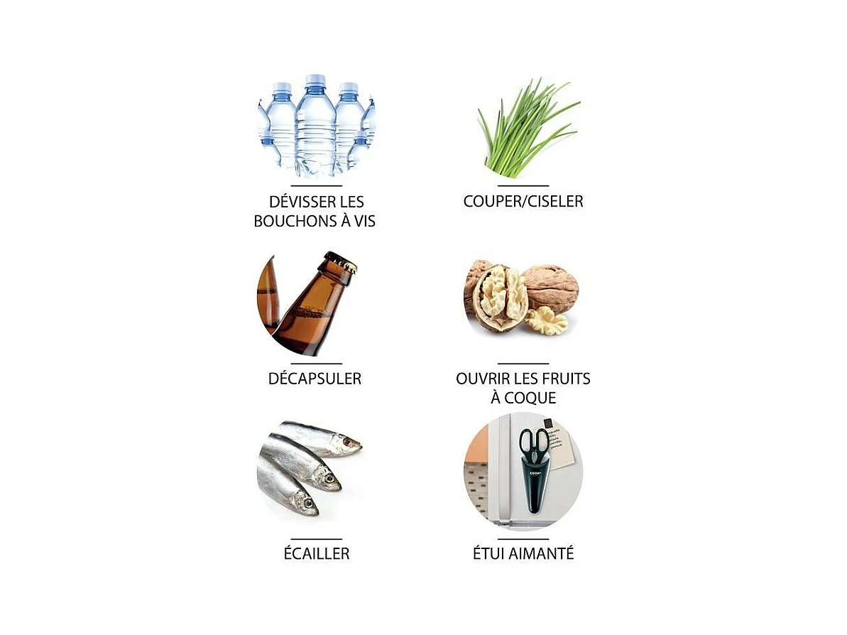 Ciseaux de Cuisine Aimanté "Multifoncton" 22cm Taupe