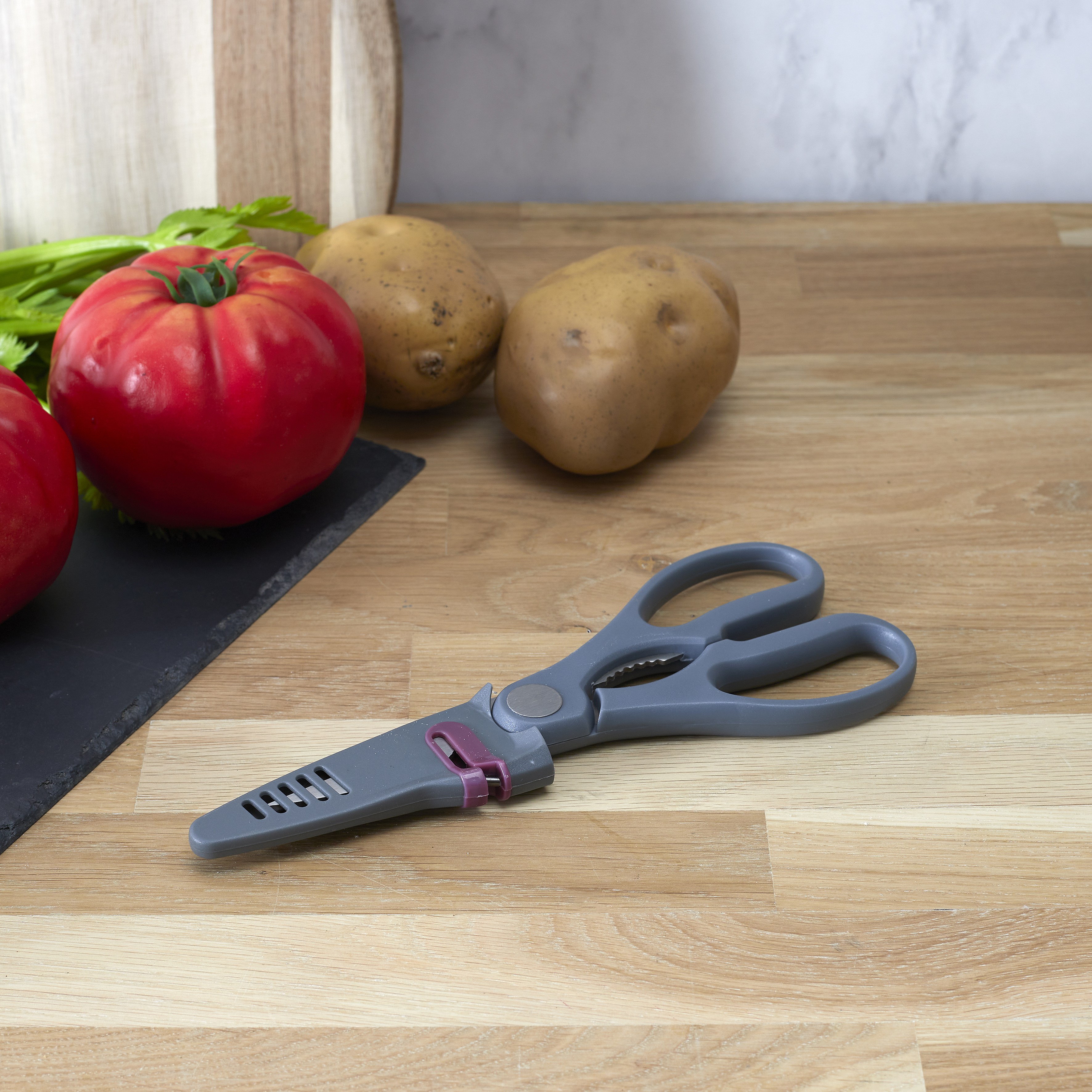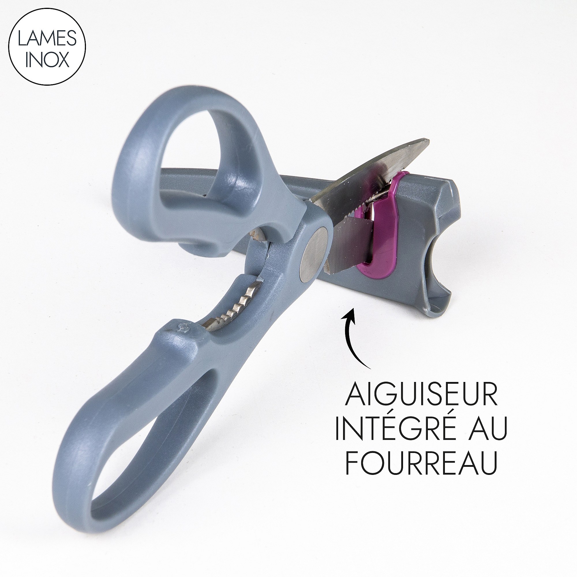 Ciseaux Avec Fourreau Aiguiseur Gris