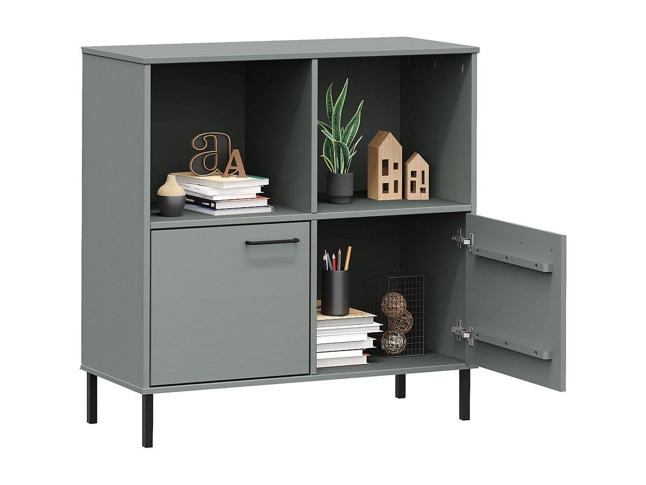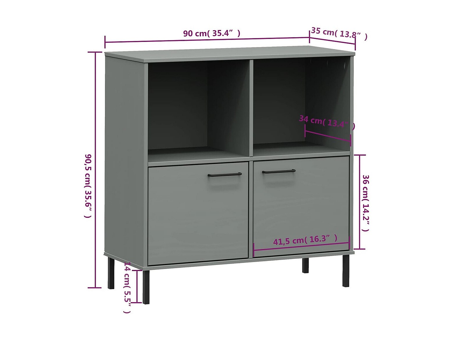 Claire-Madeleine-Claire Bibliothèque avec pieds en métal Gris 90x35x90,5 cm Bois OSLO