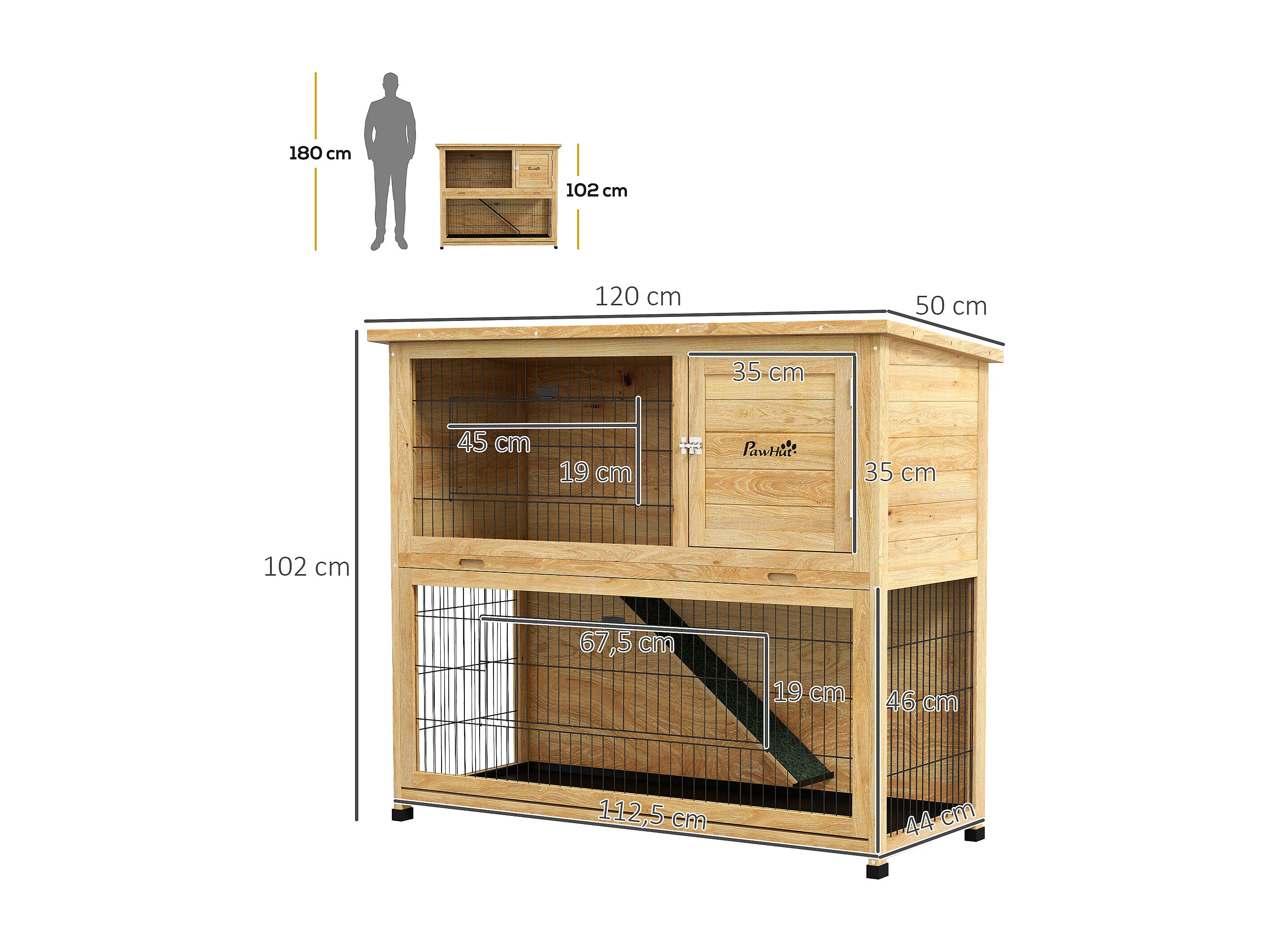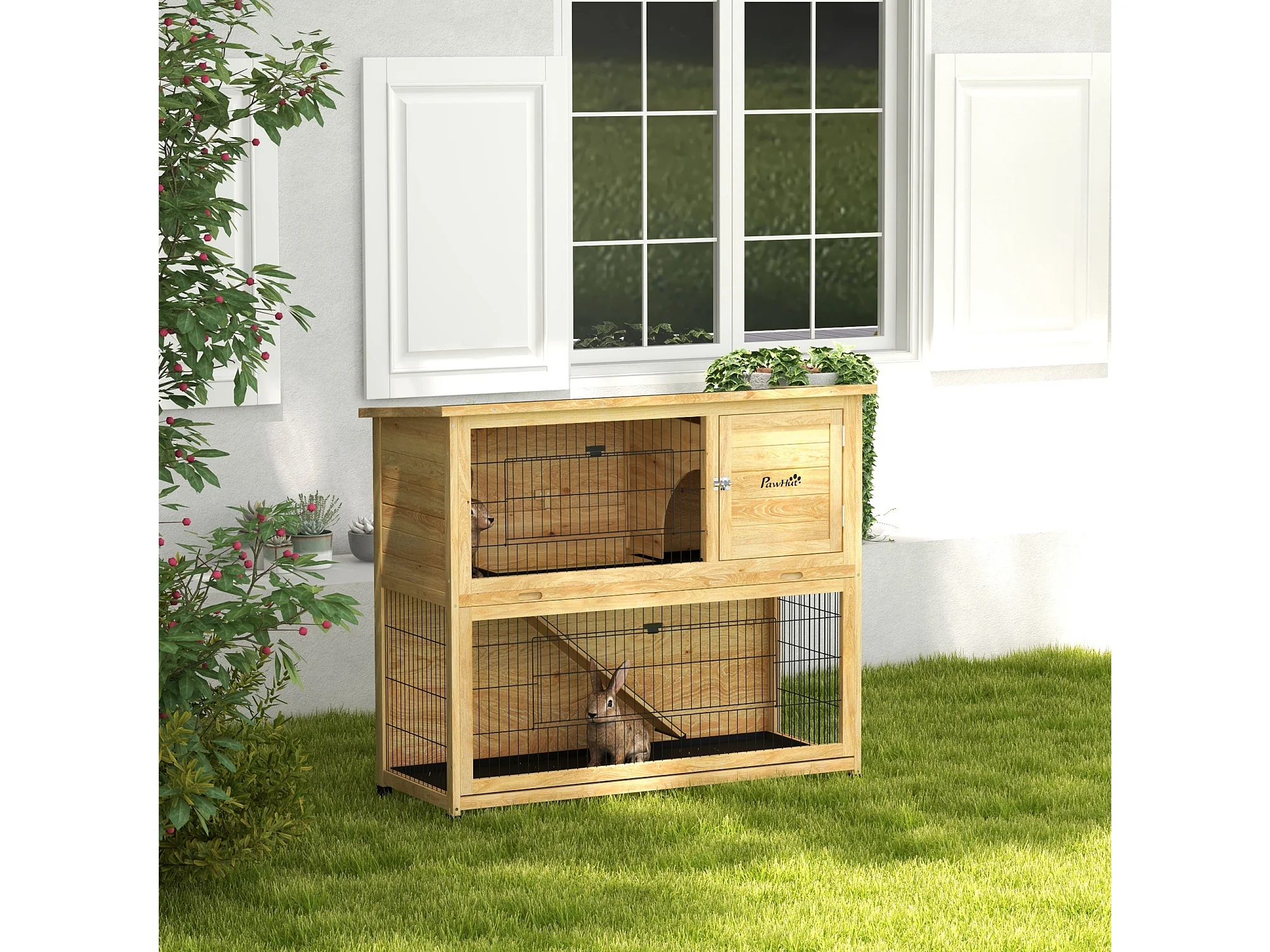 Clapier à lapin 2 étages 3 portes verrouillables bois pré-huilé