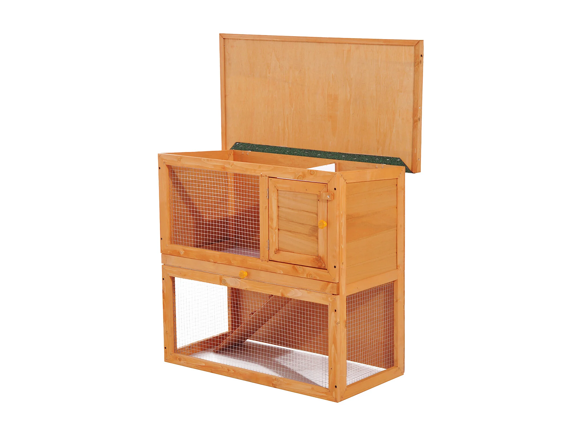 Clapier à lapin cage à lapin 2 étages plateau coulissant rampe et toit ouvrant 90L x 45l x 80H cm