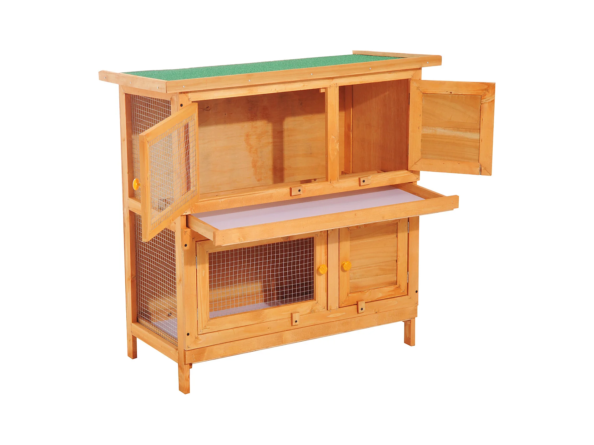 Cage a lapin poulailler clapier en bois de pin de grande taille avec 2 etages 120x48x100 cm