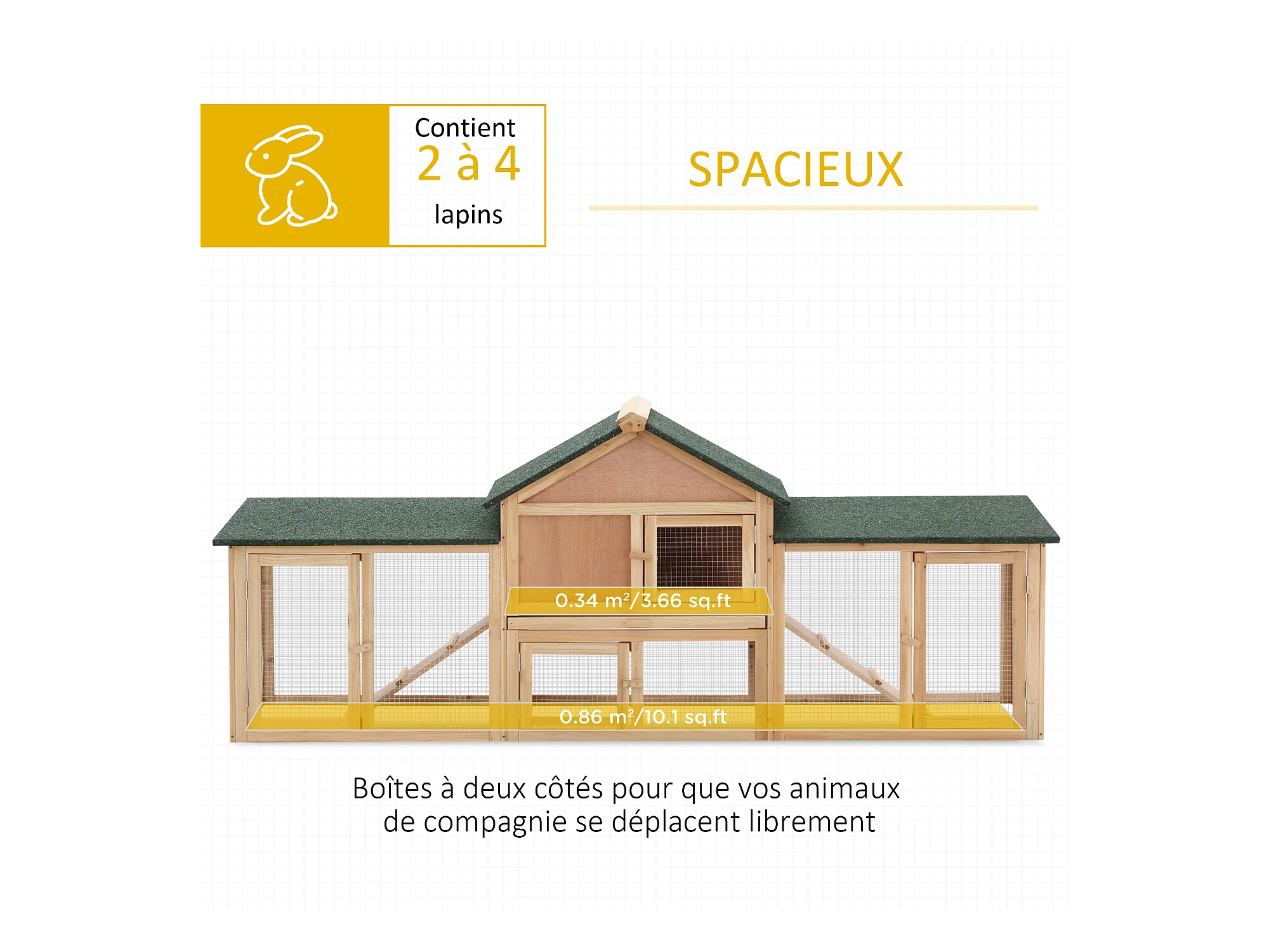Clapier cage à lapins rongeurs XXL 2 étages toit bitumé intégral tiroir déjection 2,10L x 0,46l x 0,85H m bois massif pin pré-huilé