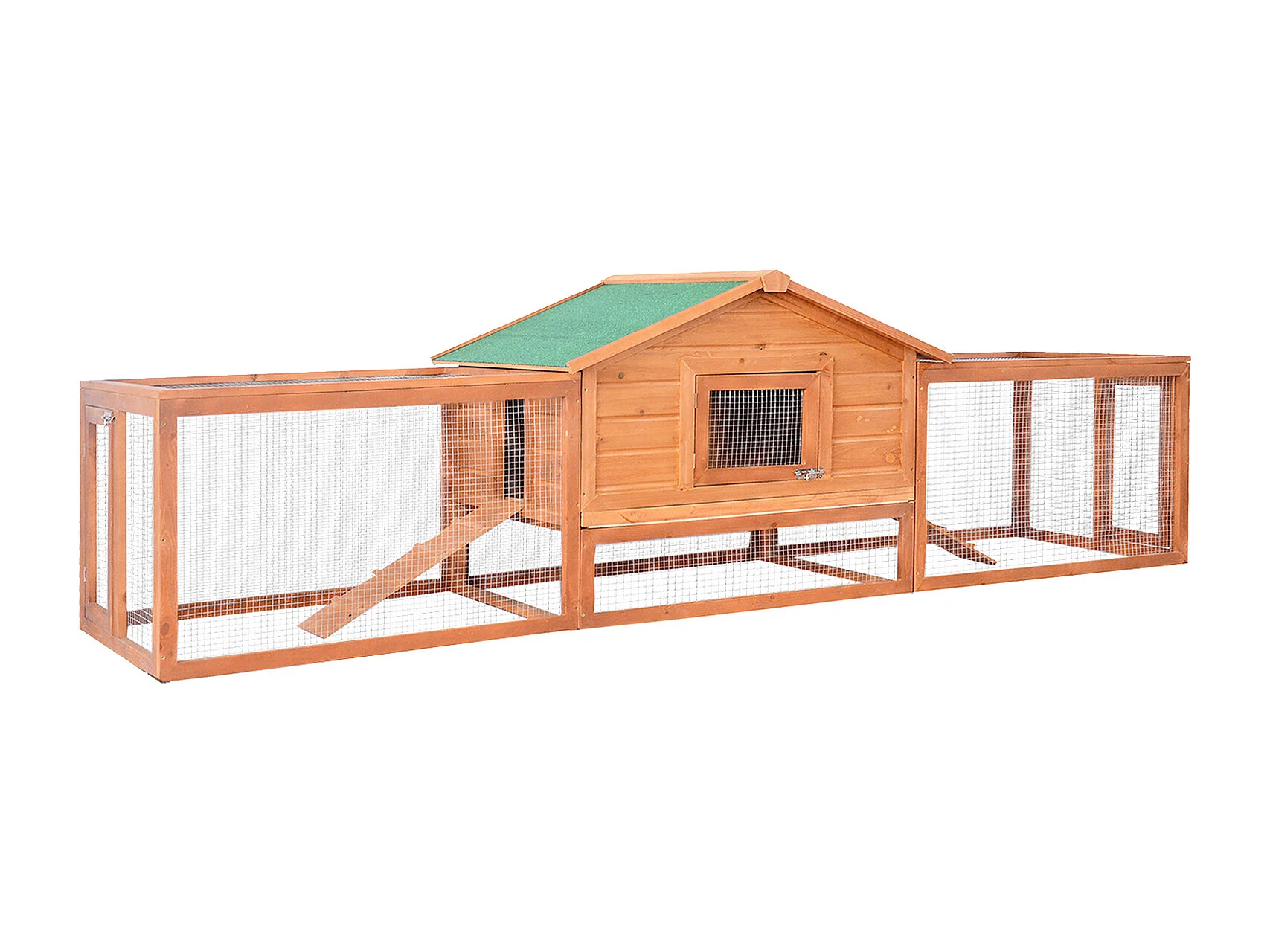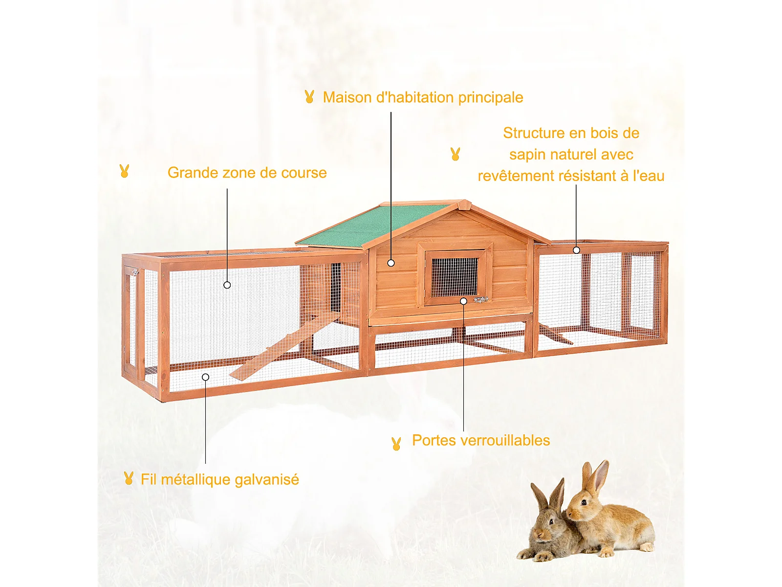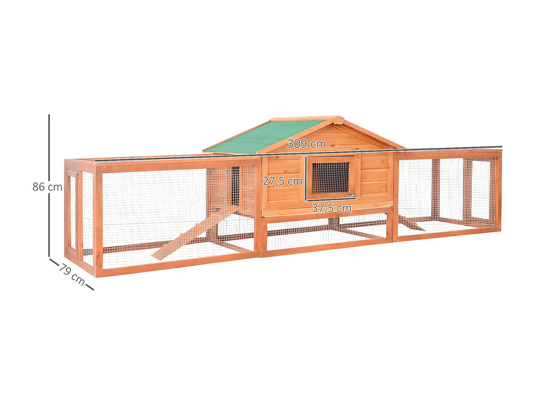 Clapier cage à lapins rongeurs XXL étage toit bitumé tiroir déjection 3,09L x 0,79l x 0,86H m bois massif pin pré-huilé