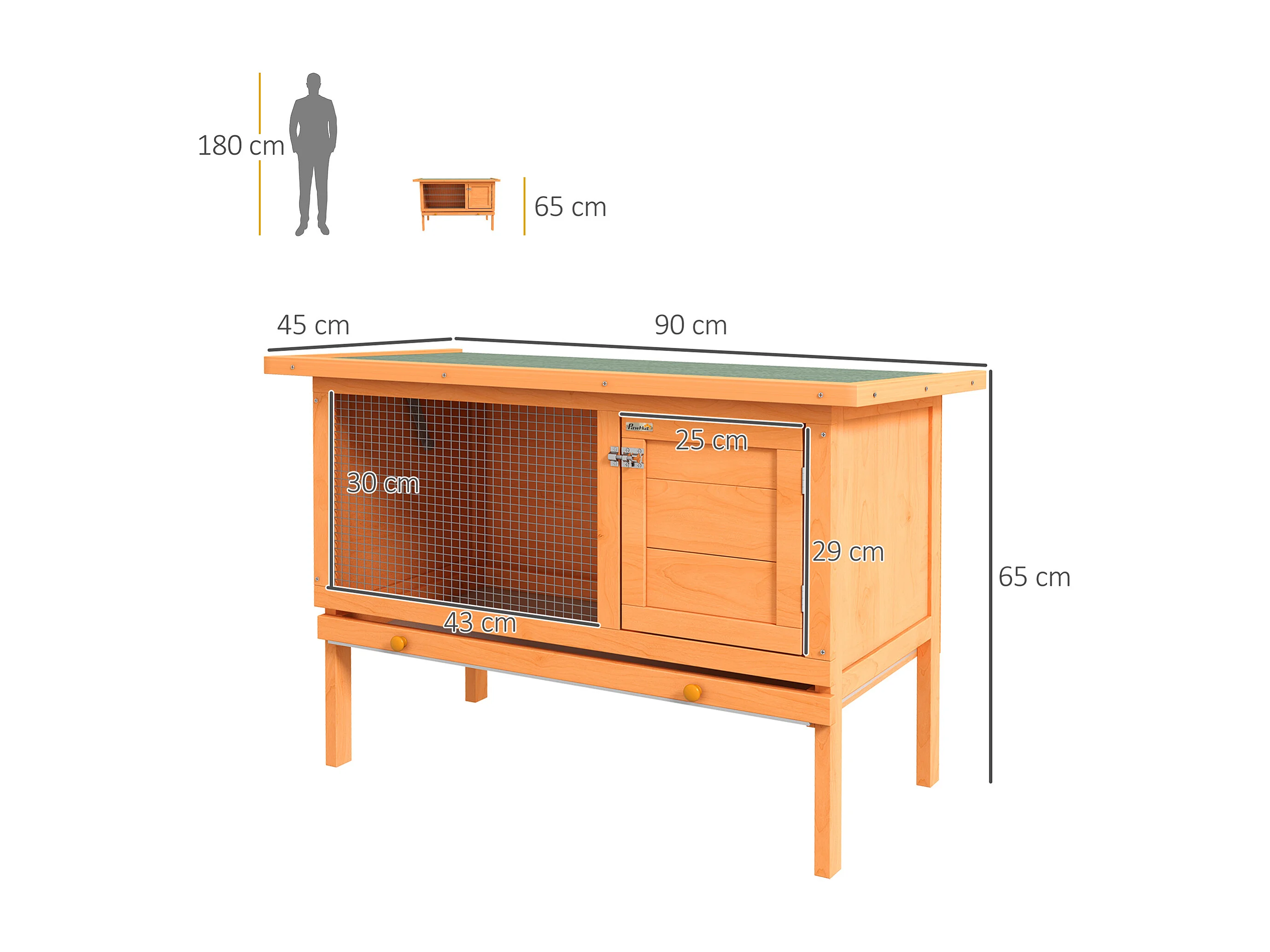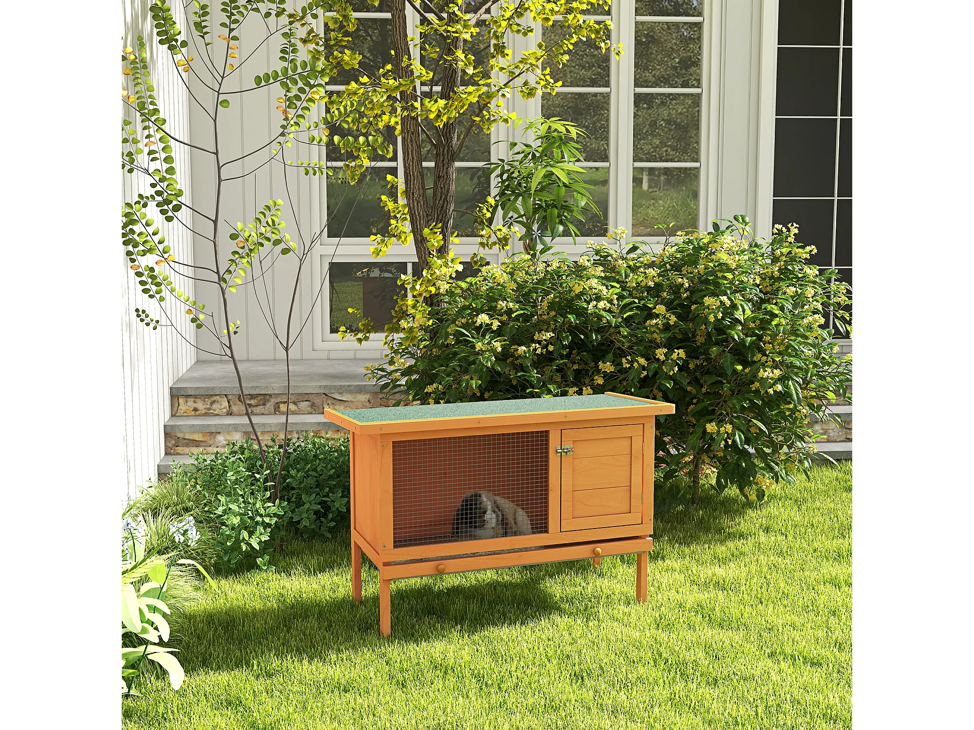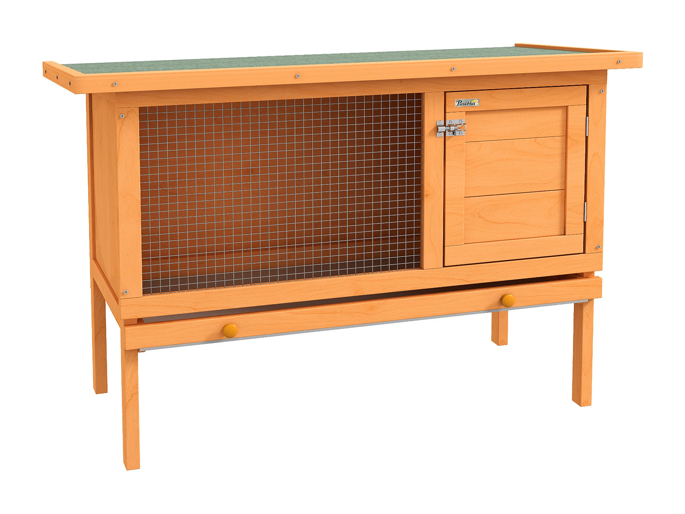 Clapier sur pieds cage à lapin plateau excrément coulissant porte verrouillable fenêtre grillagée toit lino vert bois de sapin lasuré