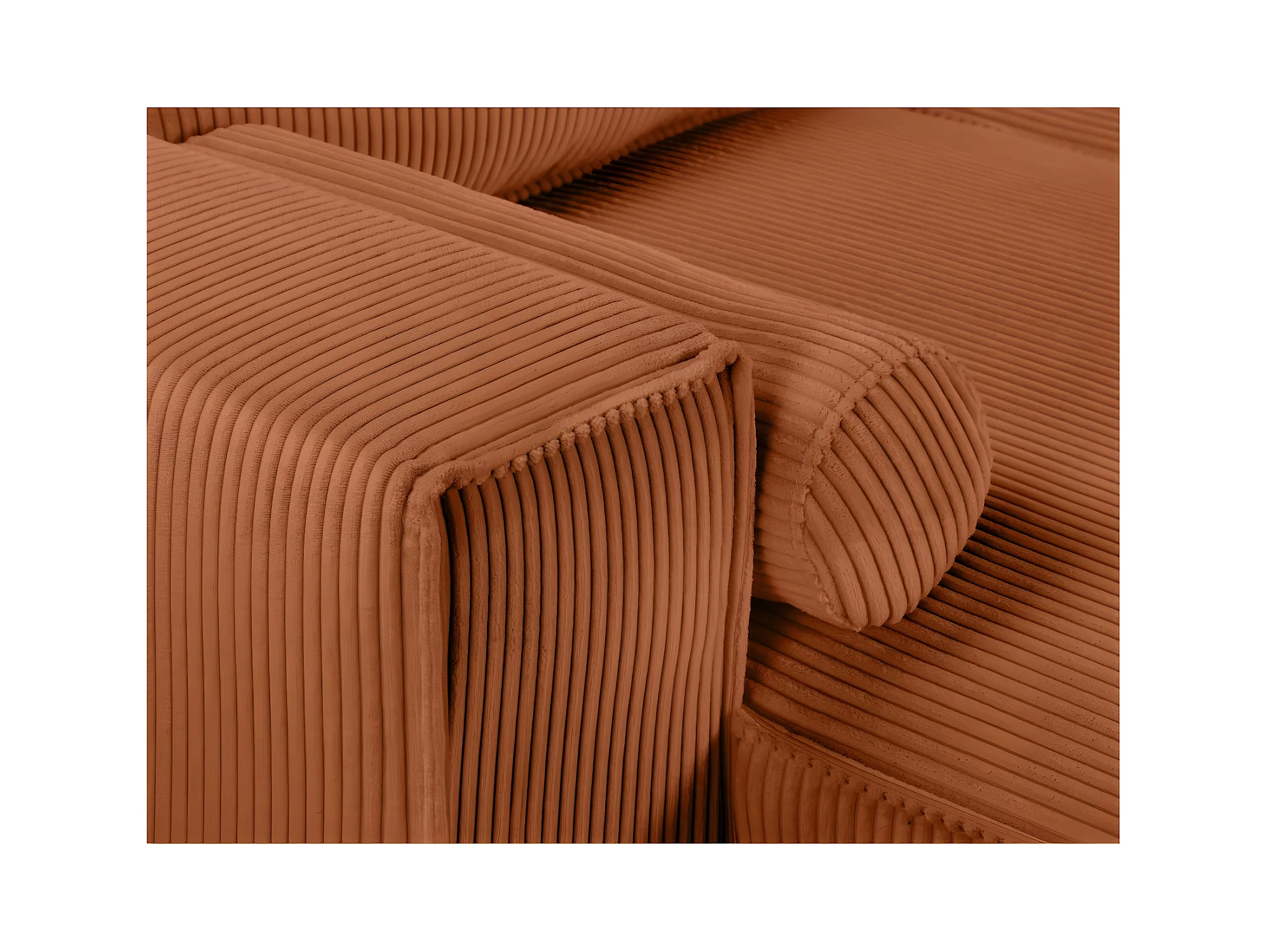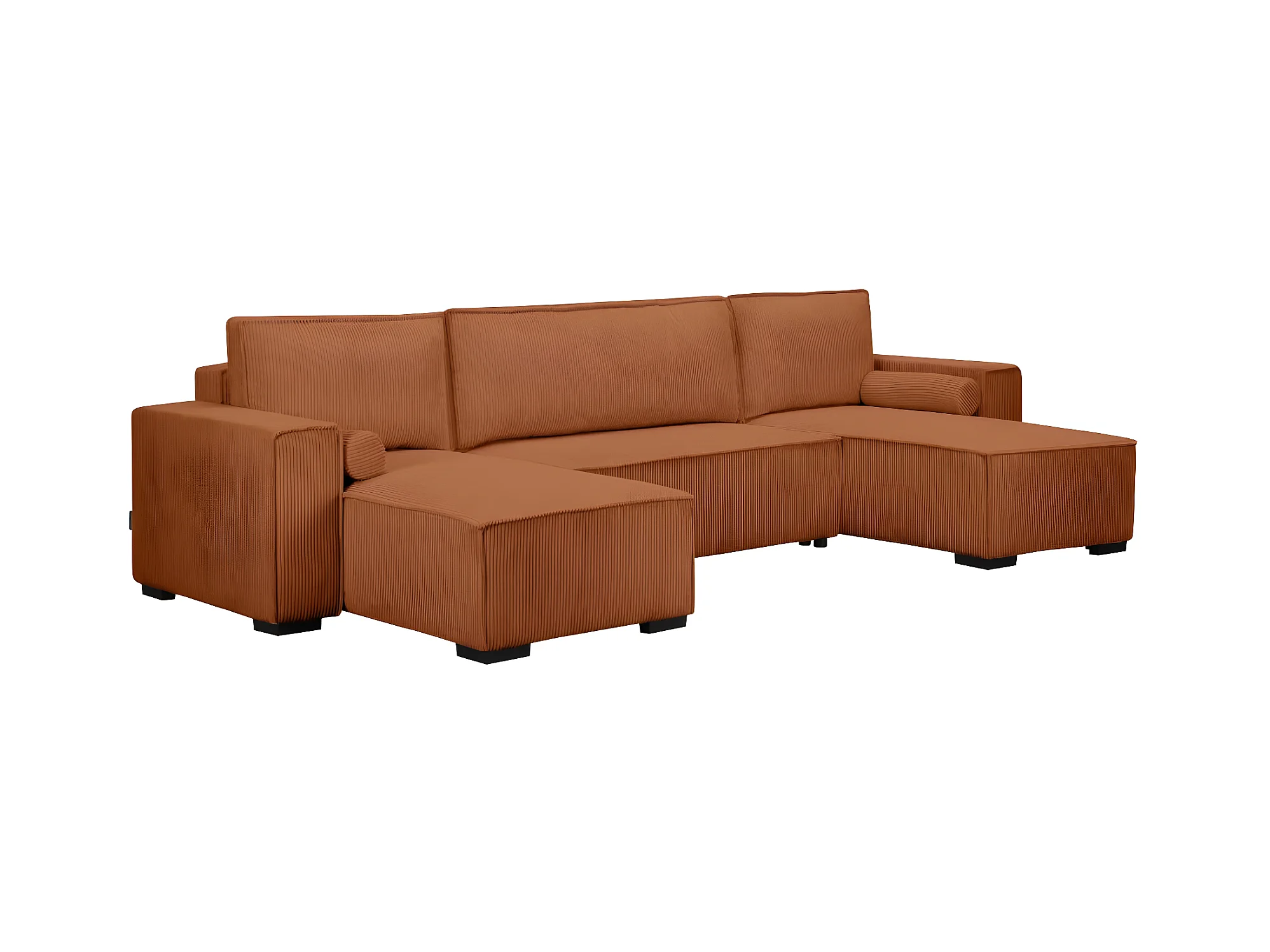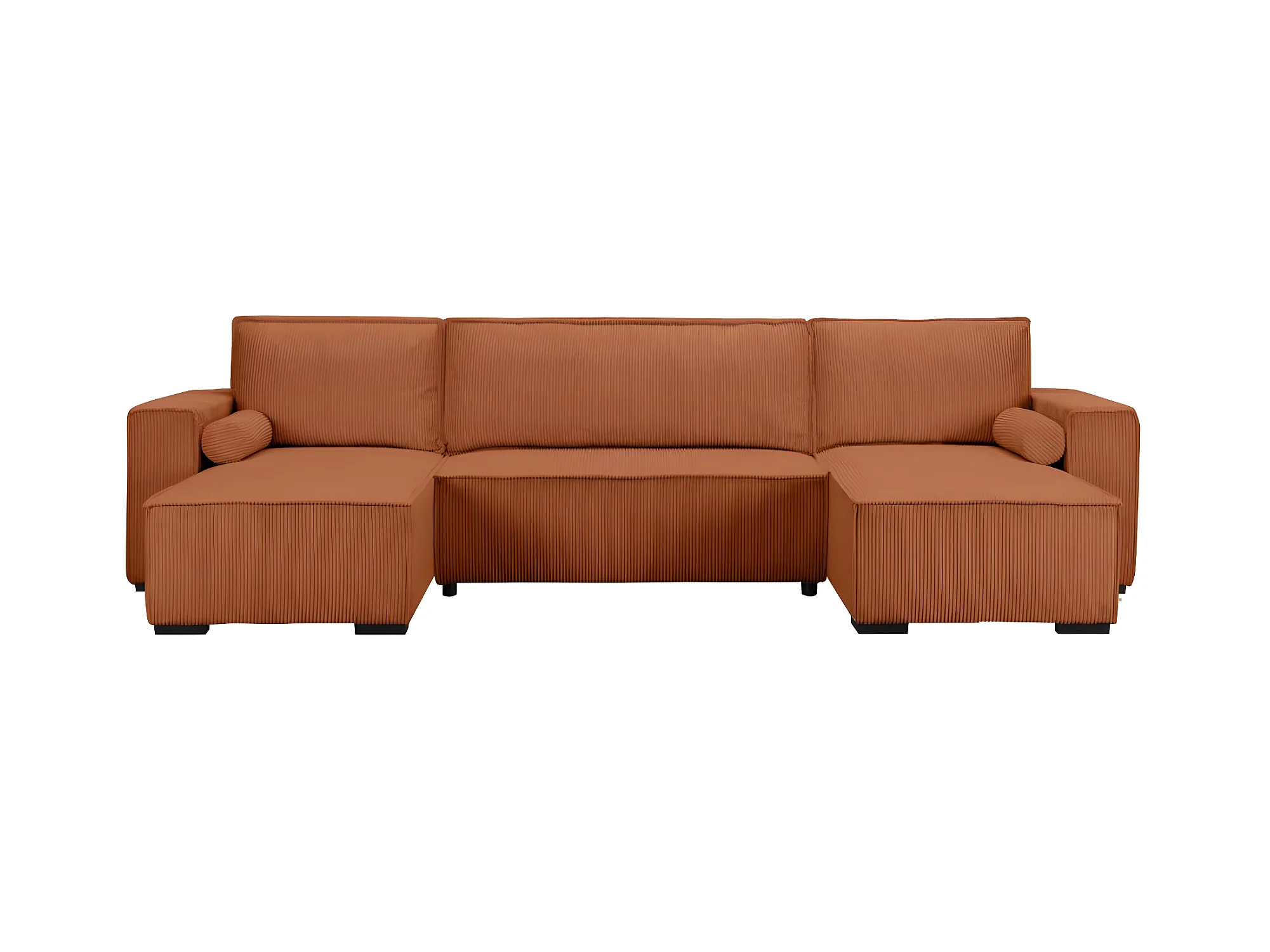 Canapé panoramique 5 places Clarence convertible avec coffre en velours côtelé - Terracotta - L322 x P161 x H87cm - Loungitude