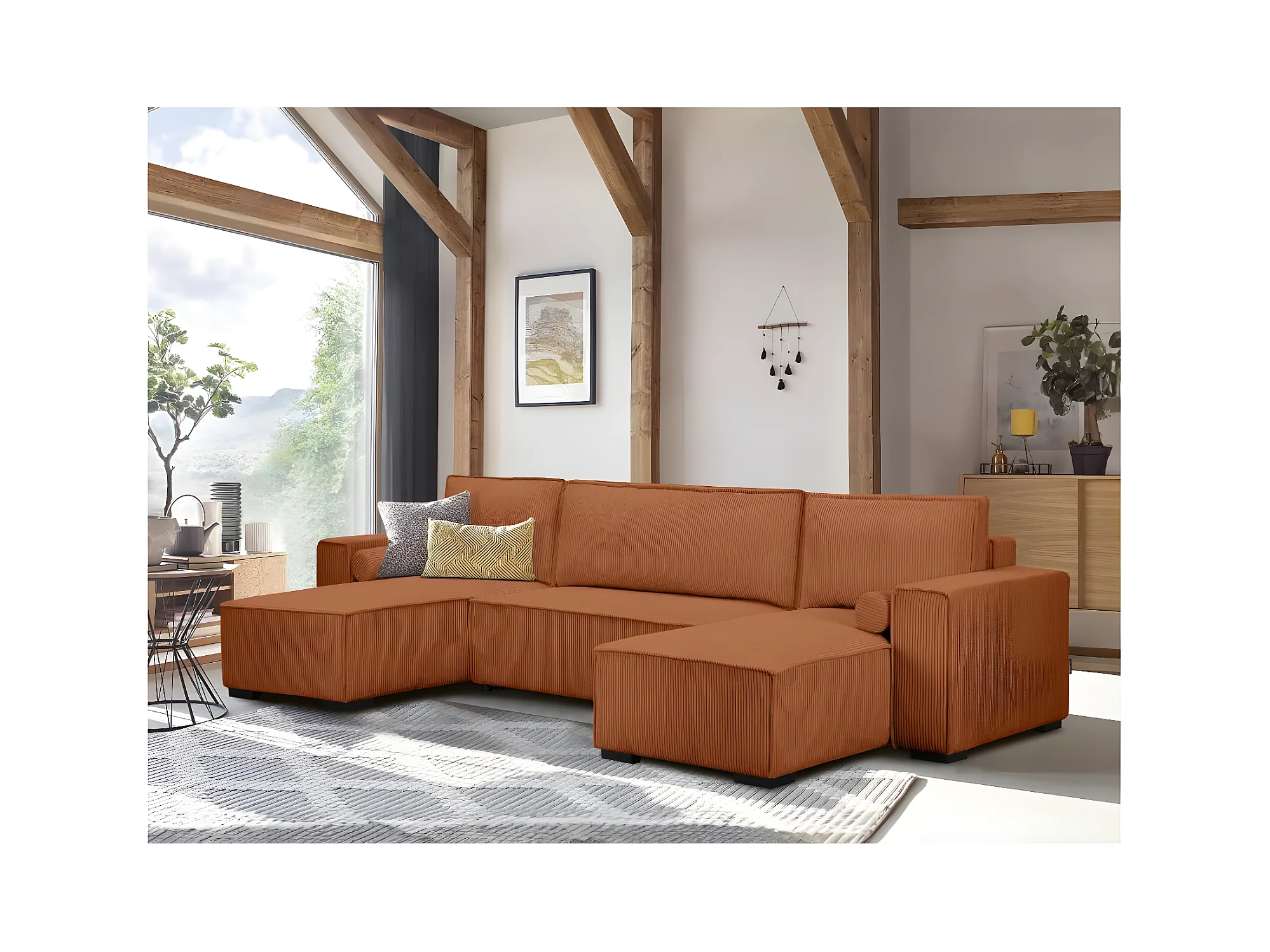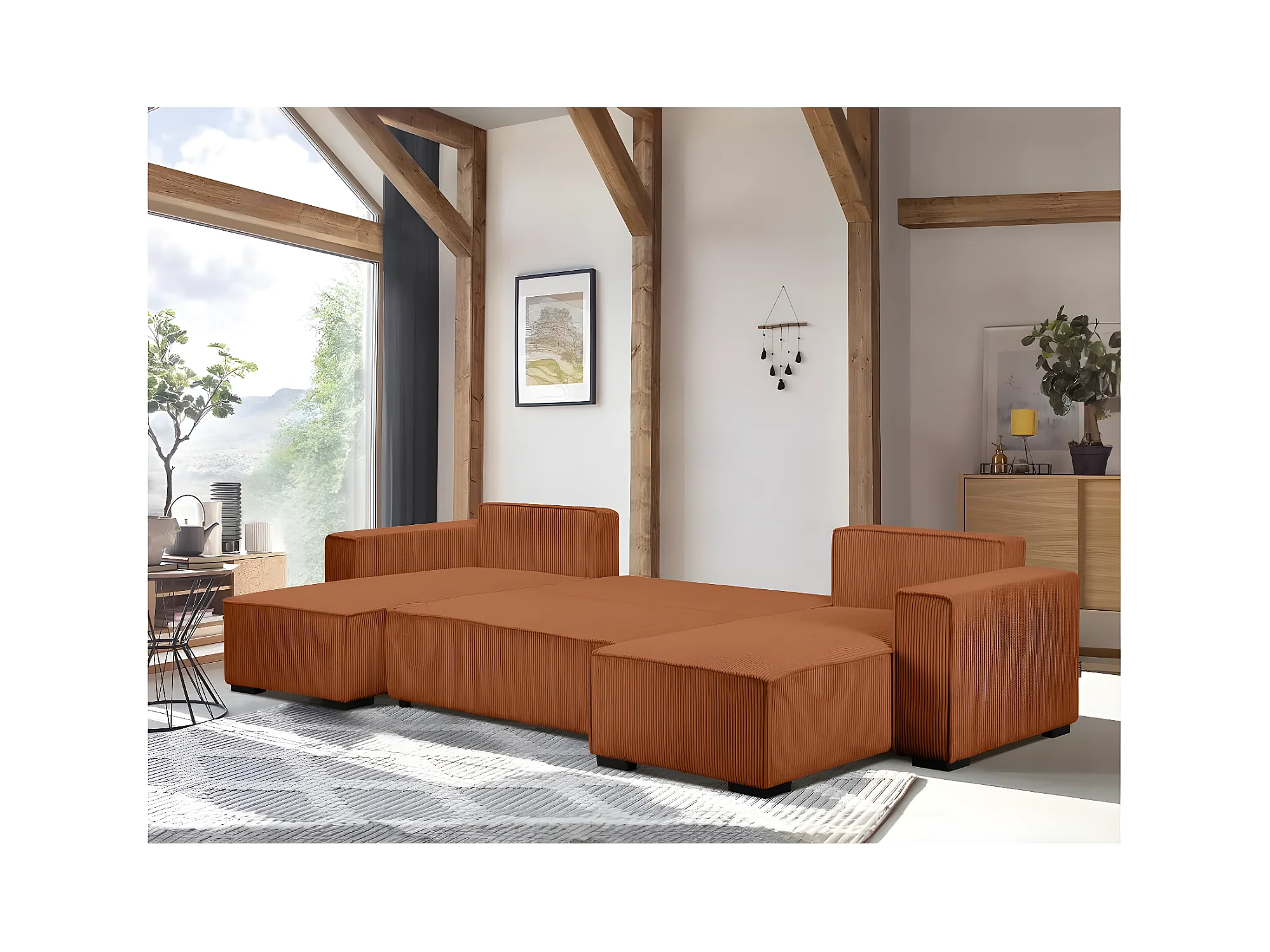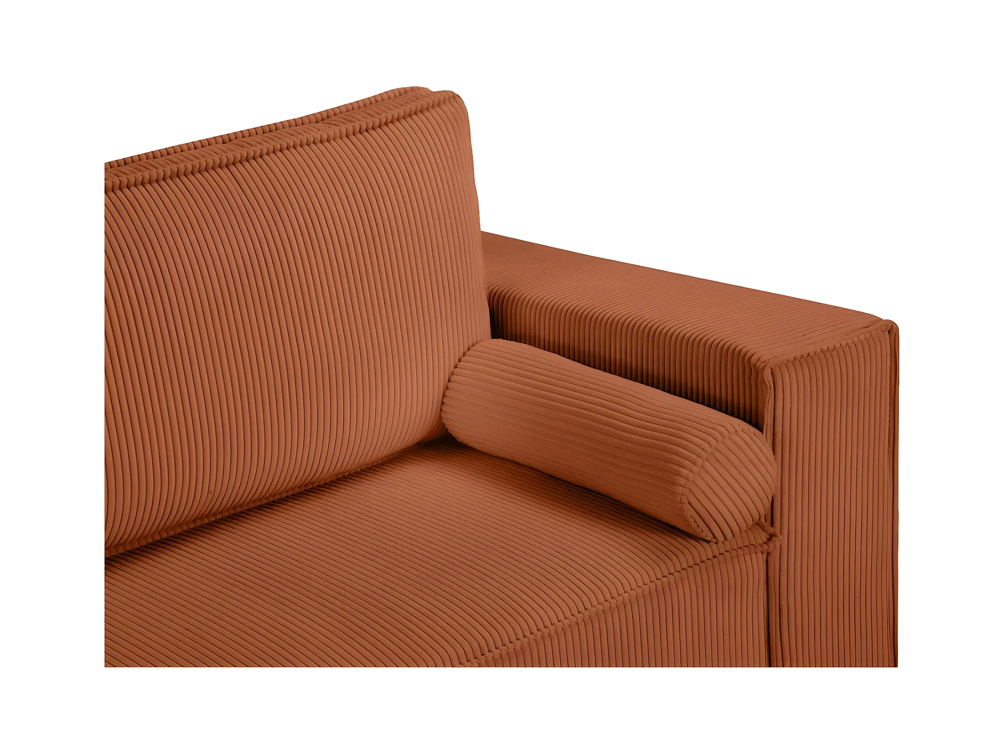 Canapé panoramique 5 places Clarence convertible avec coffre en velours côtelé - Terracotta - L322 x P161 x H87cm - Loungitude