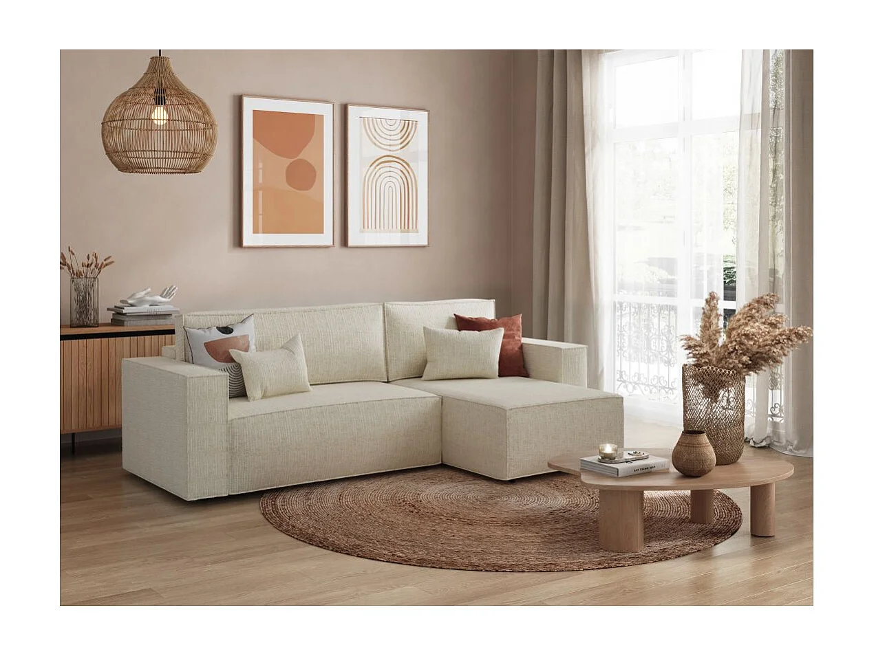 Canapé d'angle 3 places convertible réversible Clarisse avec coffre en tissu texturé - Beige - L269 x P159 x H89cm - Loungitude