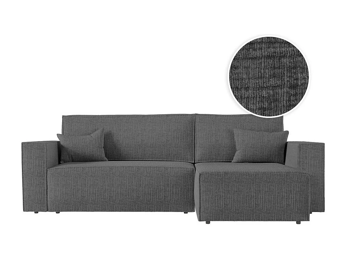 Canapé d'angle 3 places convertible réversible Clarisse avec coffre en tissu texturé - Gris anthracite - L269 x P159 x H89cm - Loungitude