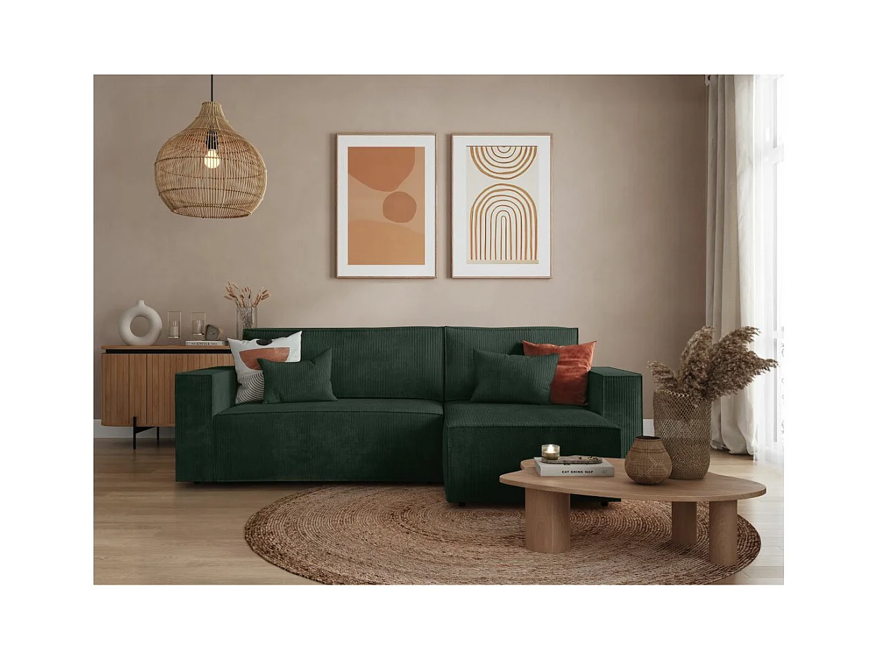 Canapé d'angle 3 places convertible réversible Clarisse avec coffre en velours côtelé- Vert foncé - L269 x P159 x H89cm - Loungitude