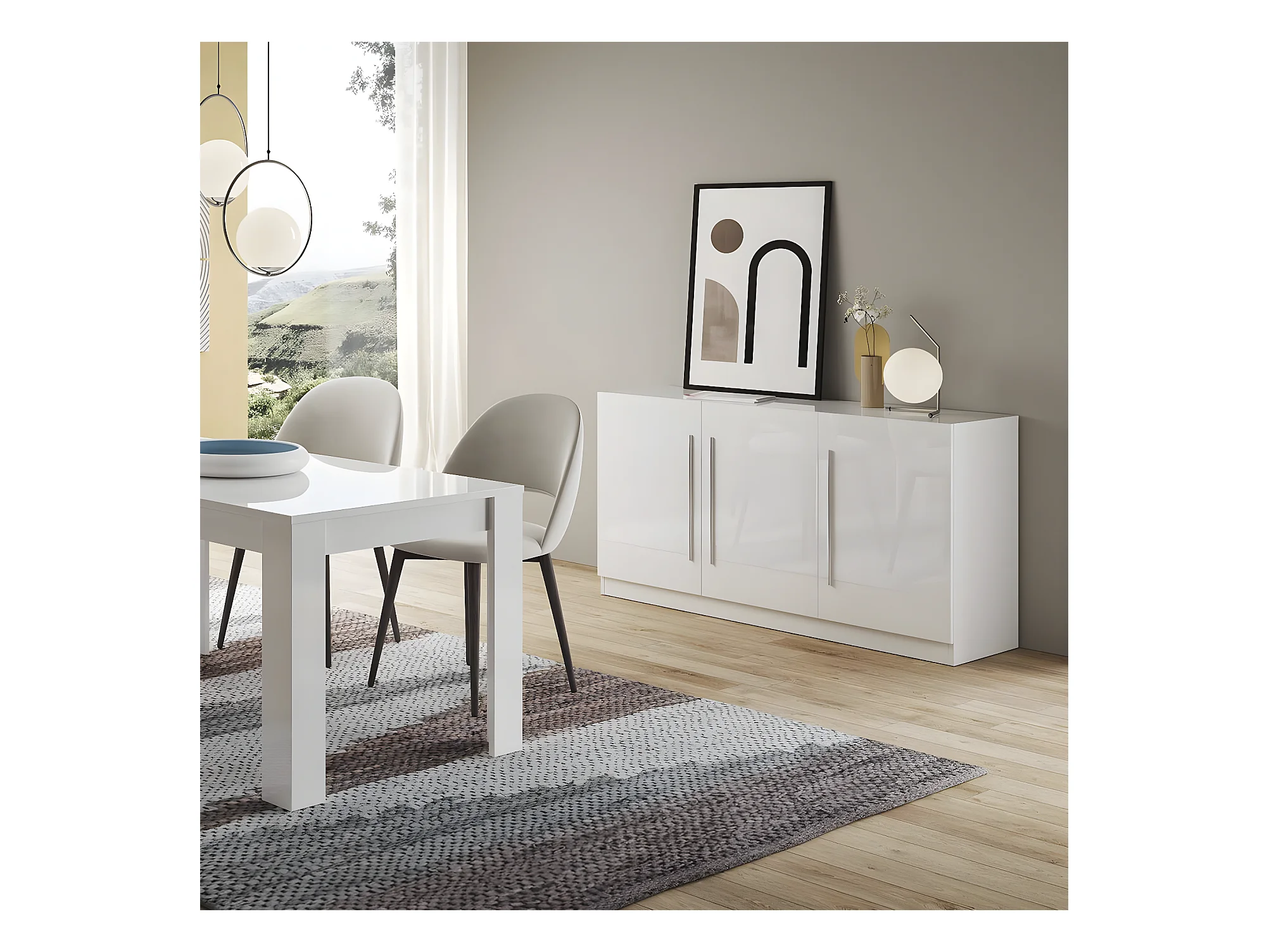 CLARK - Buffet 3 Portes Moderne Laqué Blanc Poignées en Métal