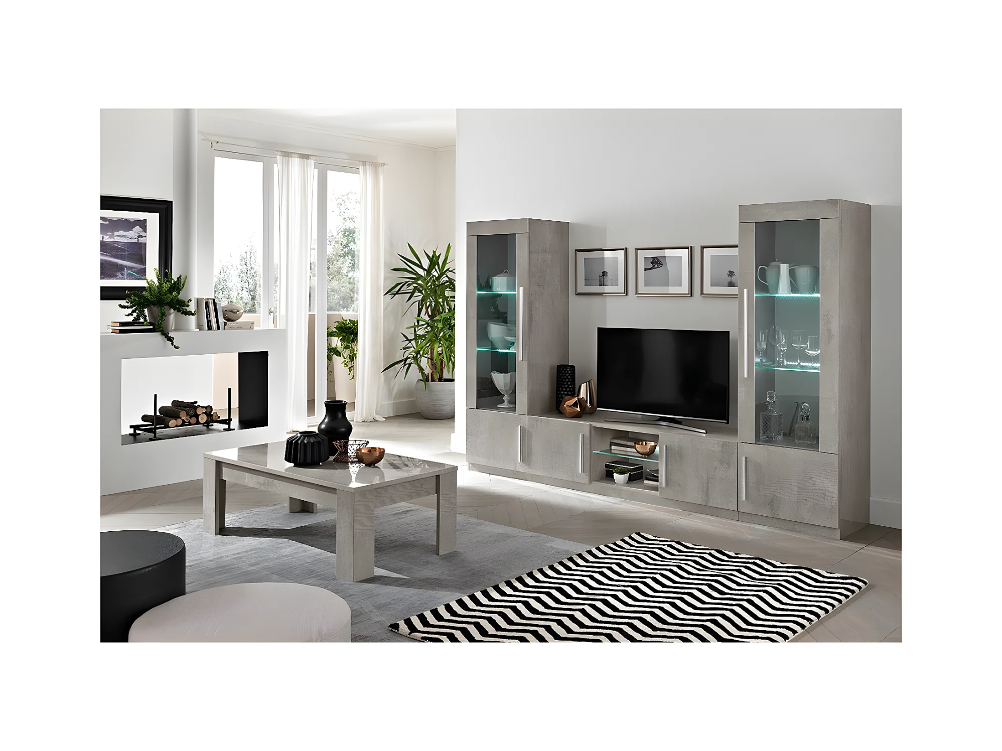 CLARK - Ensemble Salon Complet Effet Marbre Meuble TV et Vitrines avec Leds + Table Basse