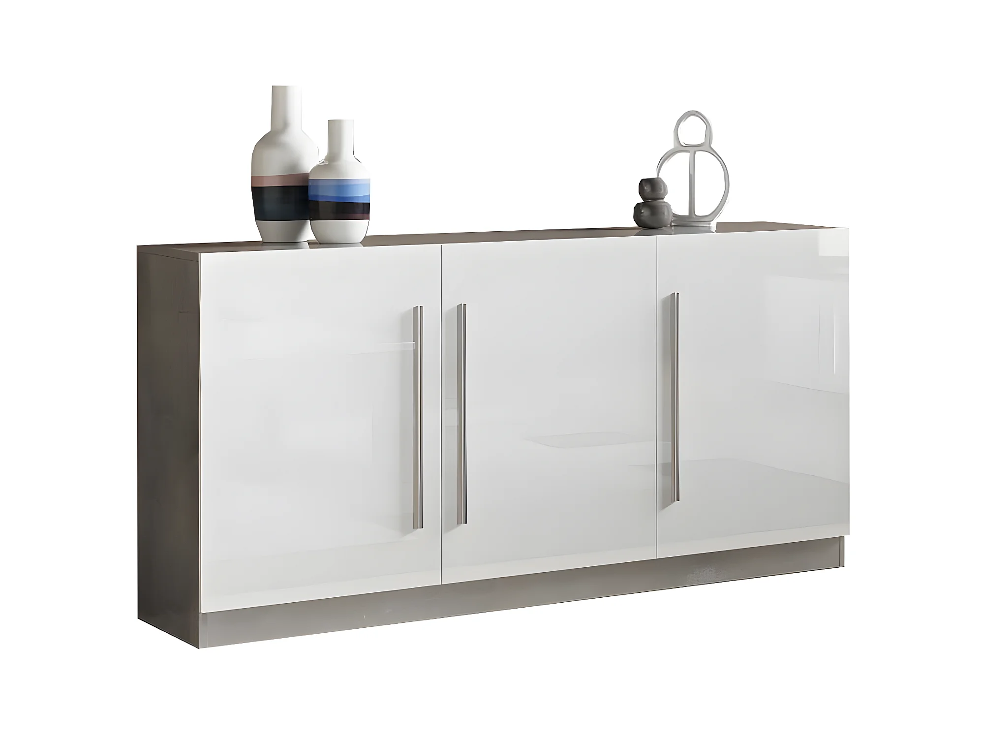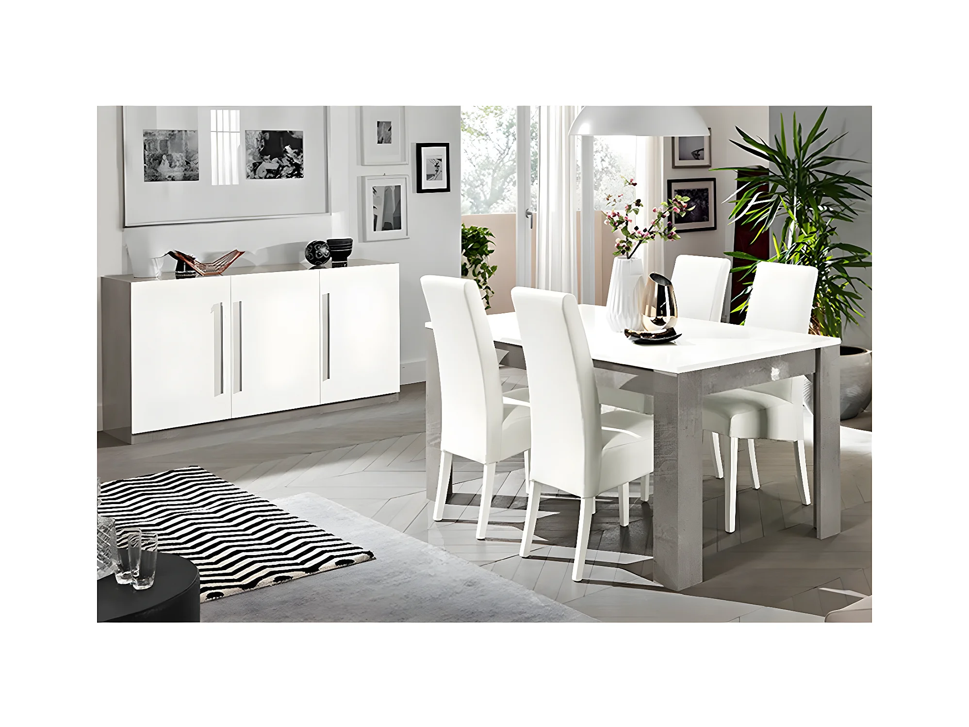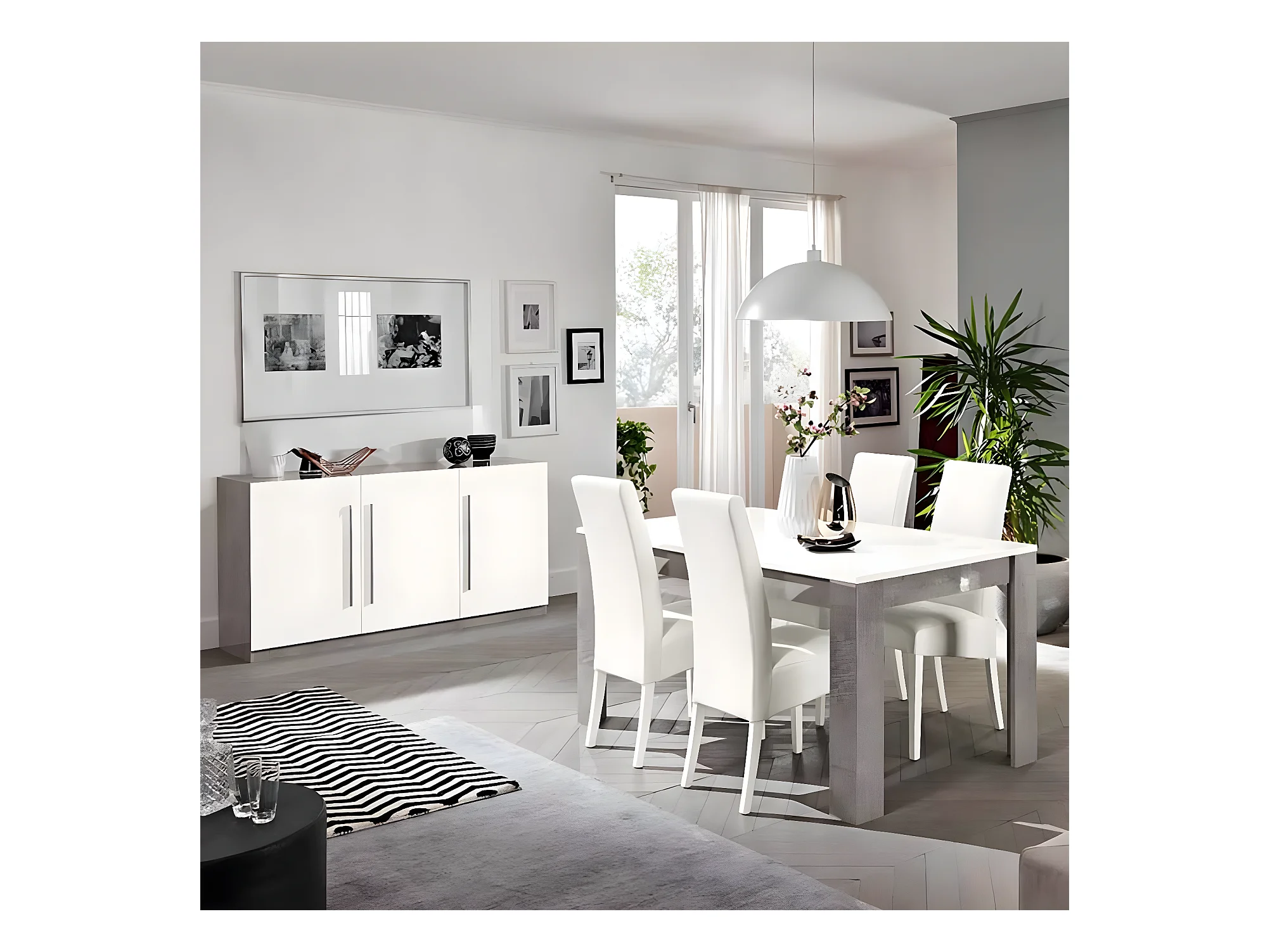 CLARK - Ensemble Séjour Blanc et Marbre Table 190cm + Buffet 3 Portes