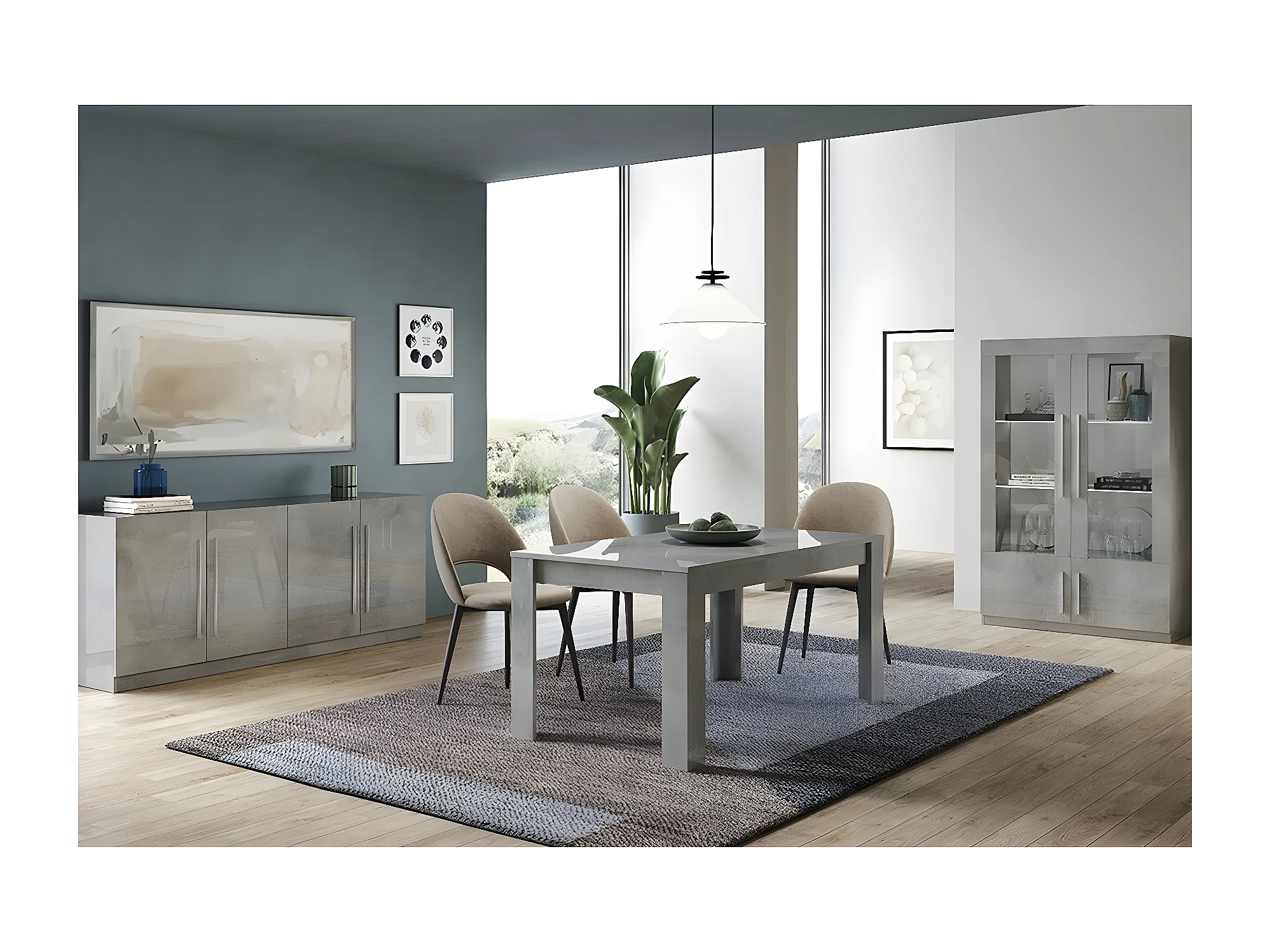CLARK - Ensemble Séjour Complet Effet Marbre Table 160cm + Buffet + Vitrine avec Leds