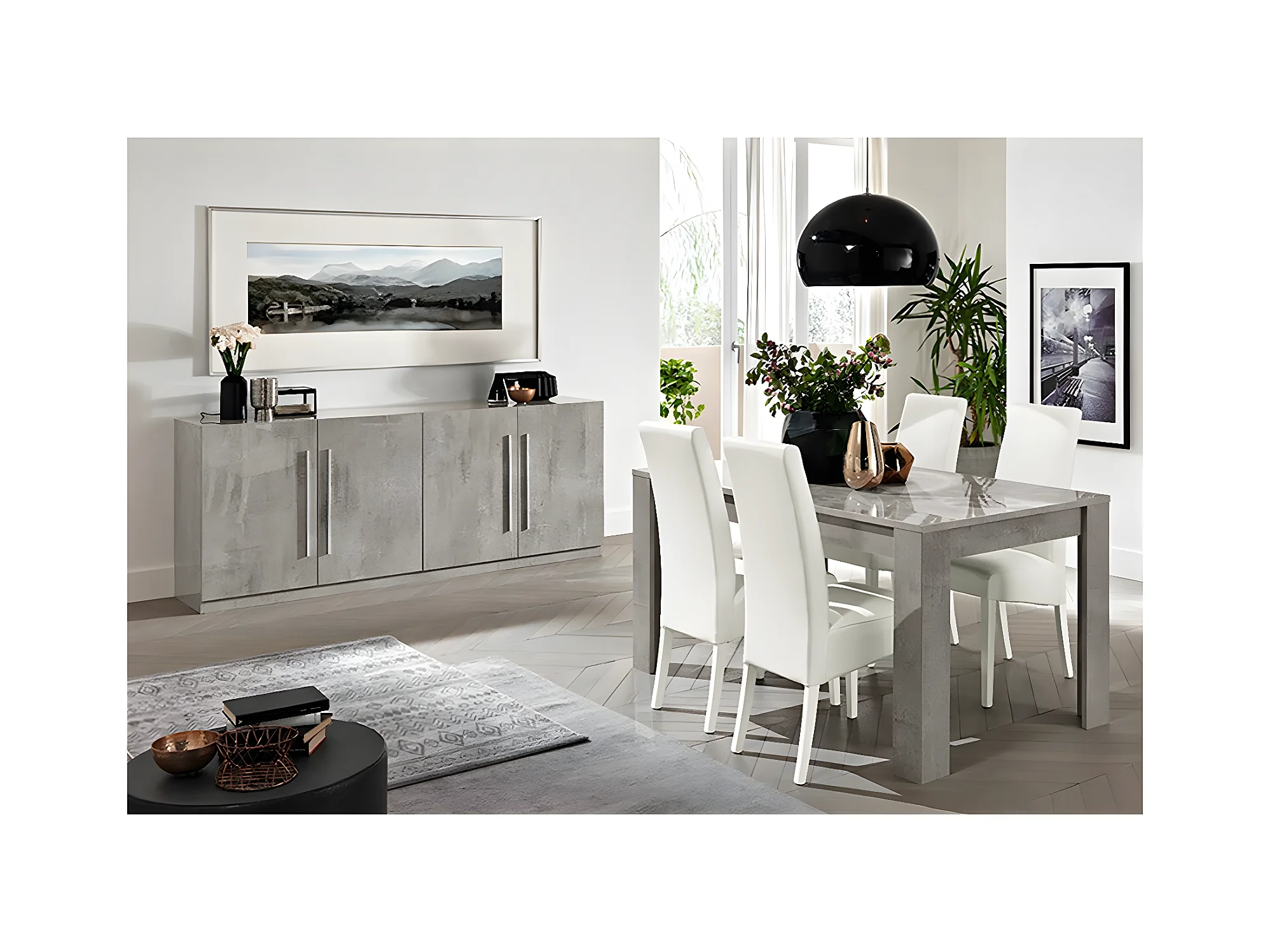 CLARK - Ensemble Séjour Effet Marbre Table 190cm + Buffet 4 Portes