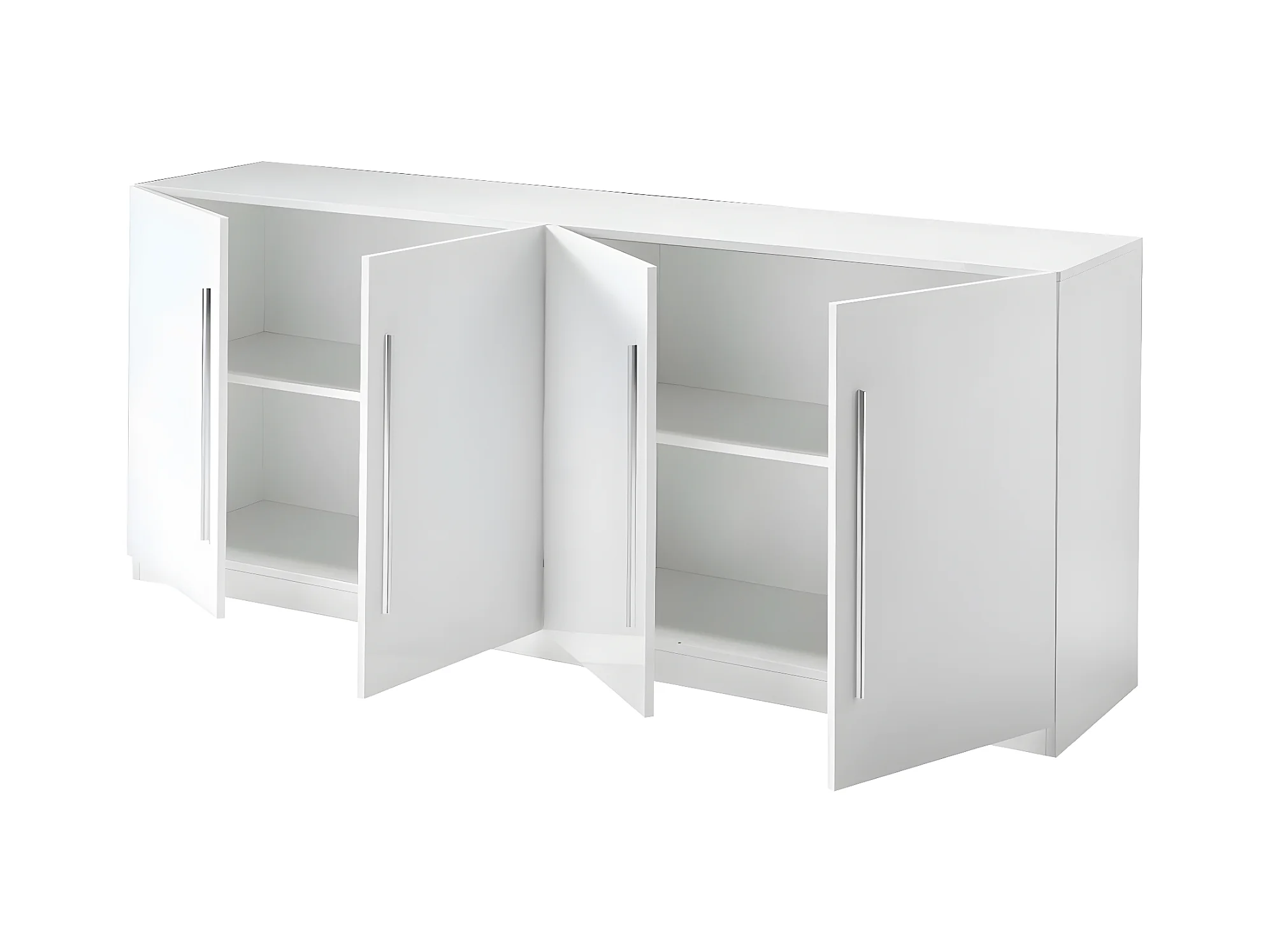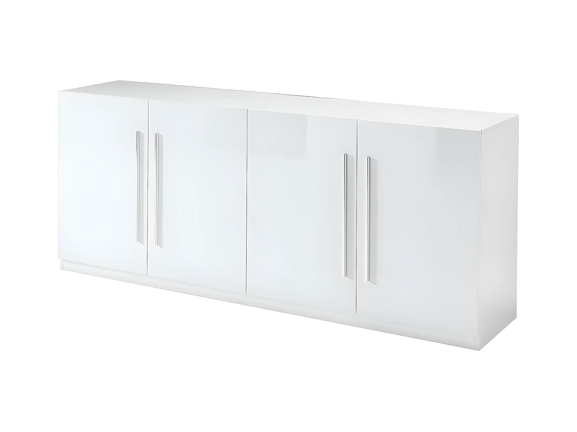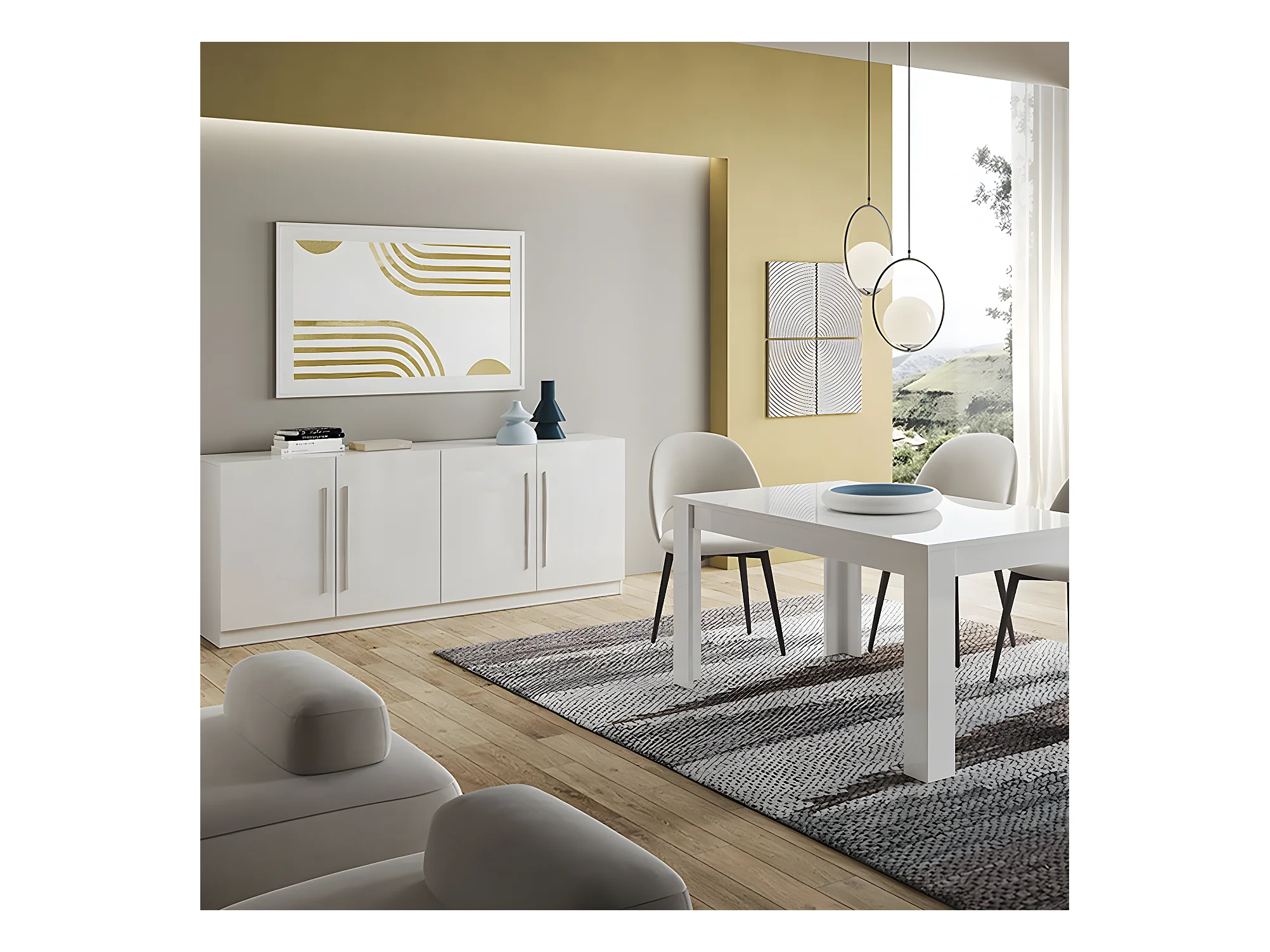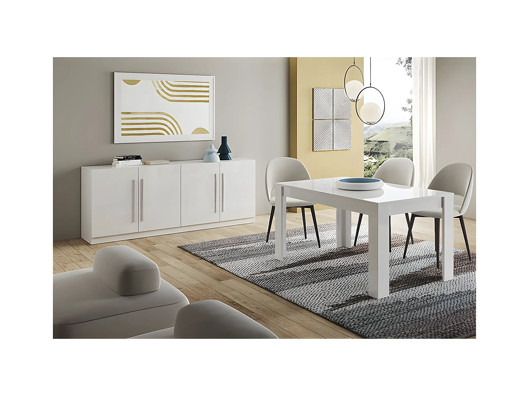 CLARK - Ensemble Séjour Laqué Blanc Table 190cm + Buffet 4 Portes