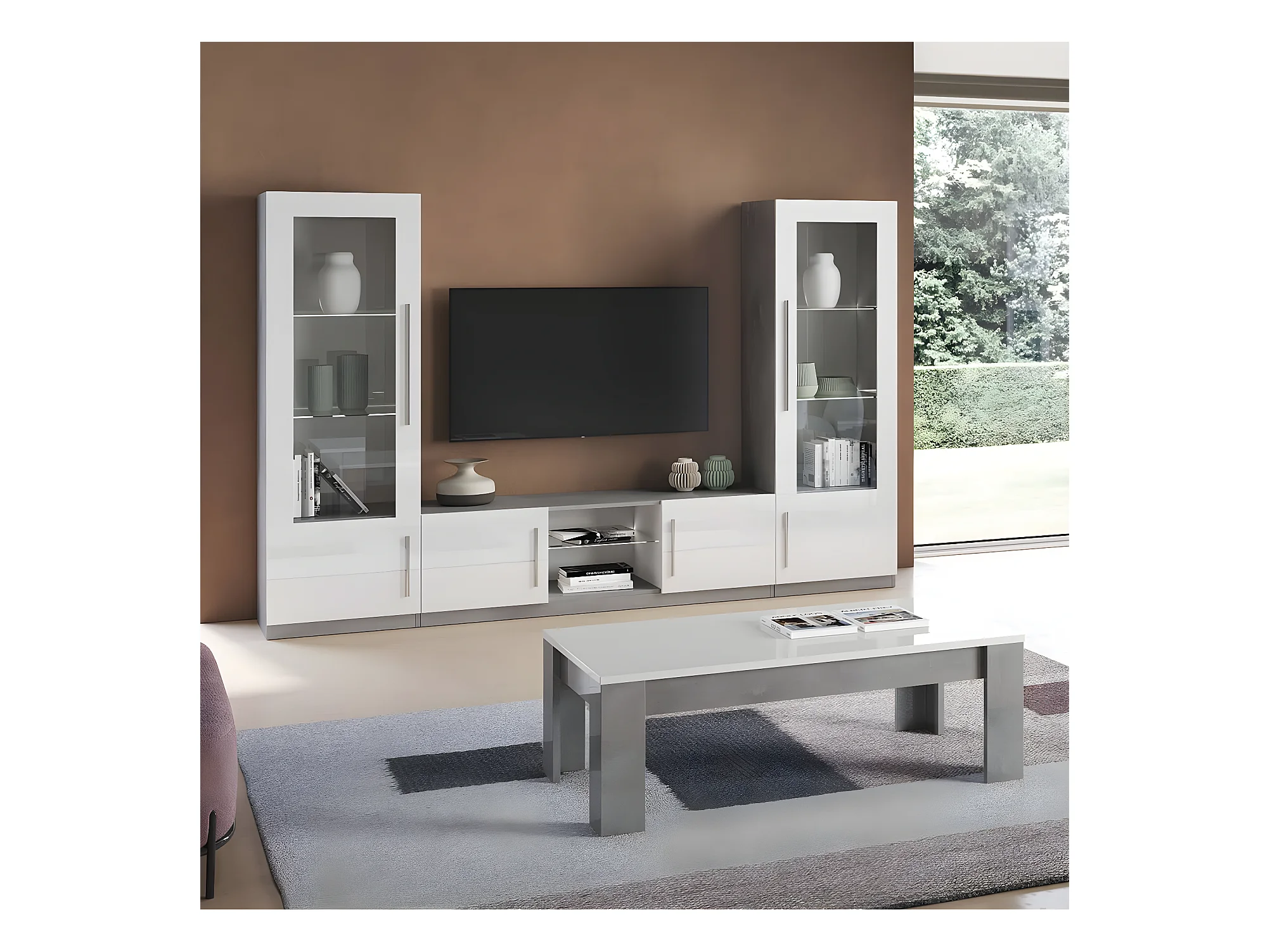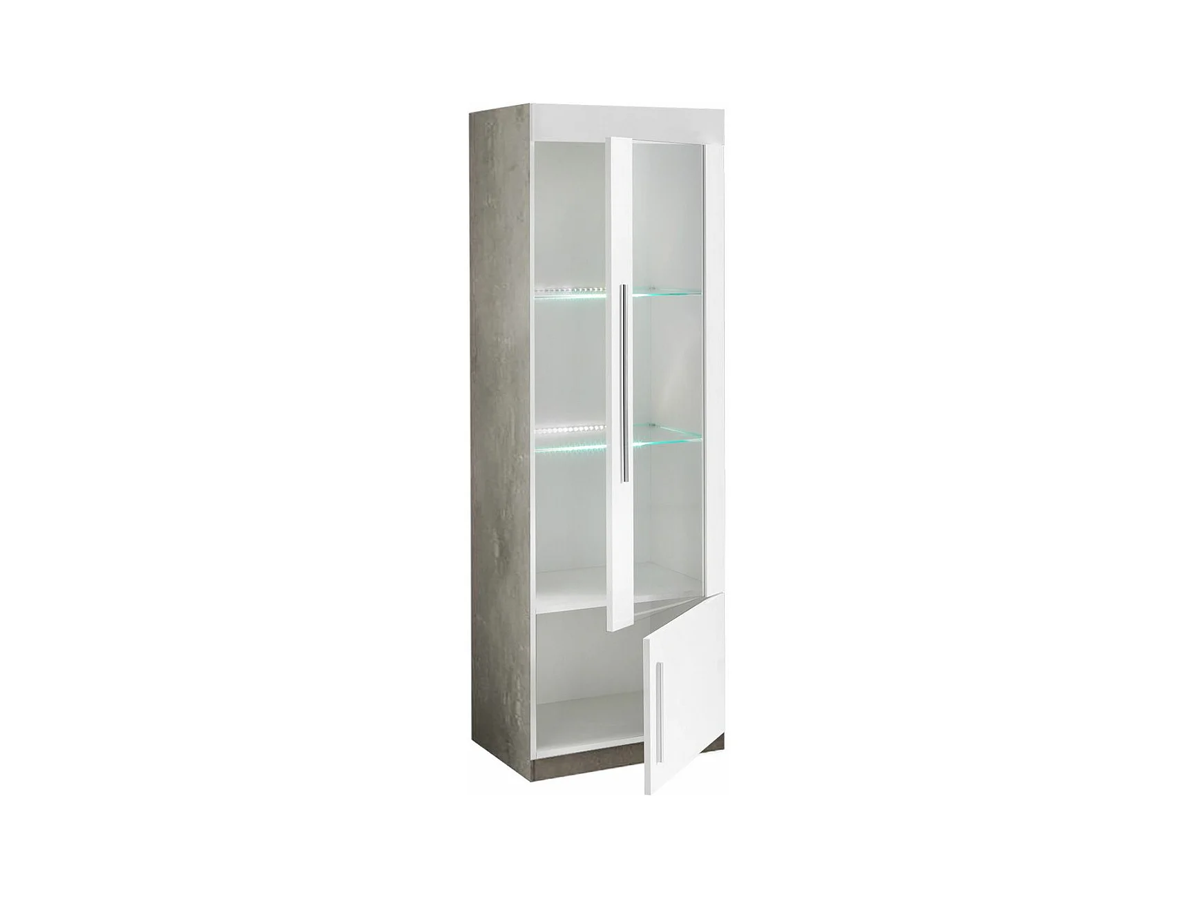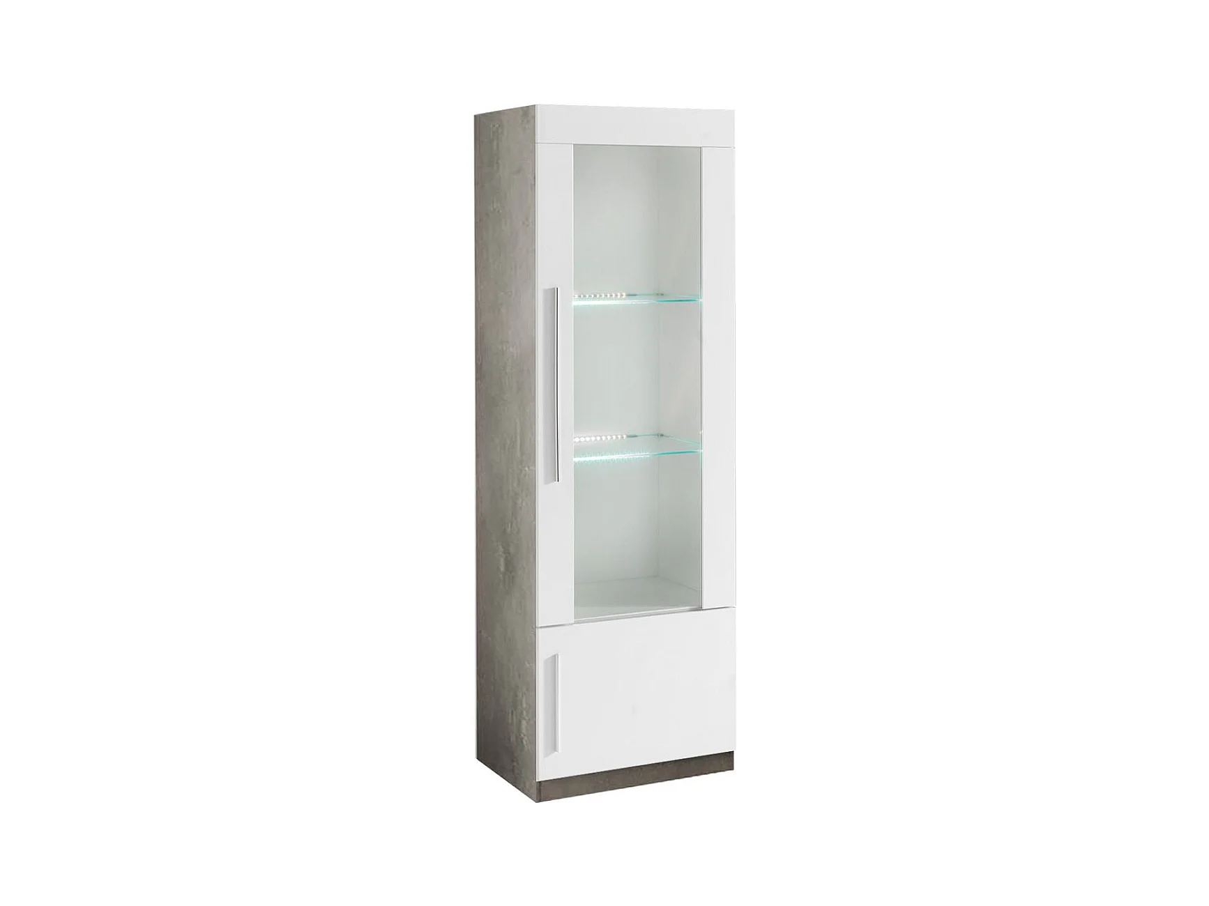 CLARK - Vitrine Droite Laquée Blanc et Marbre Poignées Métal avec Leds