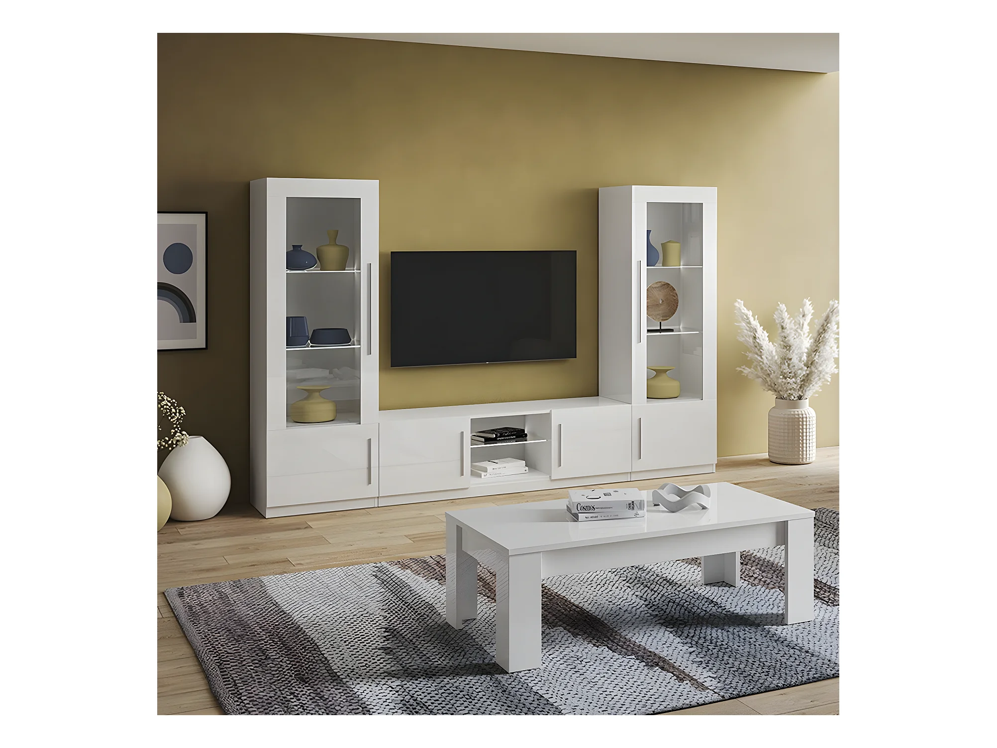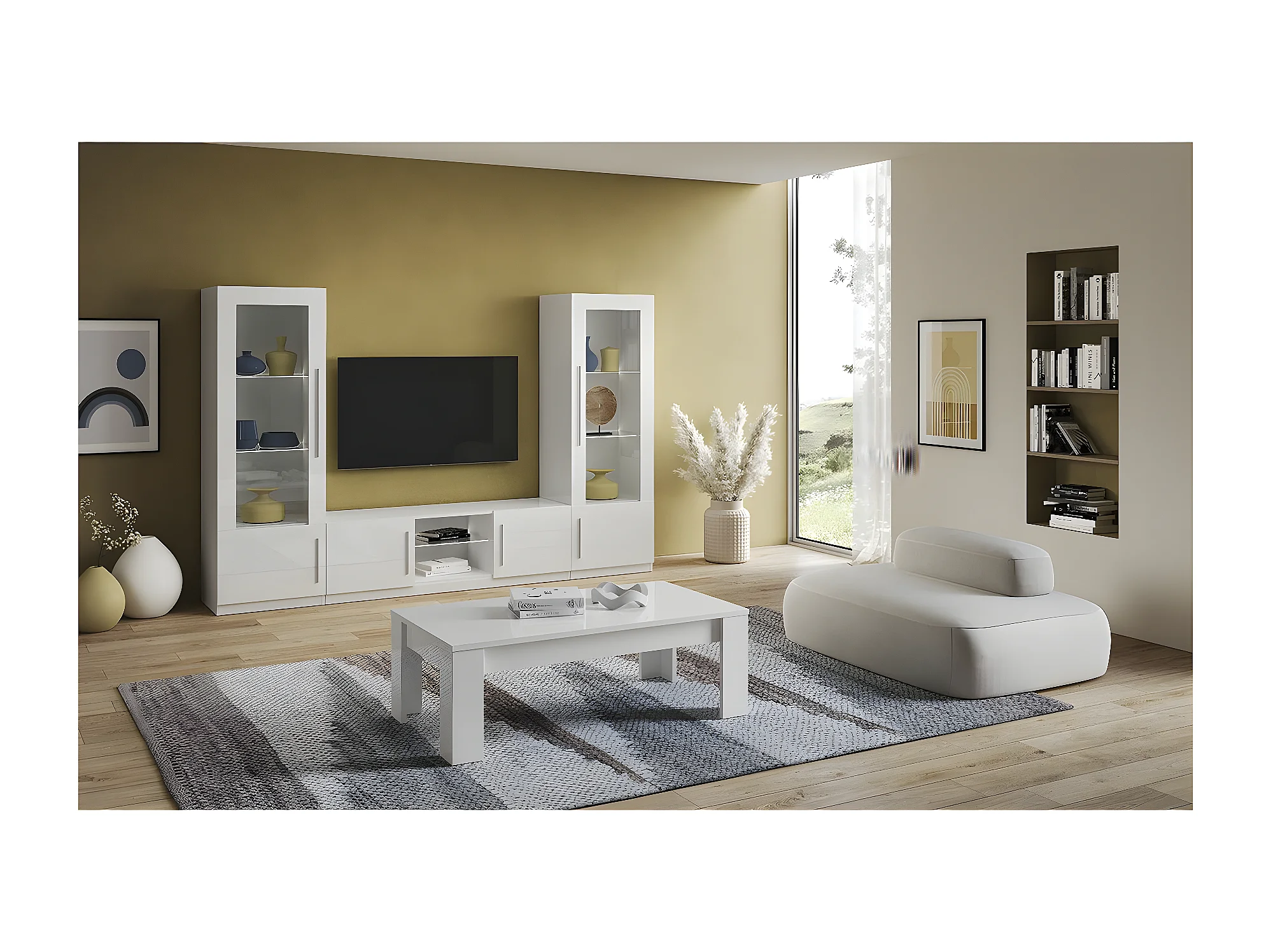 CLARK - Vitrine Gauche Laquée Blanc Poignées Métal avec Leds