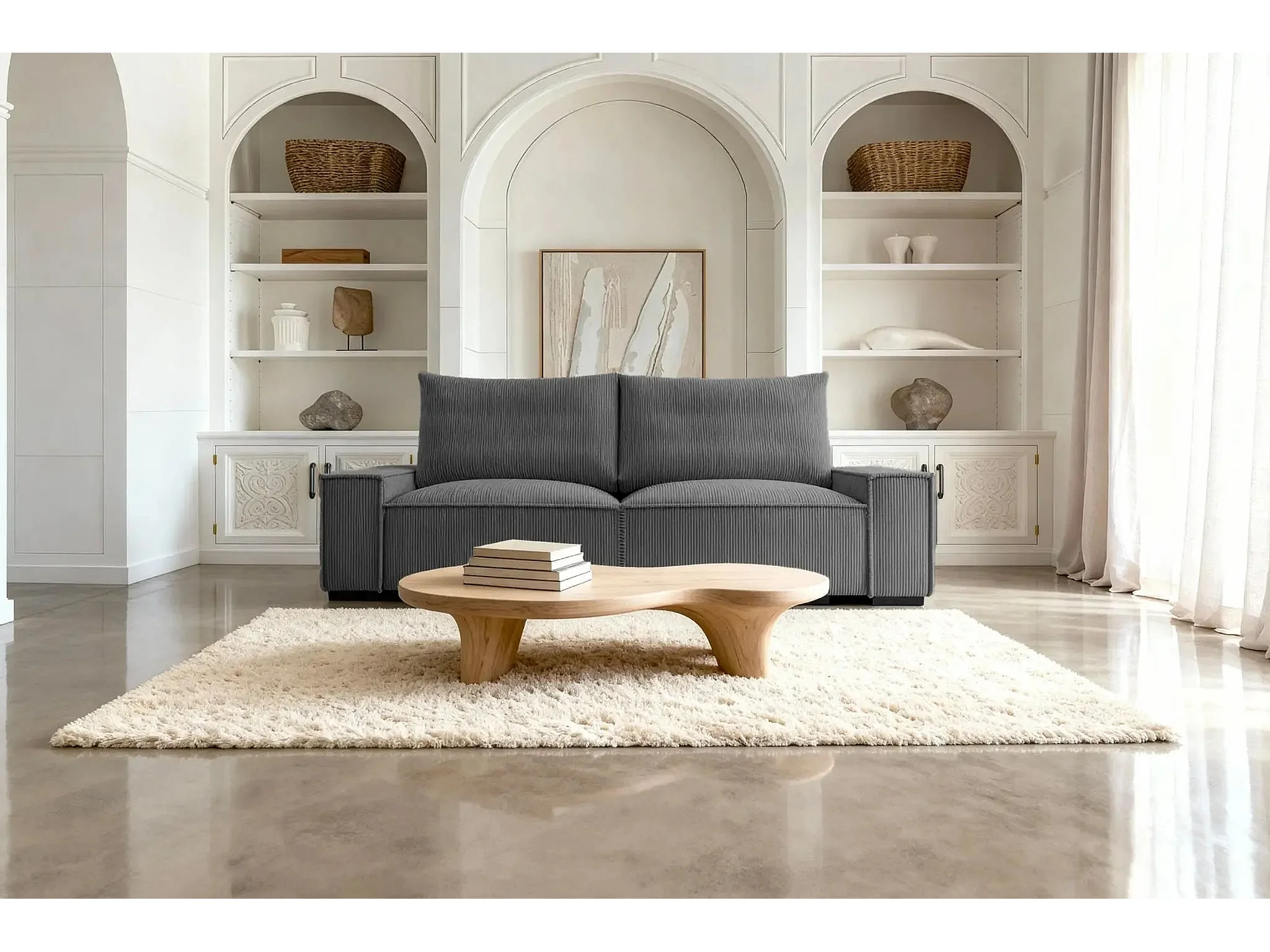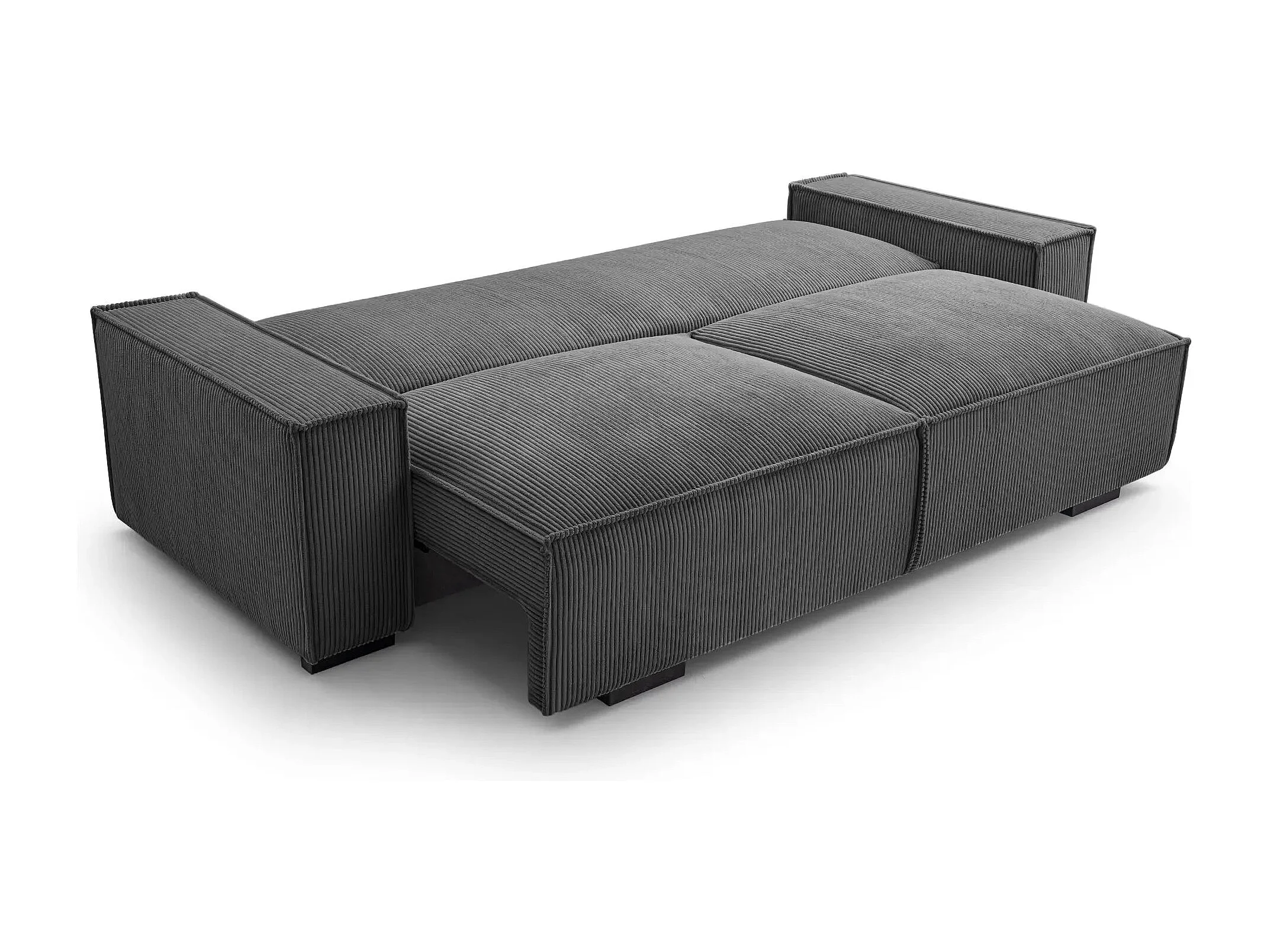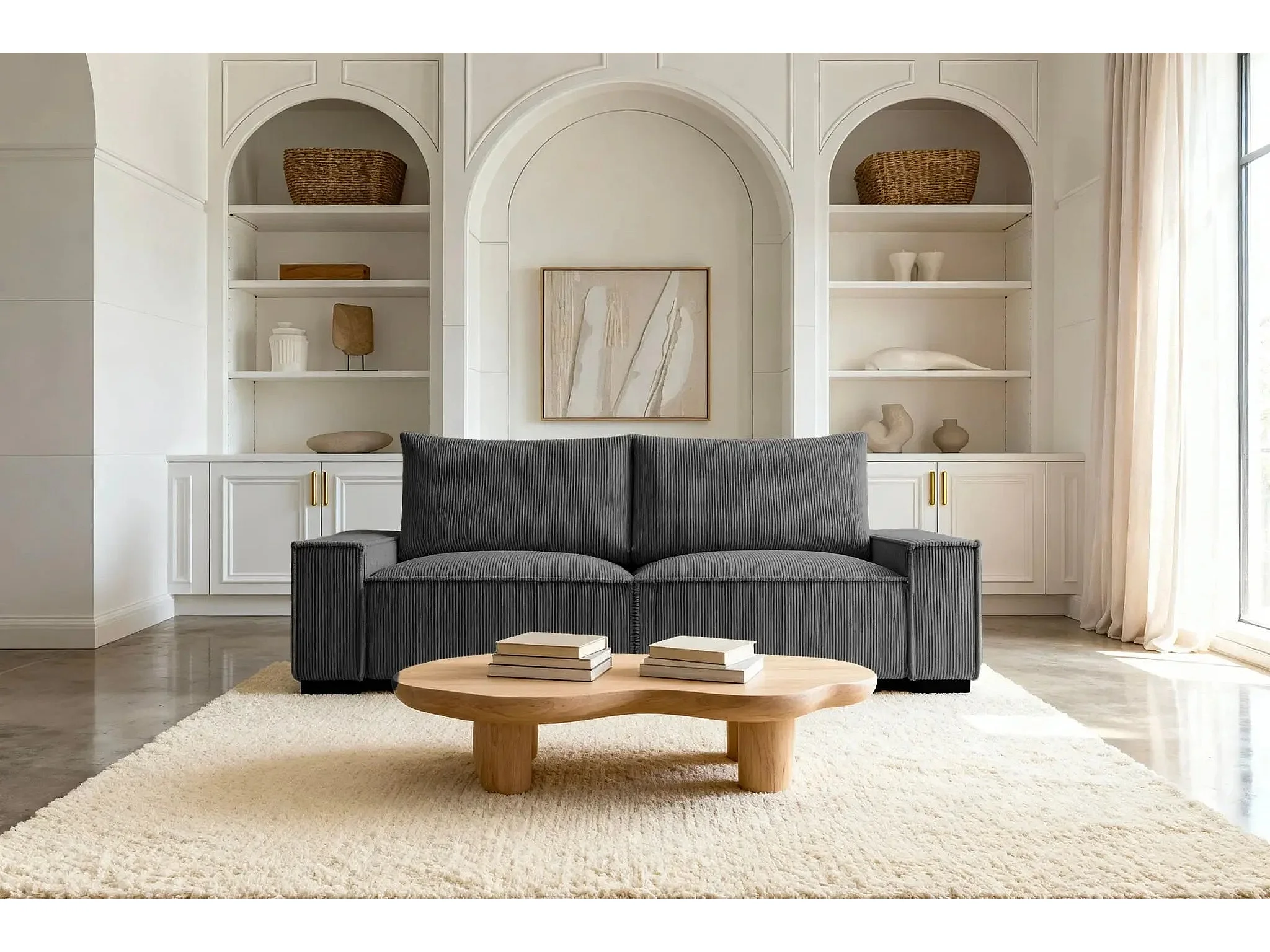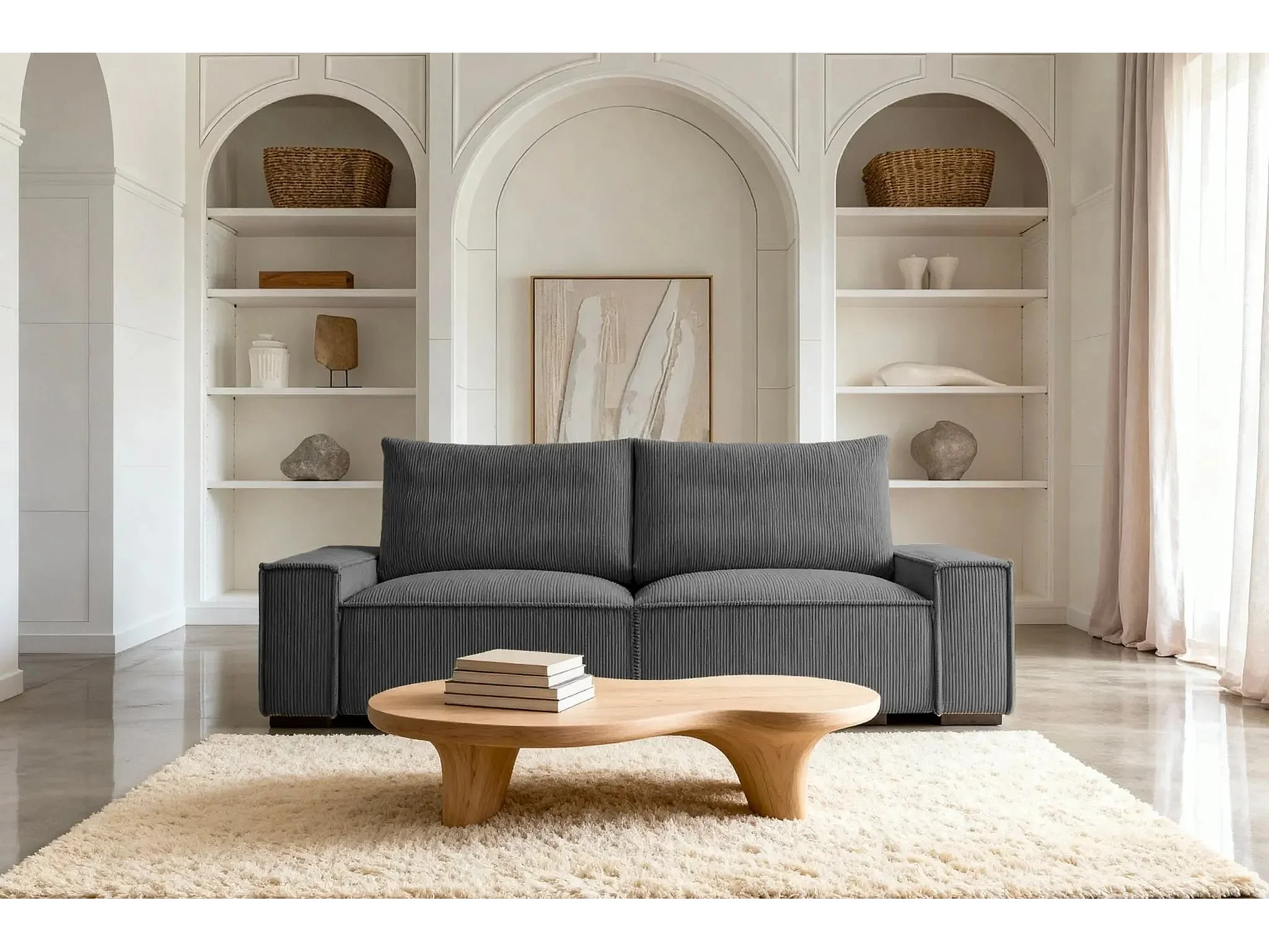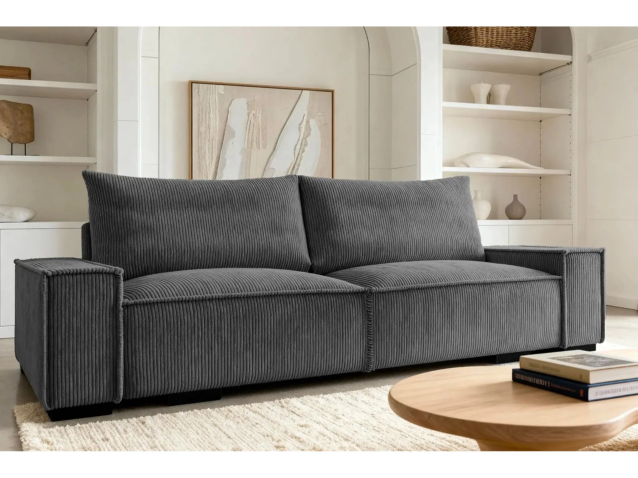 CLARY - Canapé droit convertible velours côtelé 2 places - Gris foncé