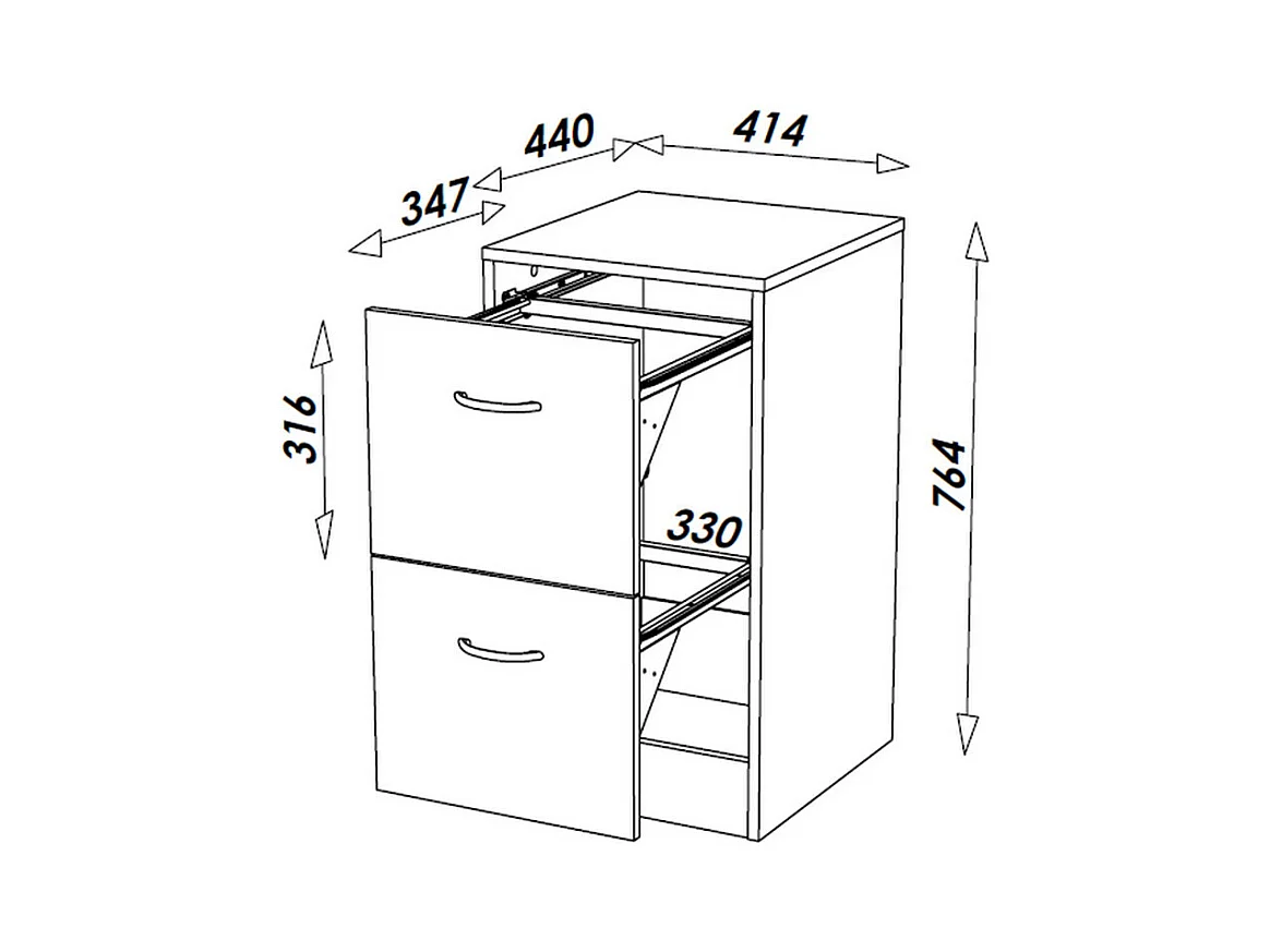Classeur 2 Tiroirs Pour 50 Dossiers Suspendus 41,4 x 76,4 x 44 cm - Coloris: Aluminium