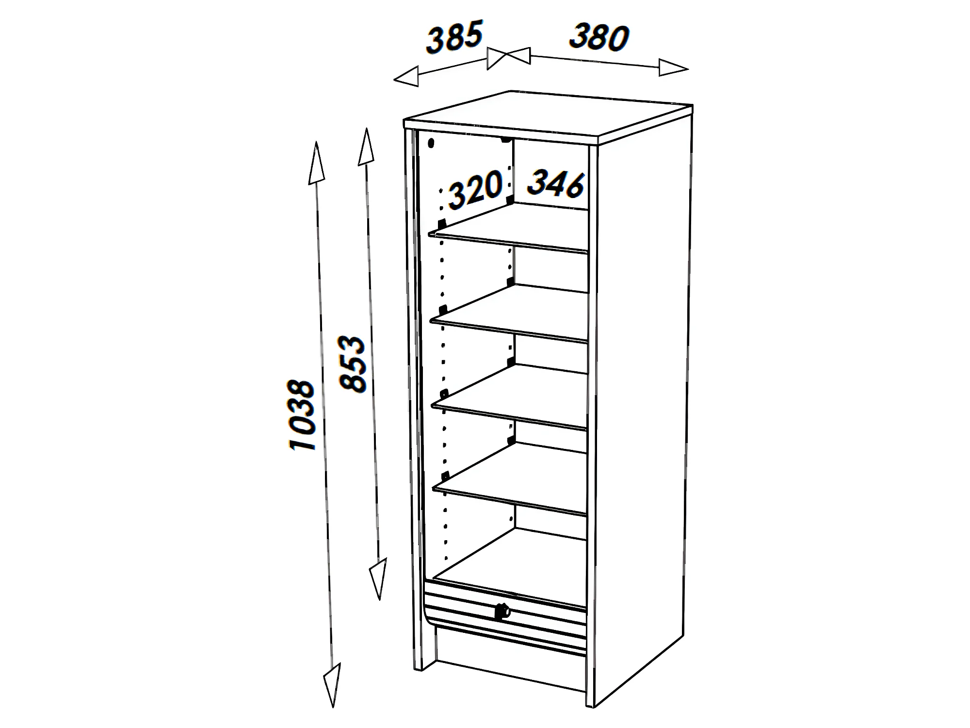 Classeur à Rideau Blanc Rideau Chêne ou Noir 5 Niches 37,8 x 103,8 x 38,4 cm - Coloris: Chêne Naturel