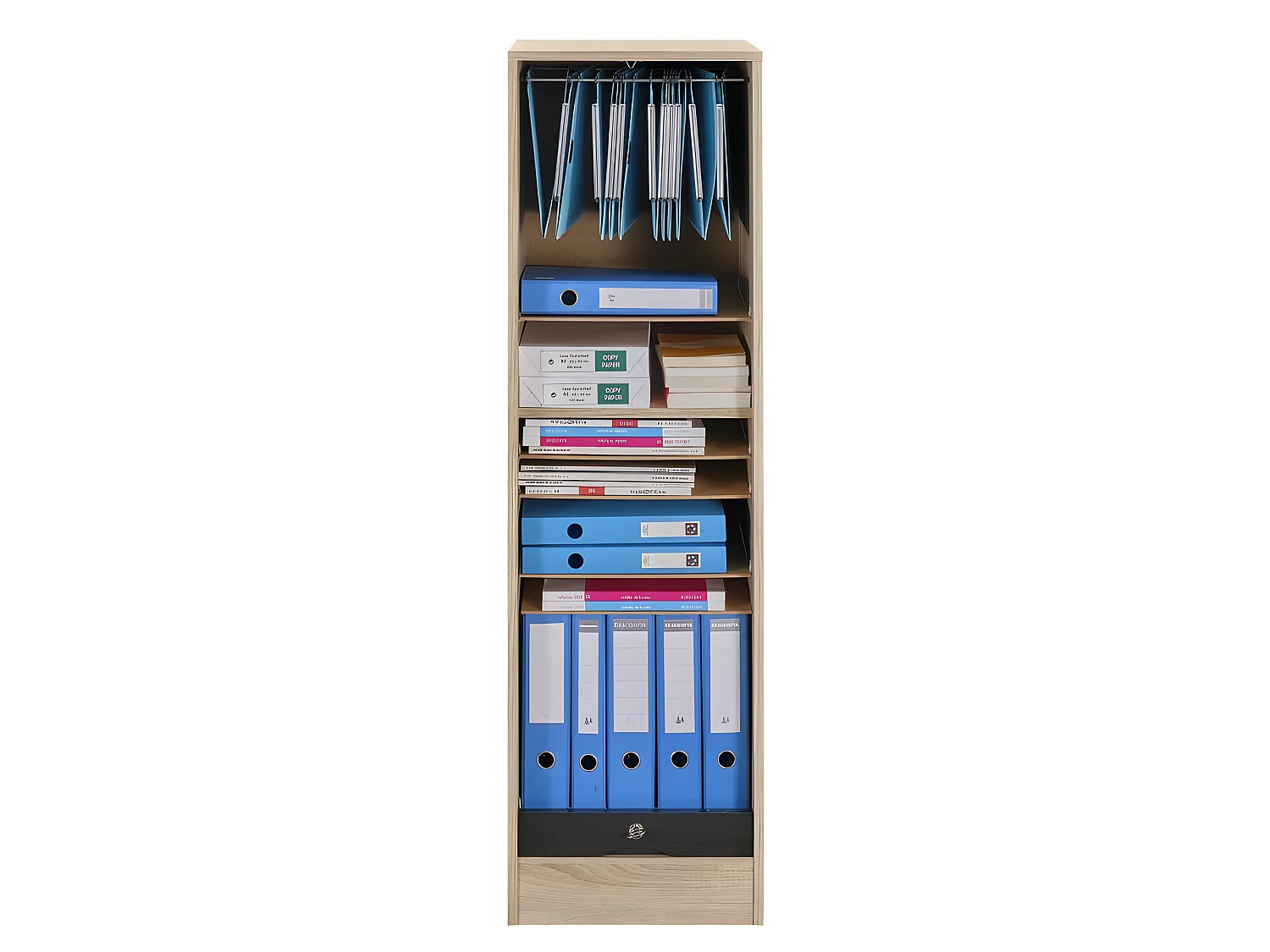 Classeur à Rideau Chêne et Noir 8 Tablettes Serrure L 41,4 H 140,4 P 44 cm