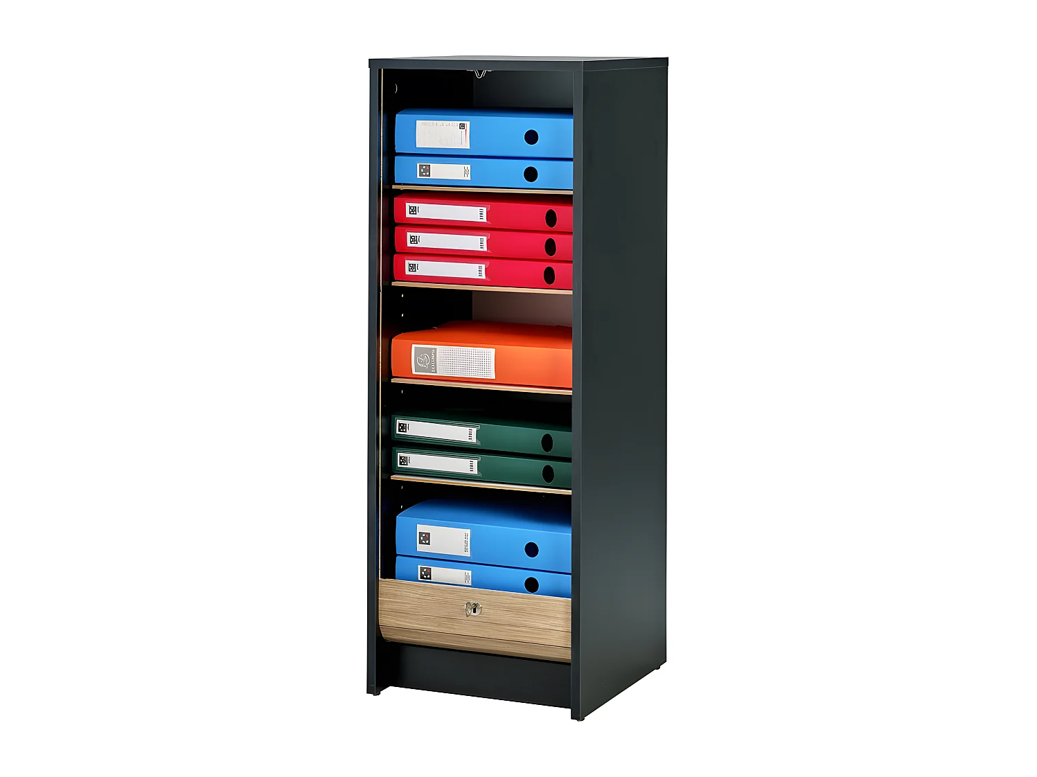 Classeur à Rideau Noir Bicolore 104 cm - Coloris: Chêne Naturel