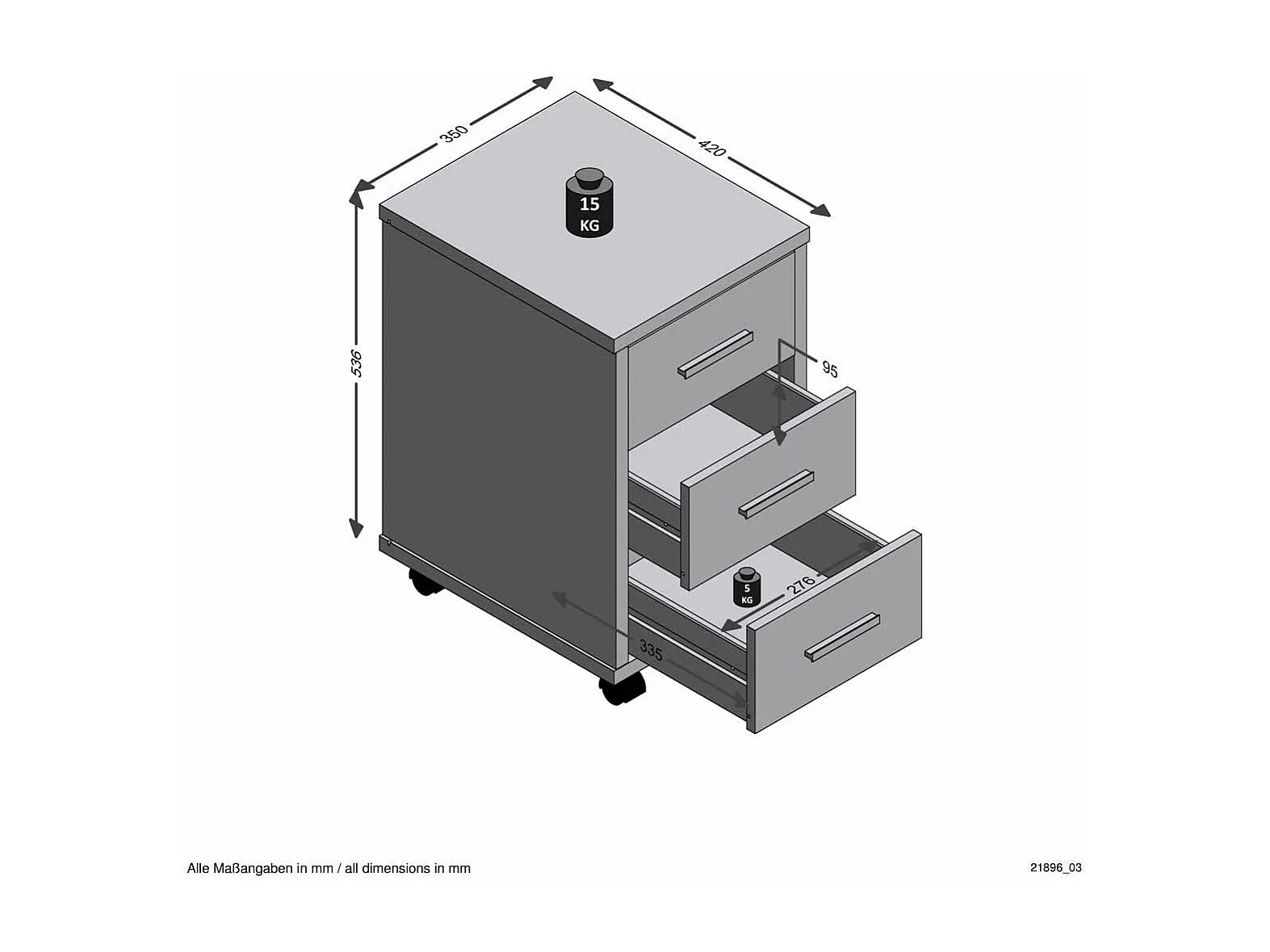 Caisson de Bureau 3 Tiroirs "Dylda" 58cm Gris