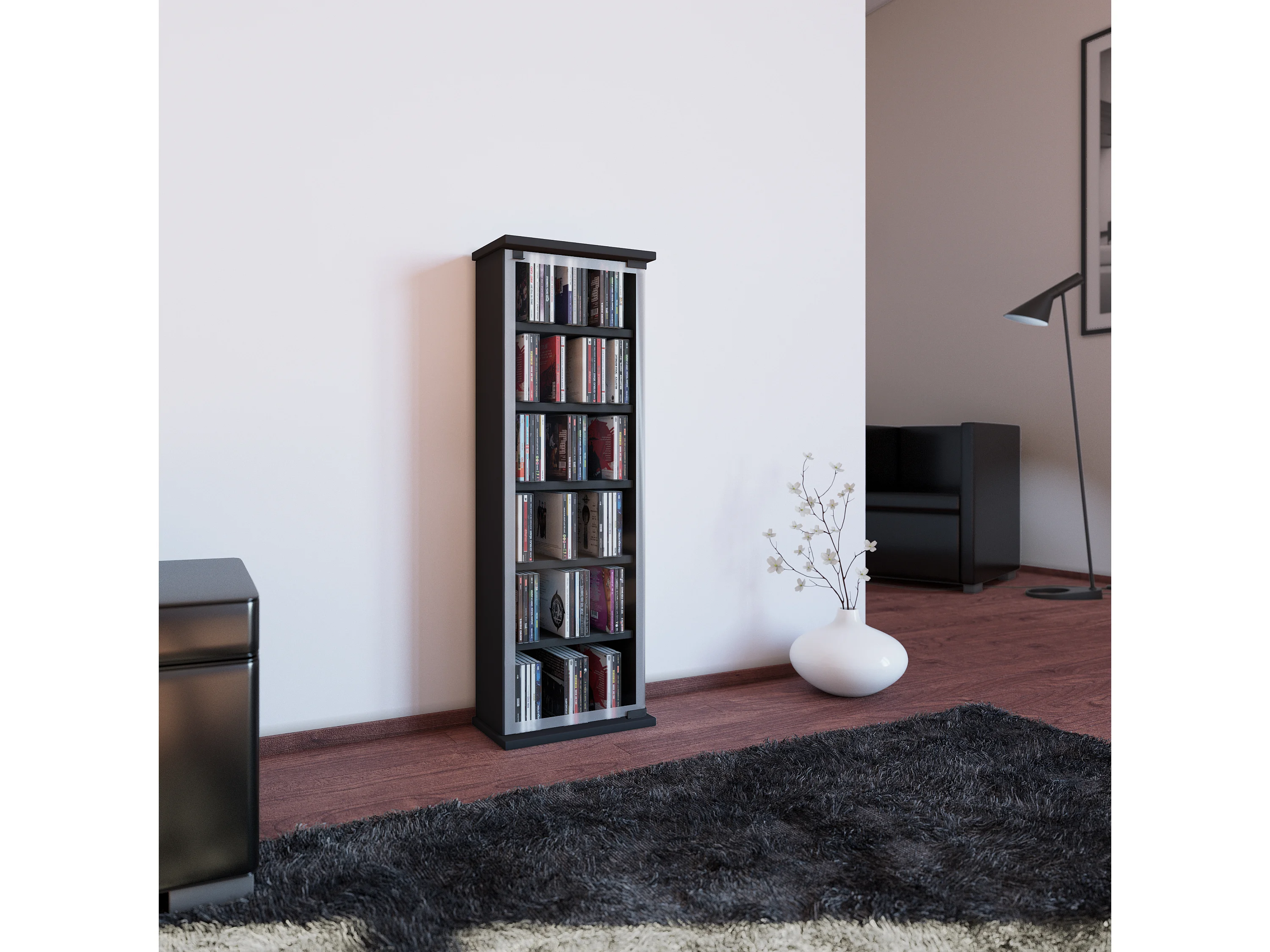 CD / DVD Media Shelf Classic Black H. 92 x W. 31 x D. 18 cm