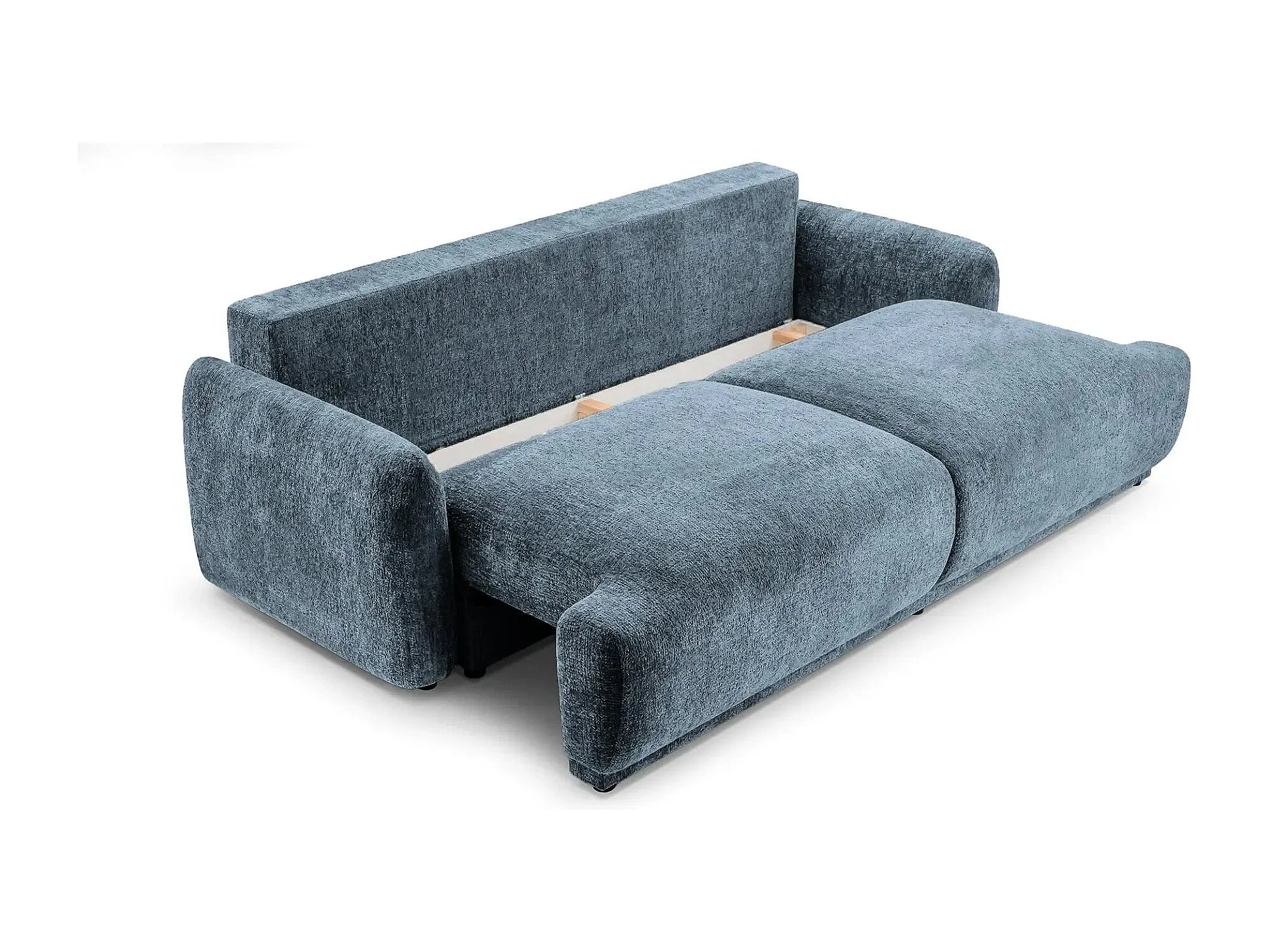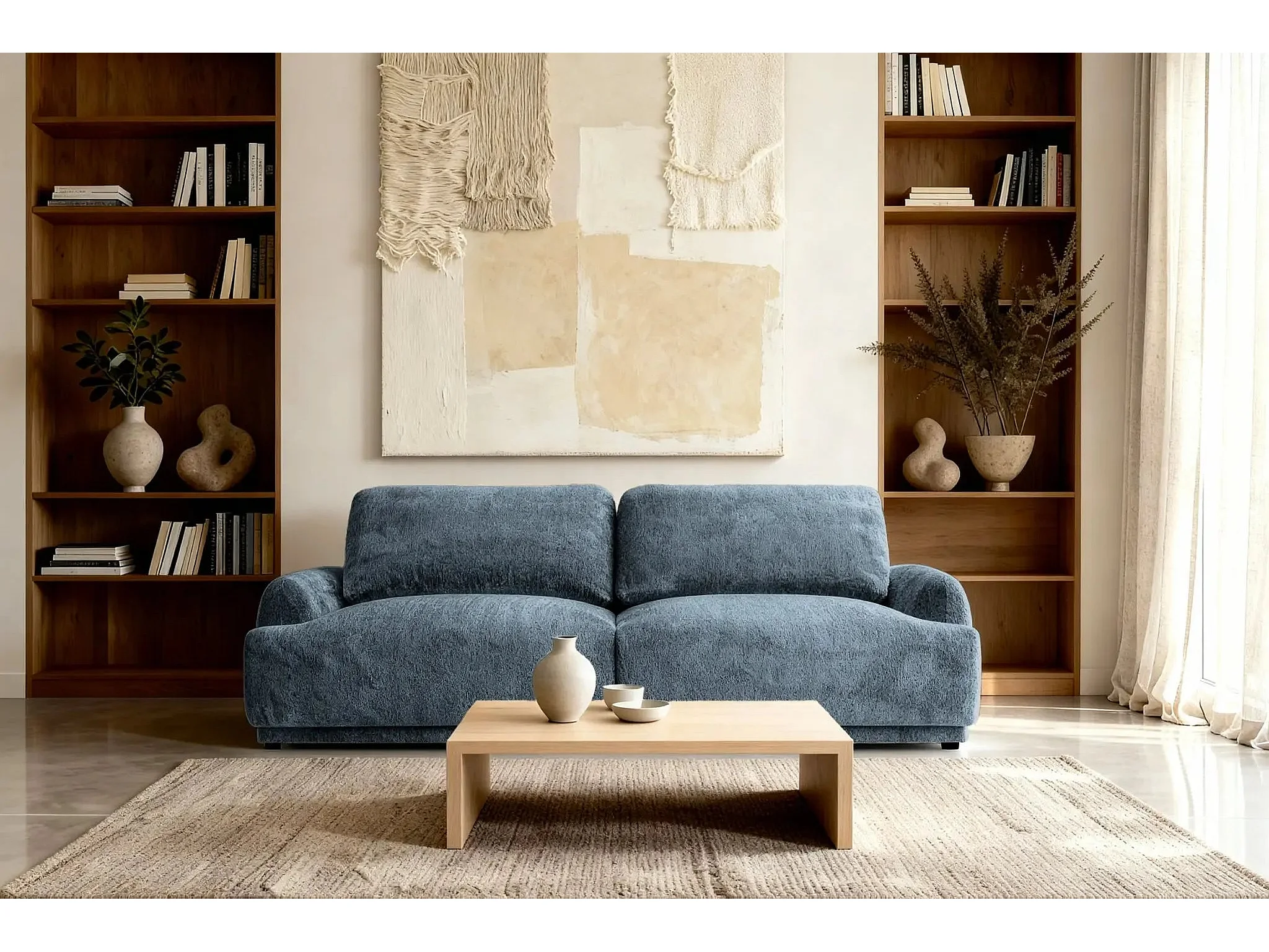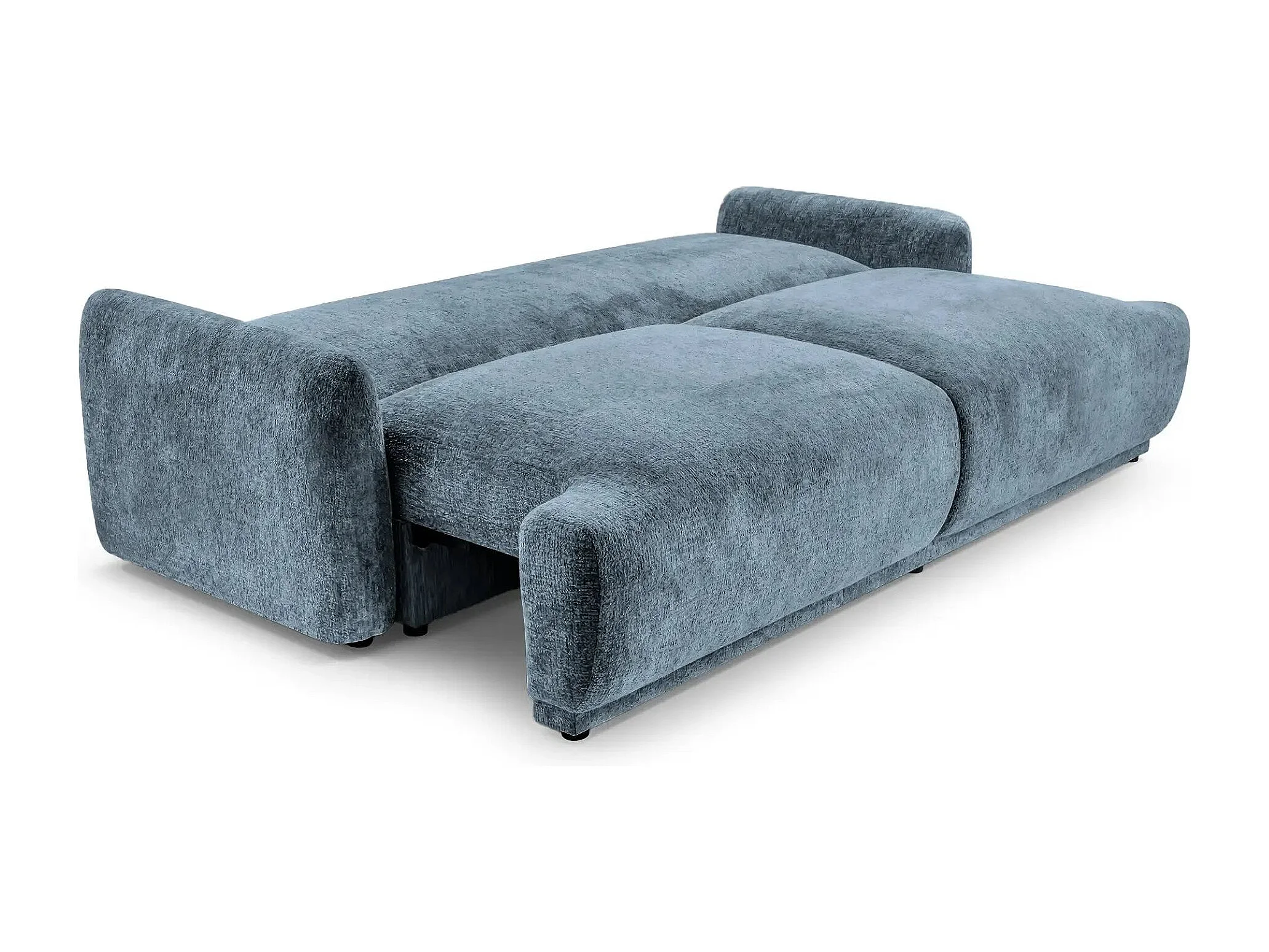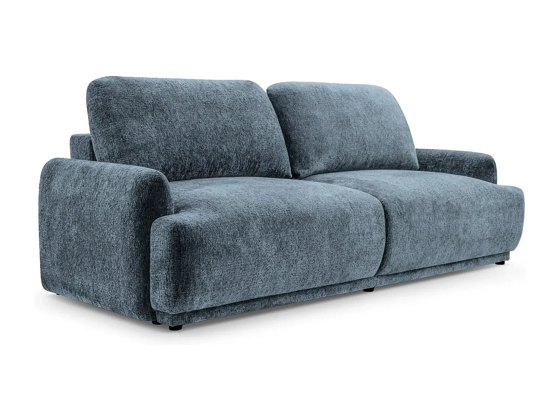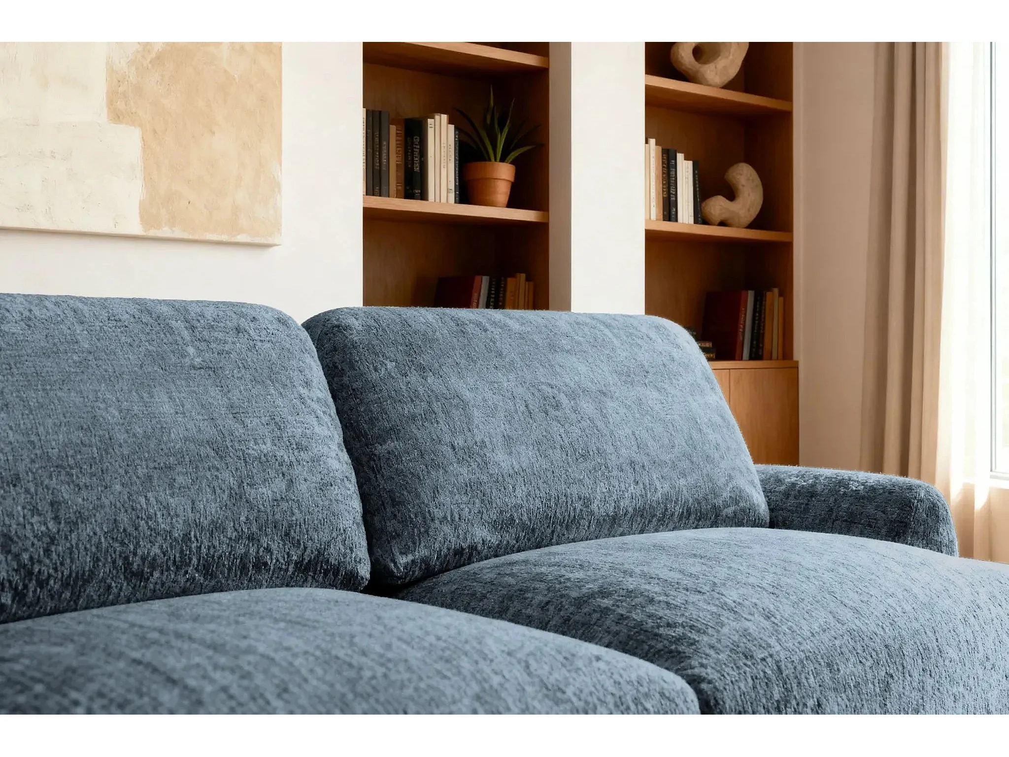 CLAUDIA - Canapé droit convertible tissu chenille 3 places - Bleu