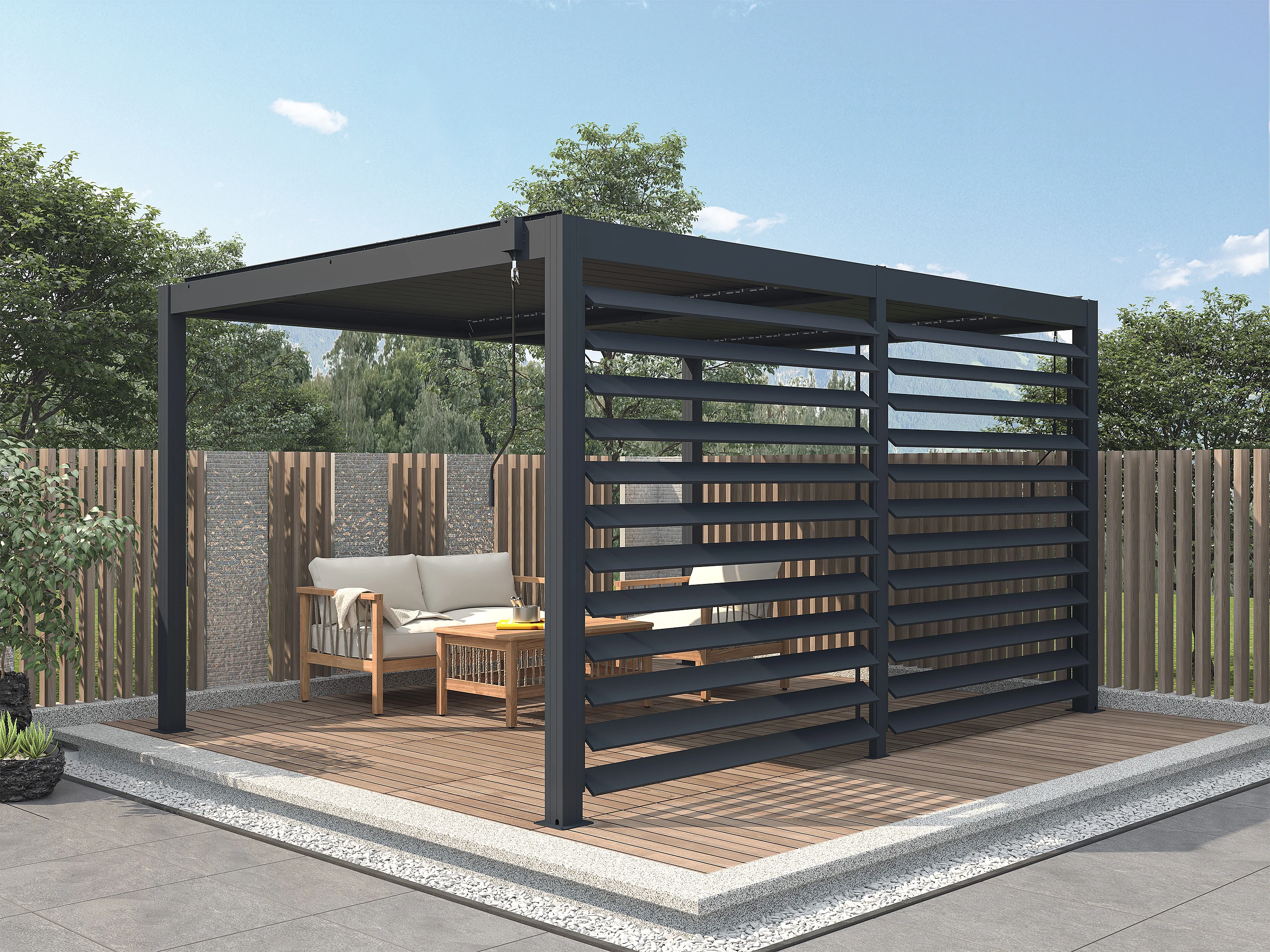 Claustra brise soleil orientable en aluminium pour pergola bioclimatique anthracite - L3,68 x H2,2 m - BOLSENA