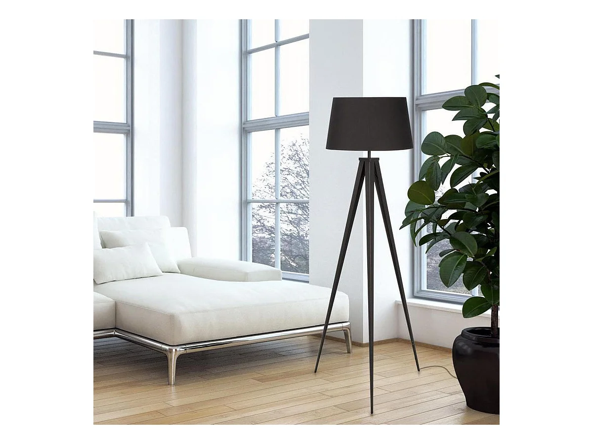 CLAYTON - Lampadaire Trépied en Métal et Abat-Jour Tissu Noir