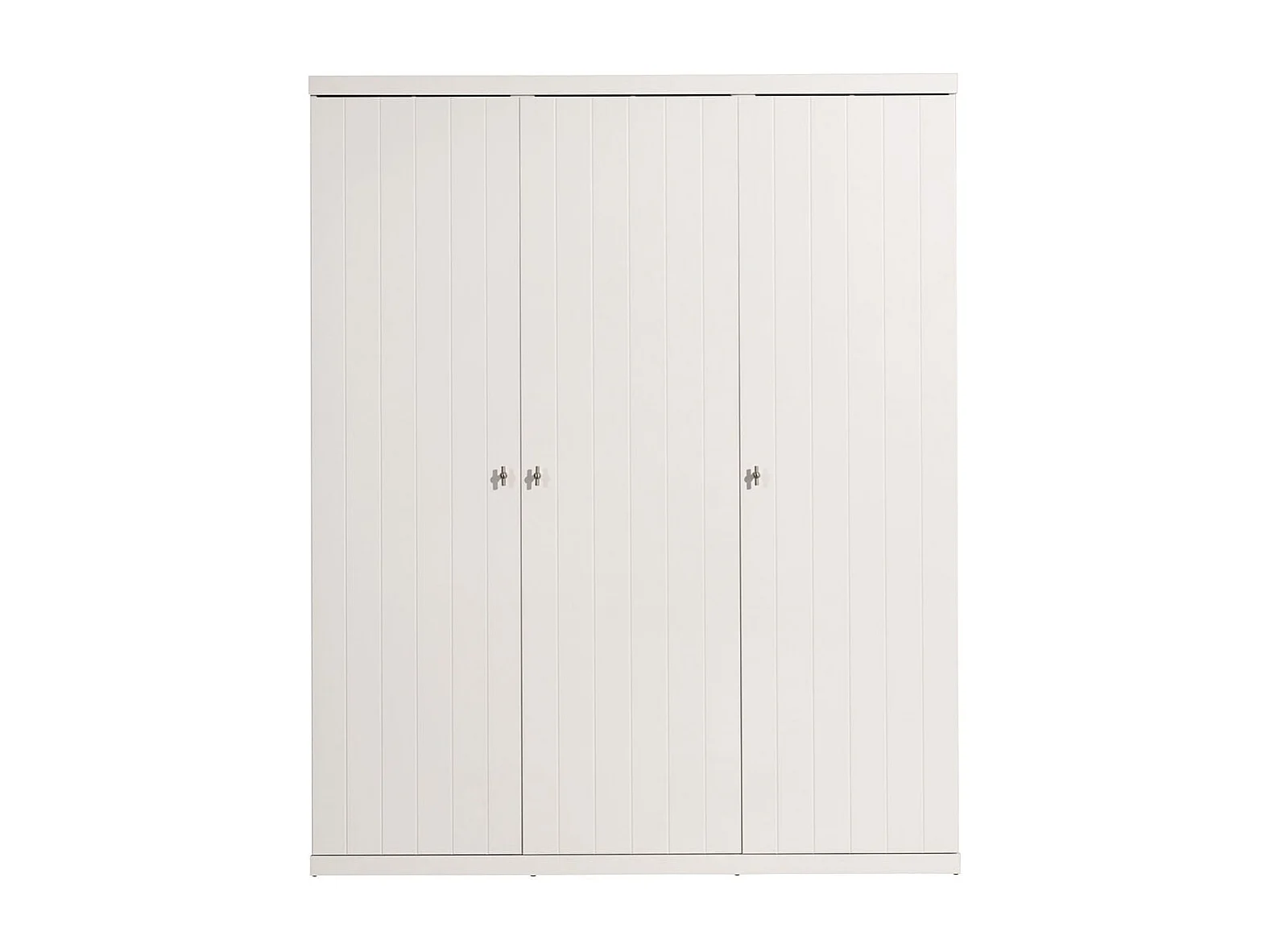 CLEO - Armoire 3 Portes Effet Lambris Blanc Laqué