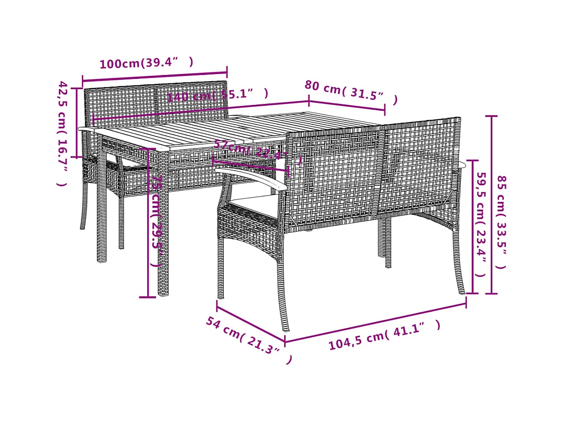 Clermont-Ferrand Ensemble à manger de jardin avec coussins 3 pcs Noir