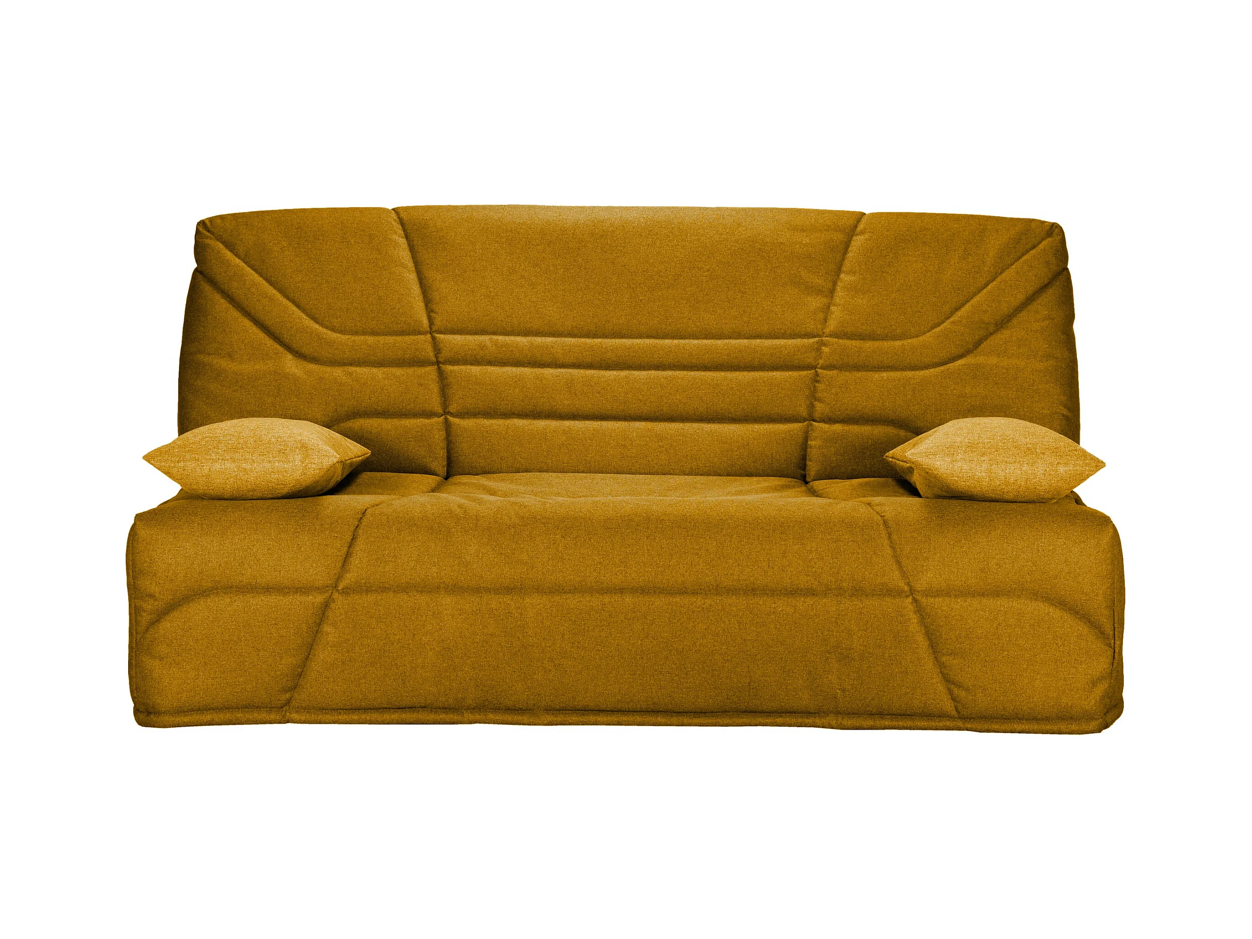Banquette clic clac tissu 130x190 matelas Starbed 13cm avec coffre de rangement Raka-Couleur Jaune ambre