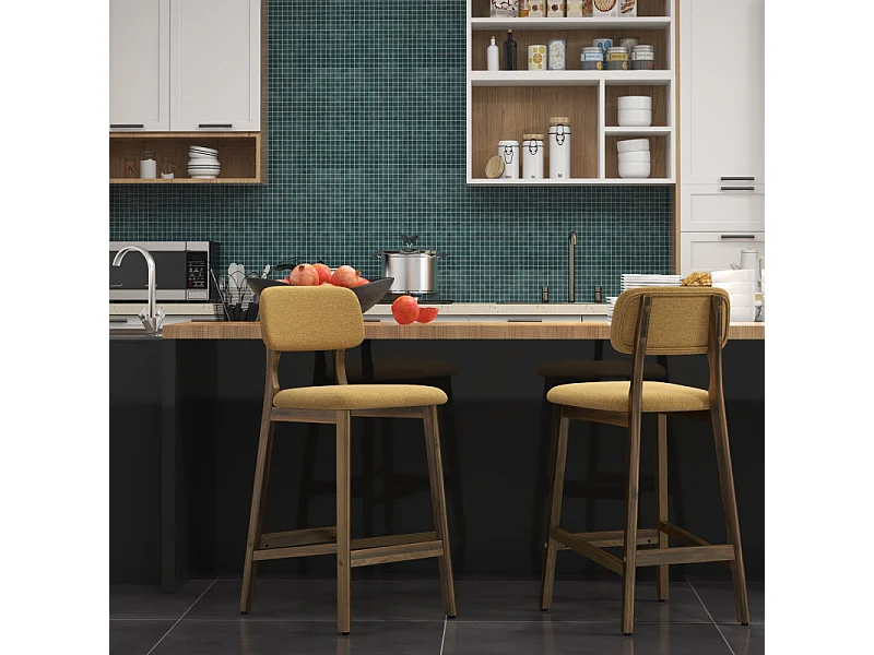 CLIFF-Tabouret de bar en bois patiné noyer et Tissu Trendy Safran (x2)