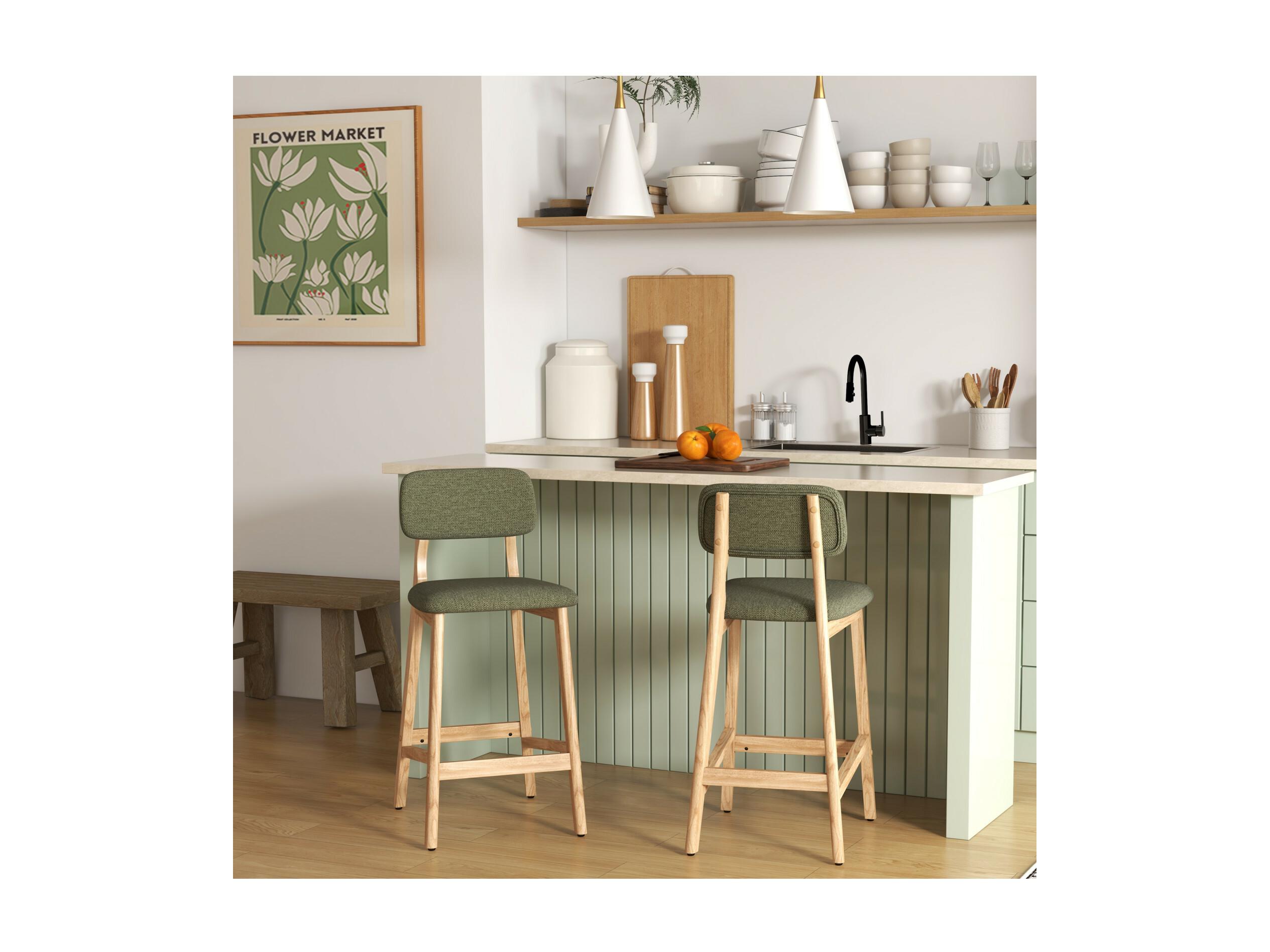 CLIFF-Tabouret de bar en bois naturel et Tissu Trendy Sauge (x2)