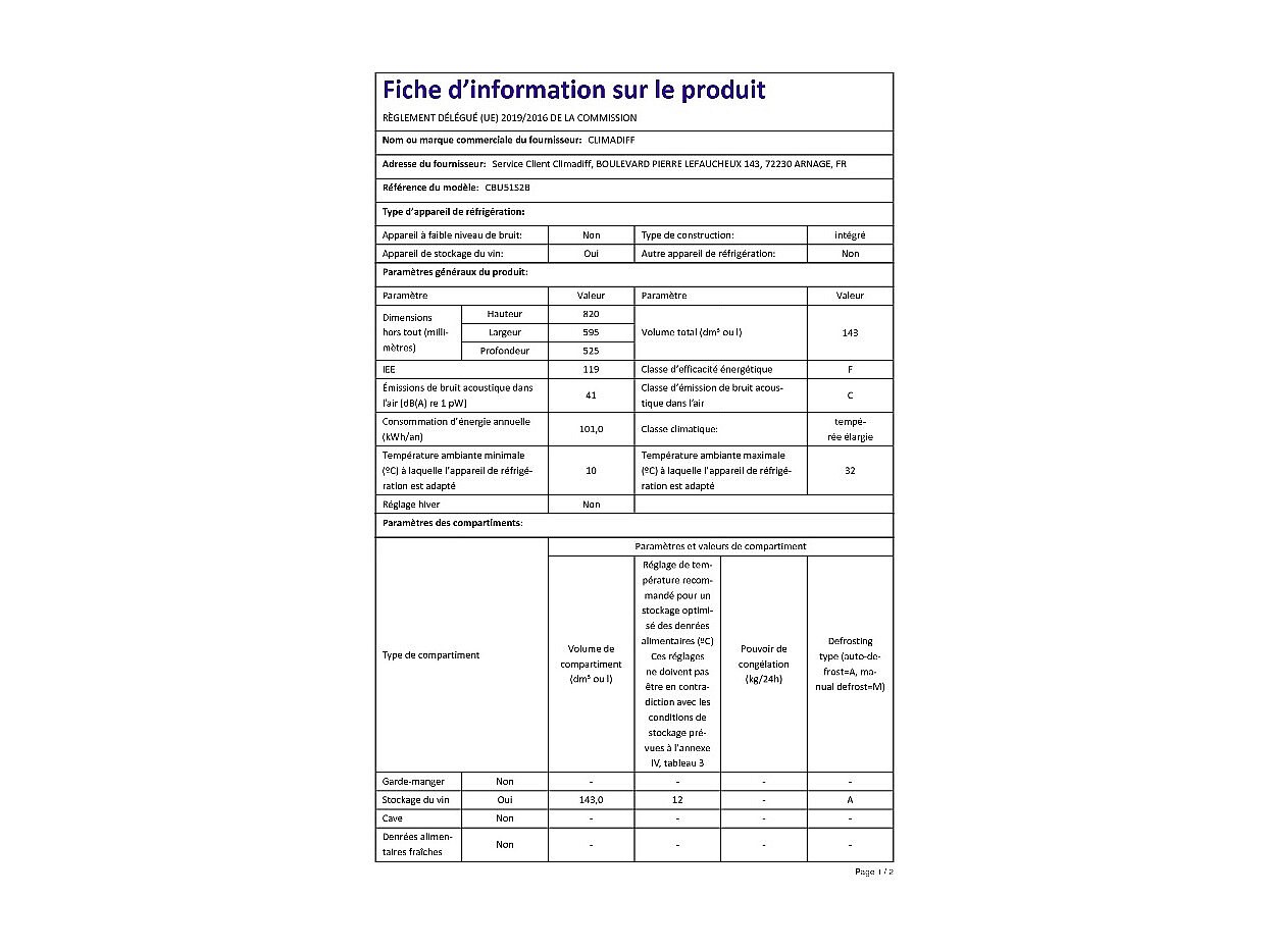 Climadiff Cave à vin de service encastrable 51 bouteilles - CBU51S2B