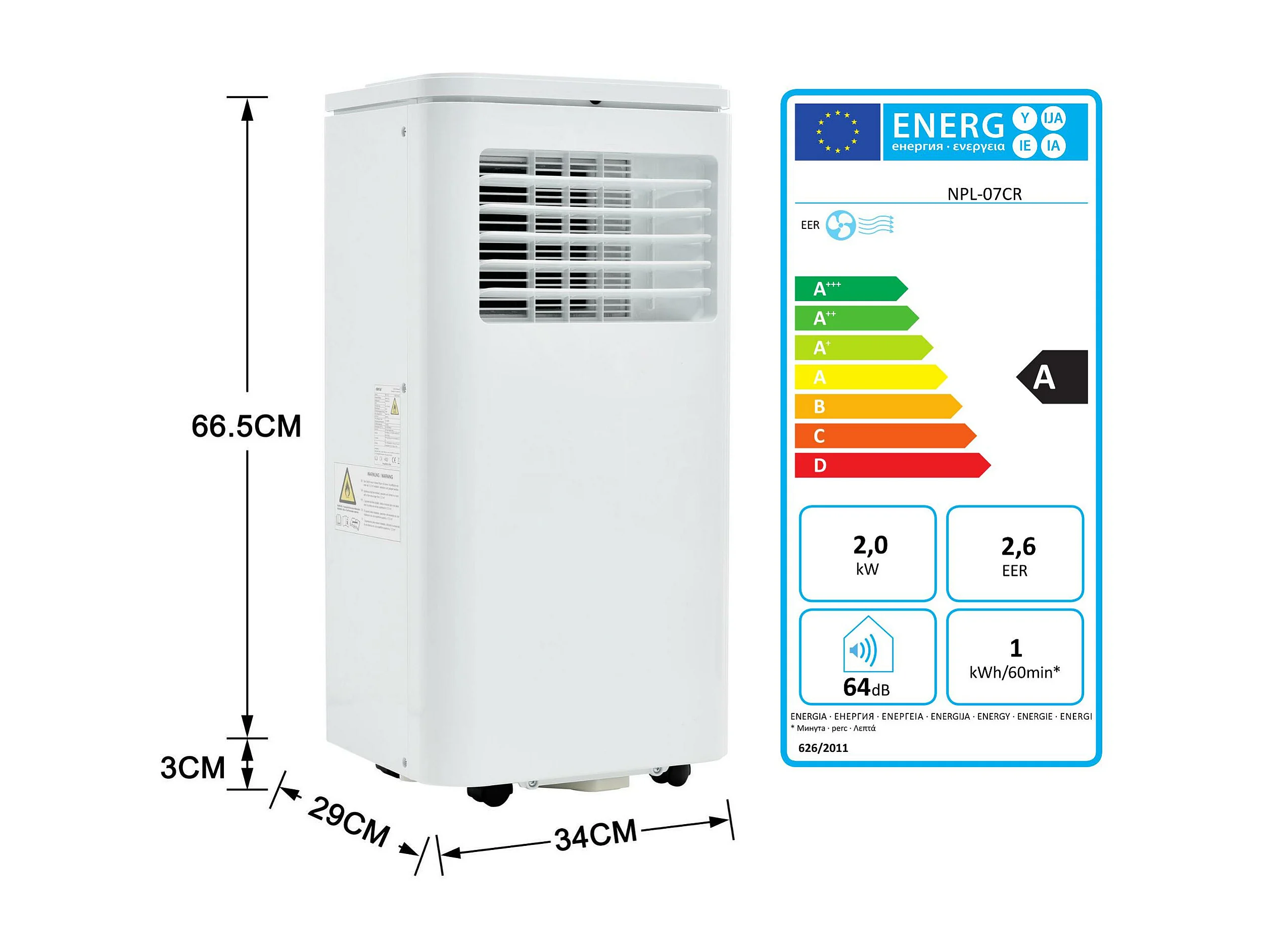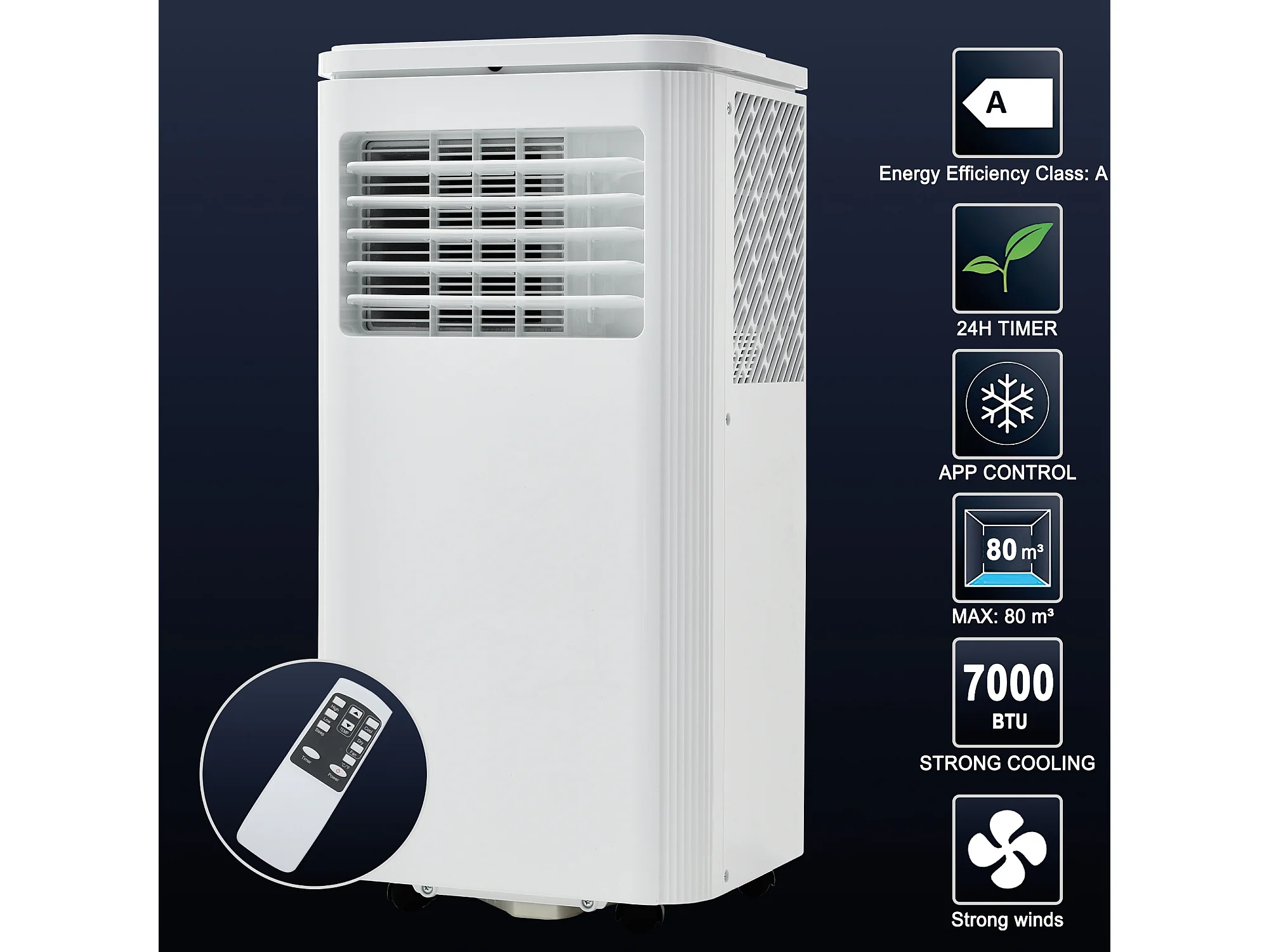 Climatiseur mobile 3-in-1,7000 BTU, 2KW, 3 modes avec APP, affichage LED, télécommande, minuterie 24 heures