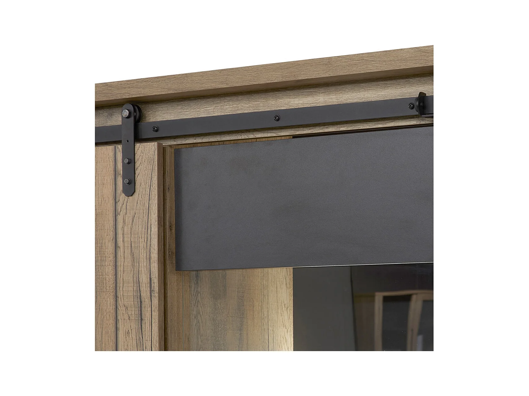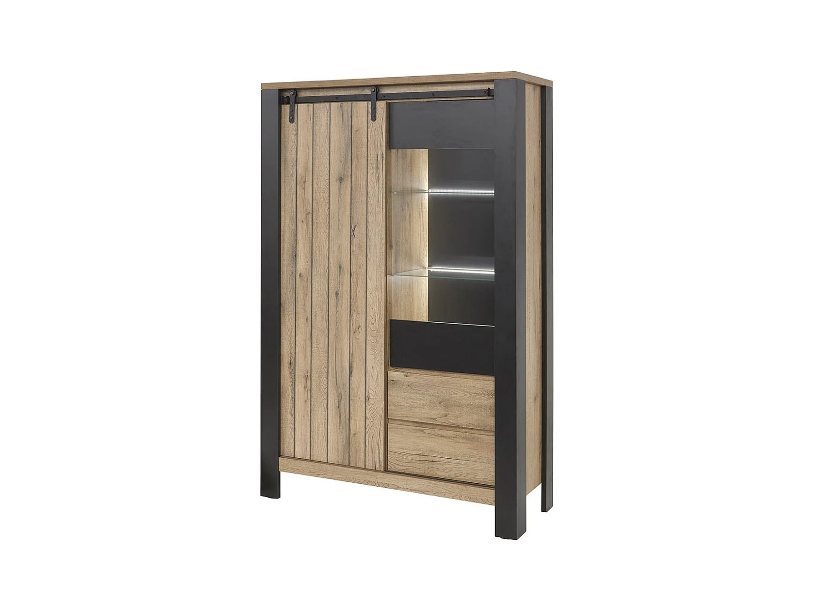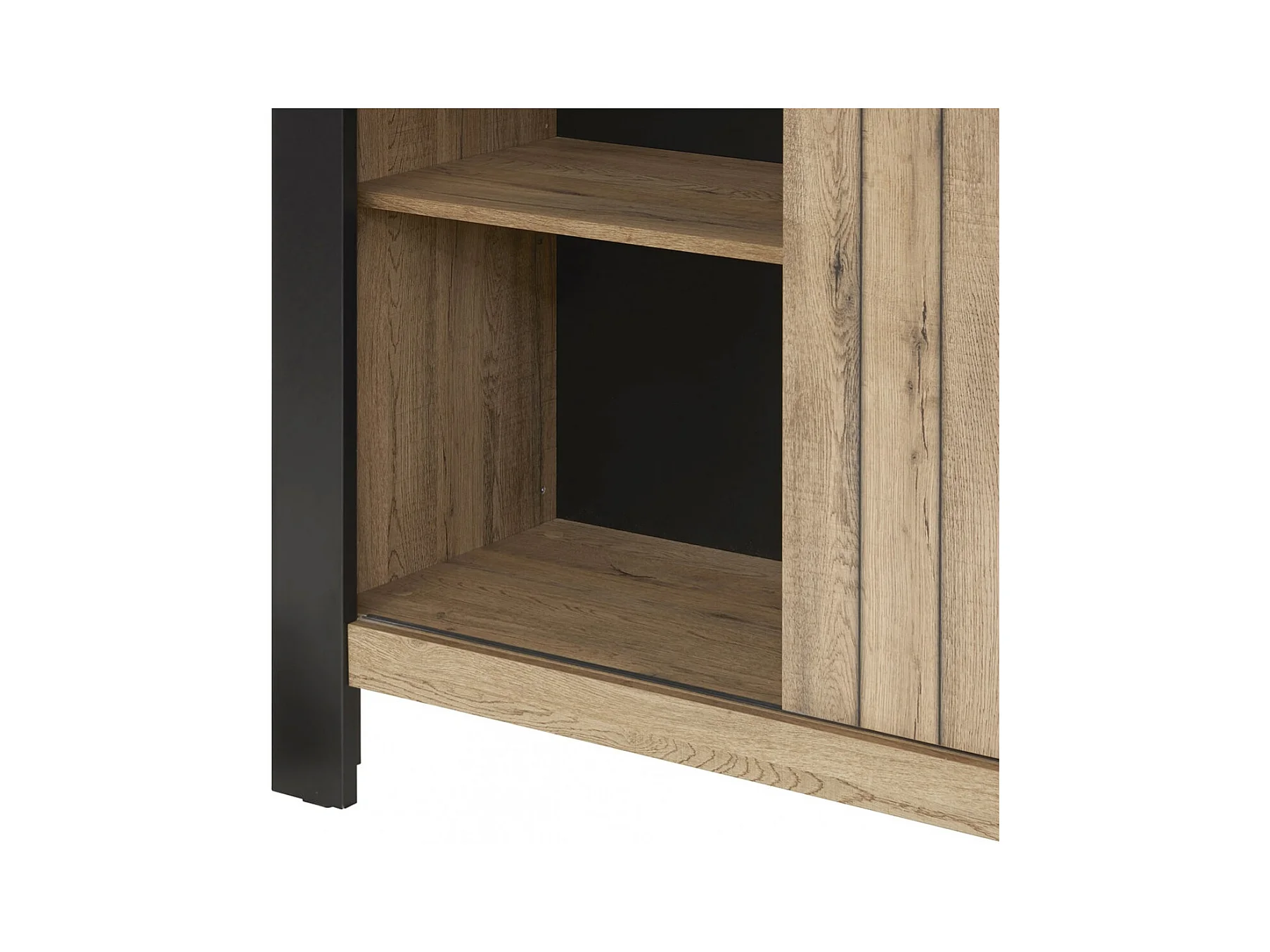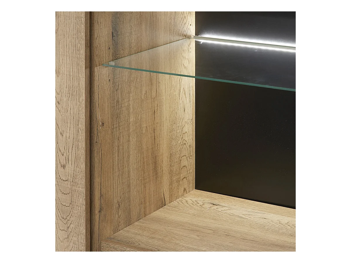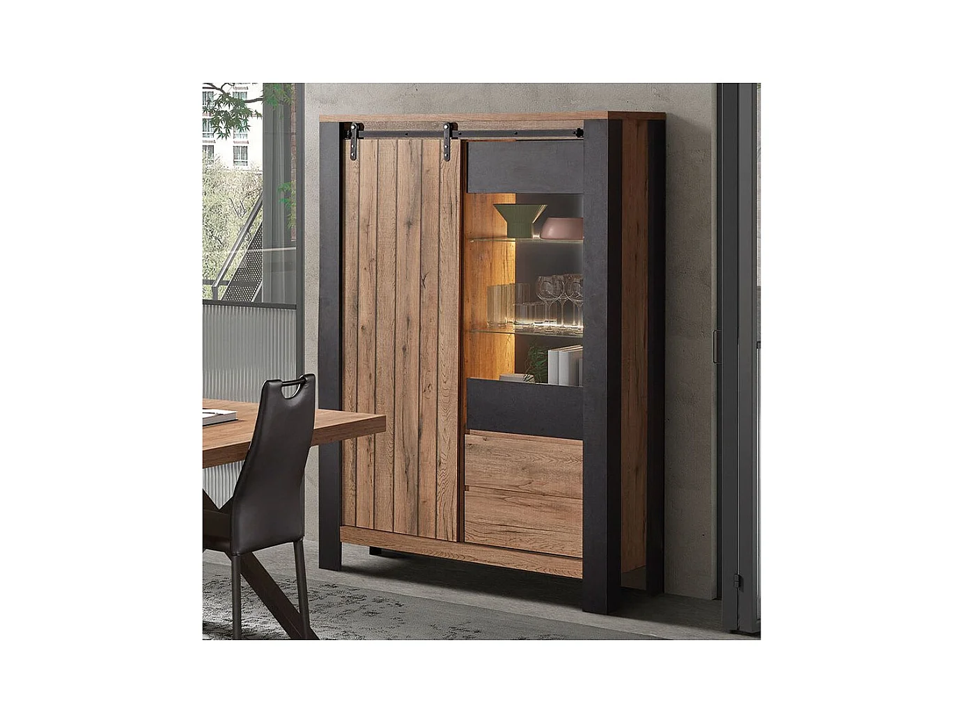 CLODIUS - Argentier 2 Portes 2 Tiroirs Métal et Aspect Bois avec Leds