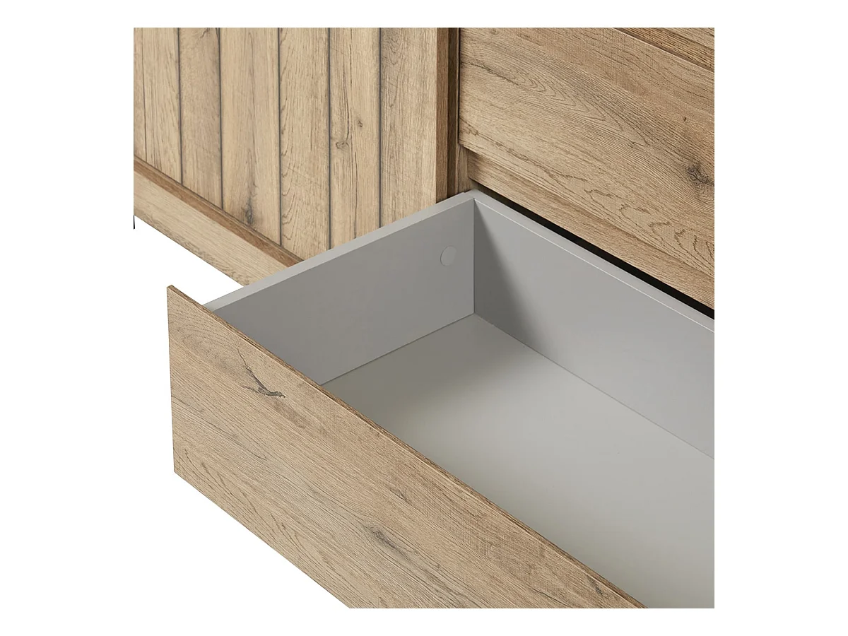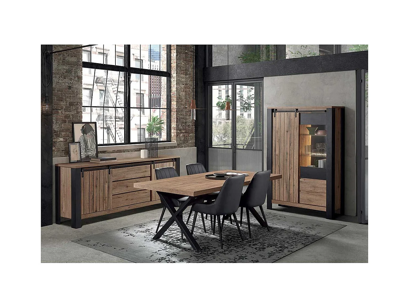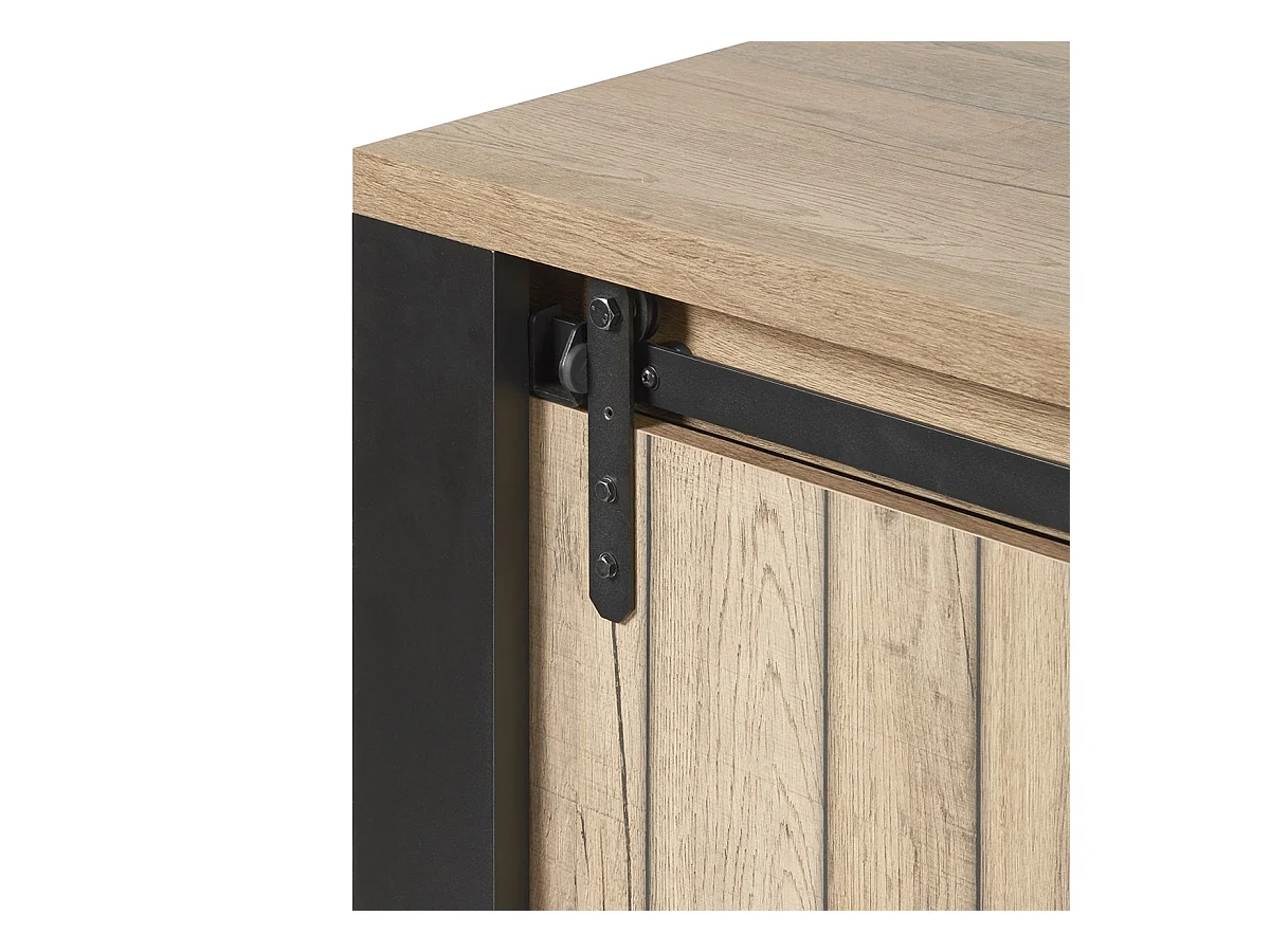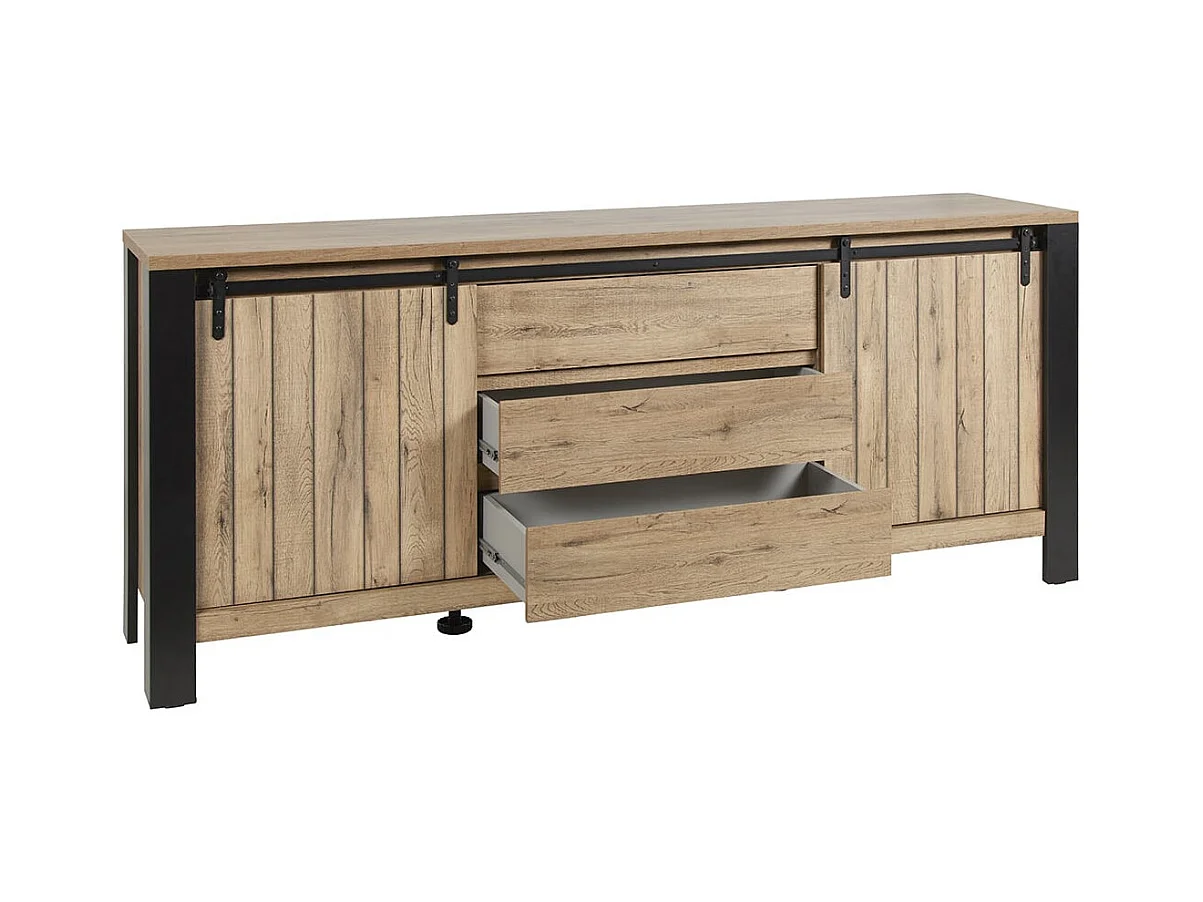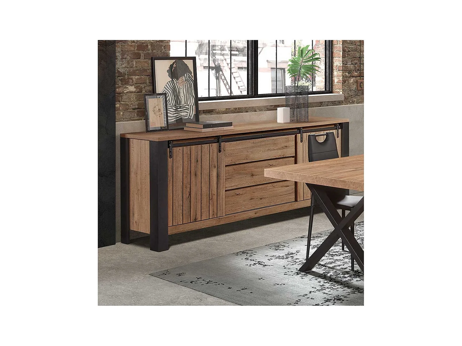 CLODIUS - Buffet 2 Portes Coulissantes 3 Tiroirs Métal et Aspect Bois